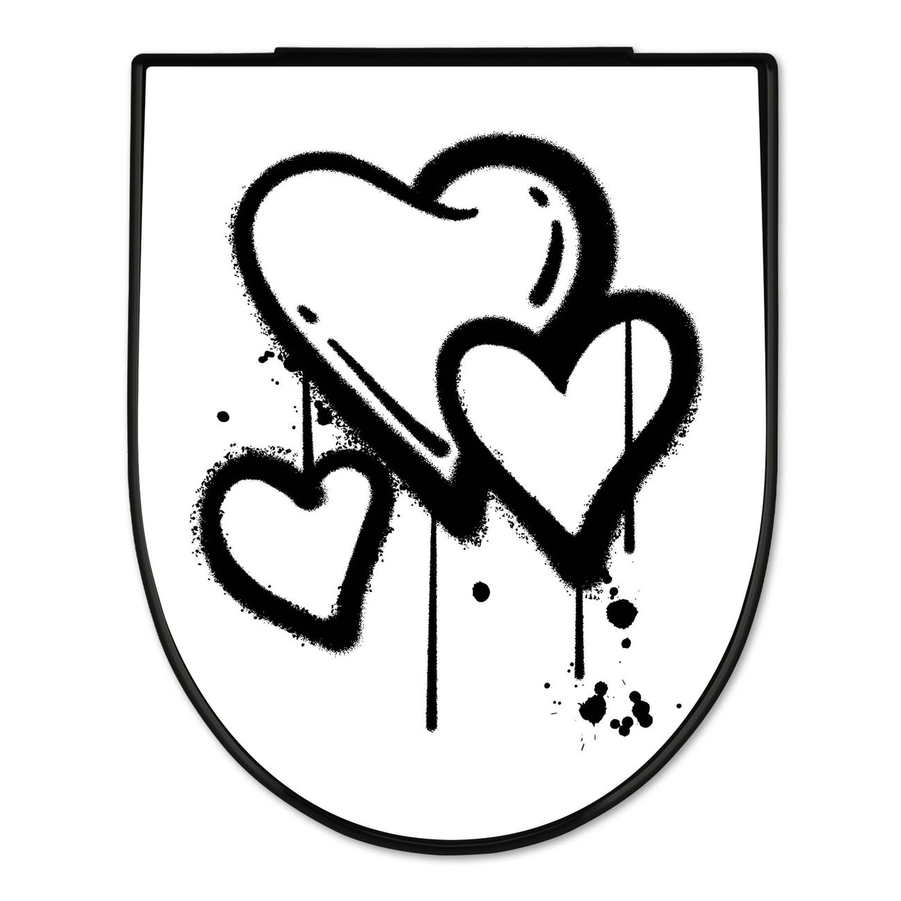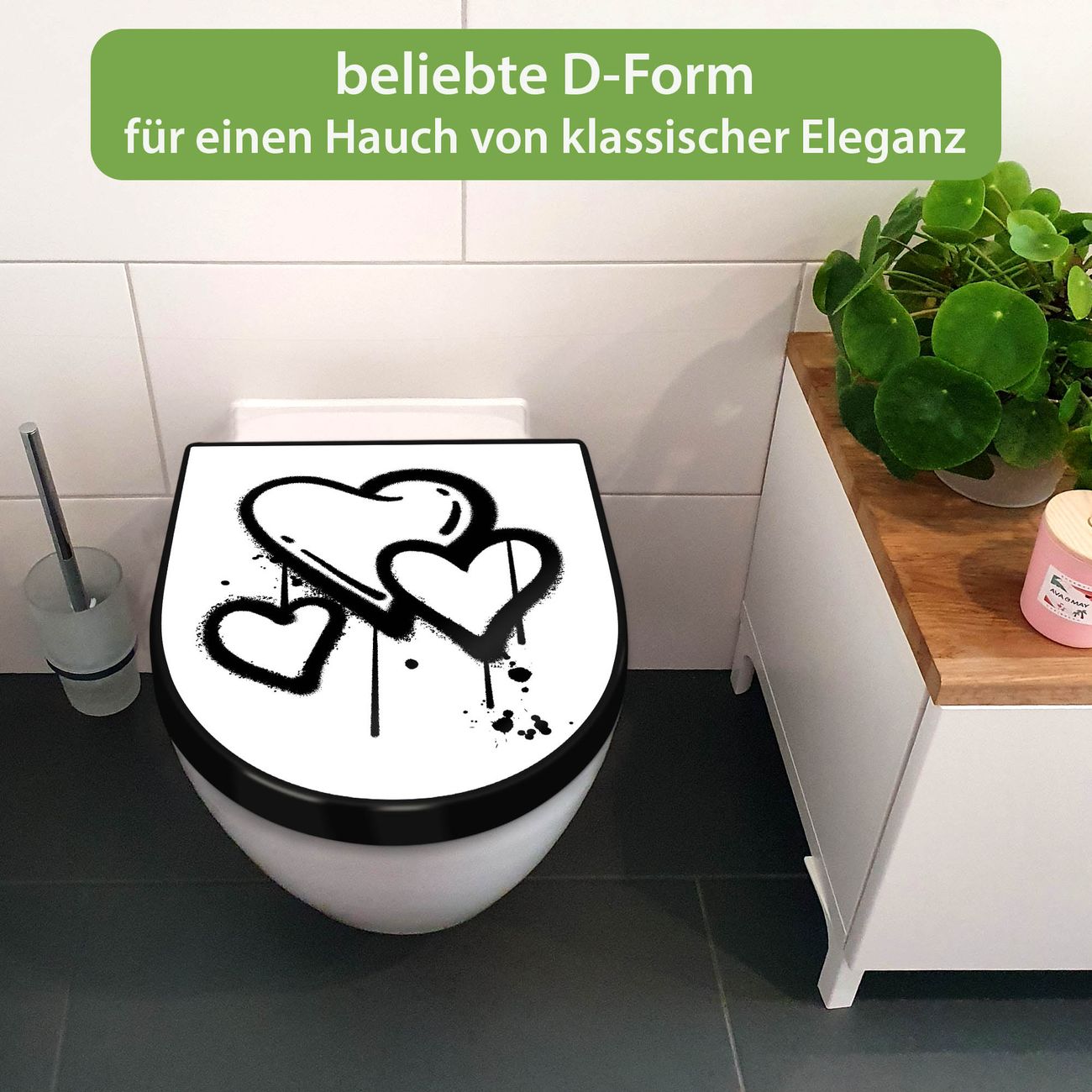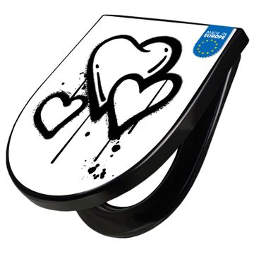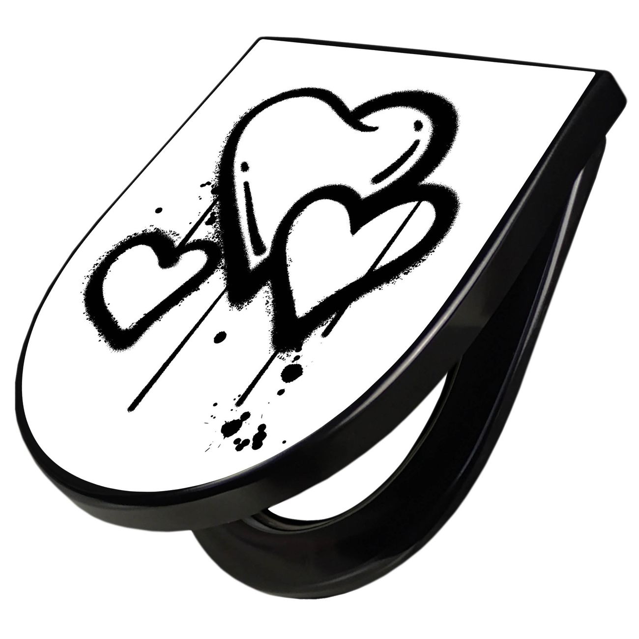 WC Sitz D-Form Schwarz mit Absenkautomatik Motiv Herzen Graffiti