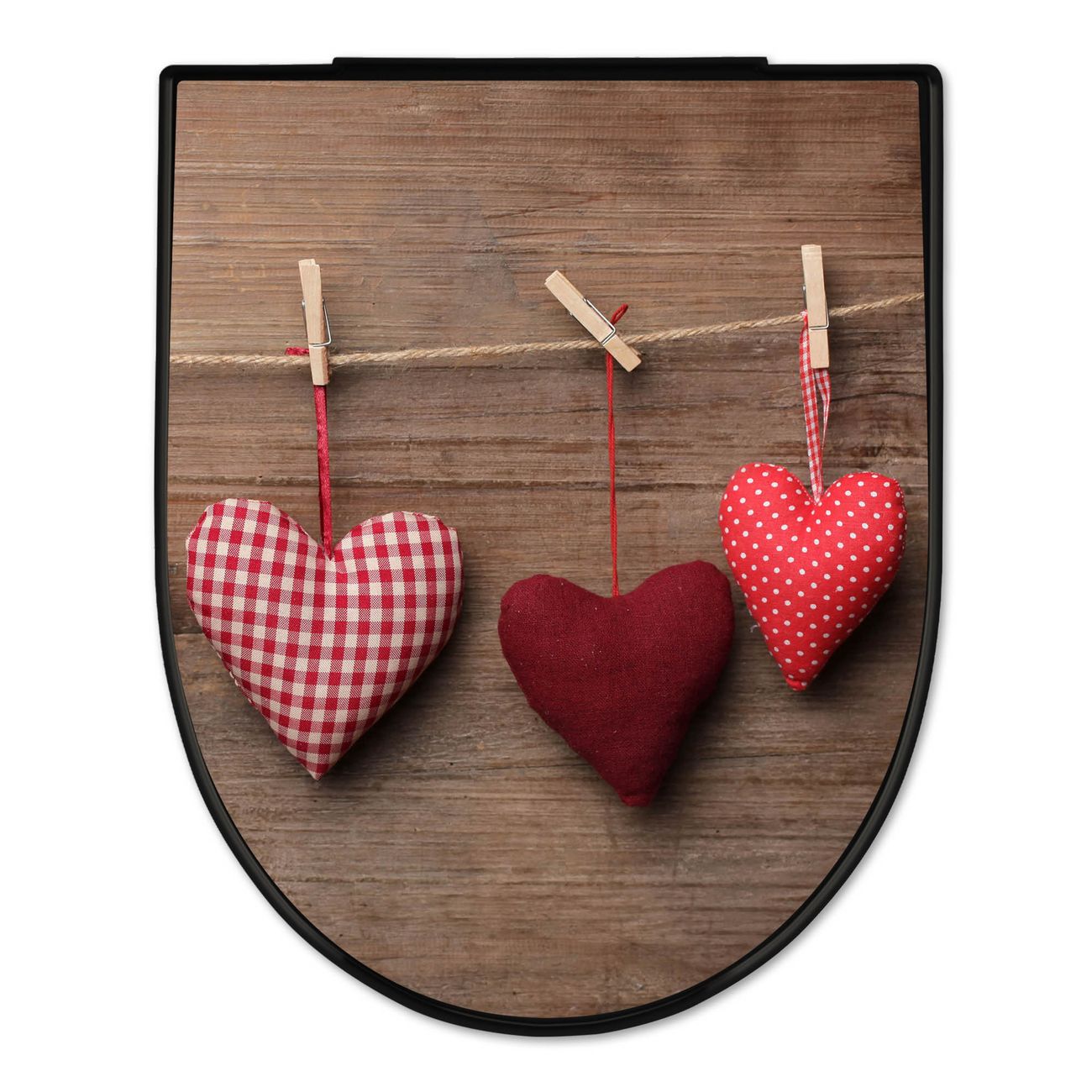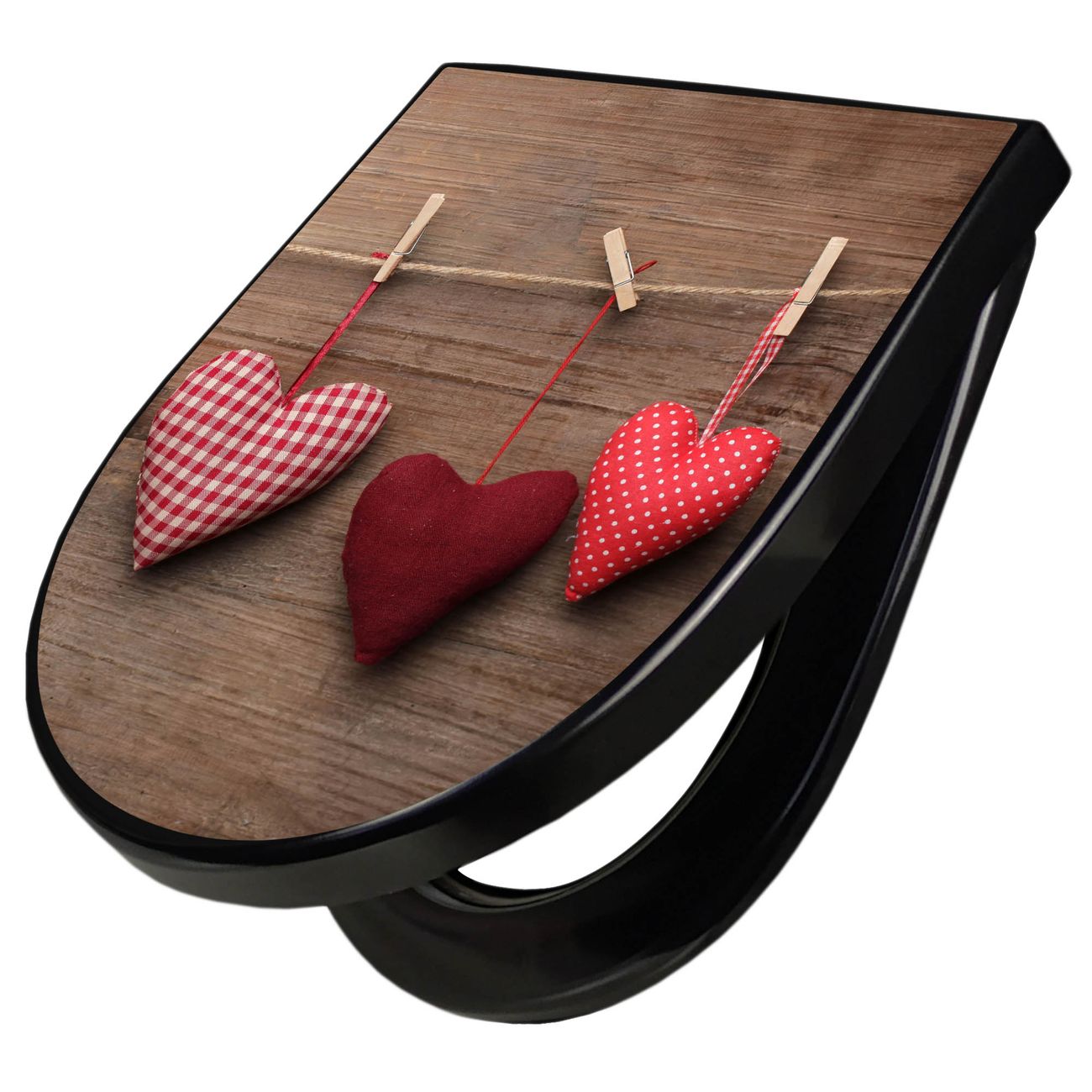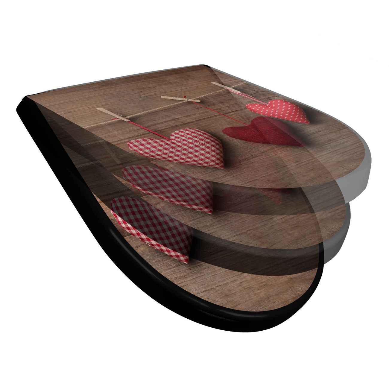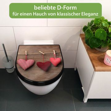 WC Sitz D-Form Schwarz mit Absenkautomatik Motiv Herzen