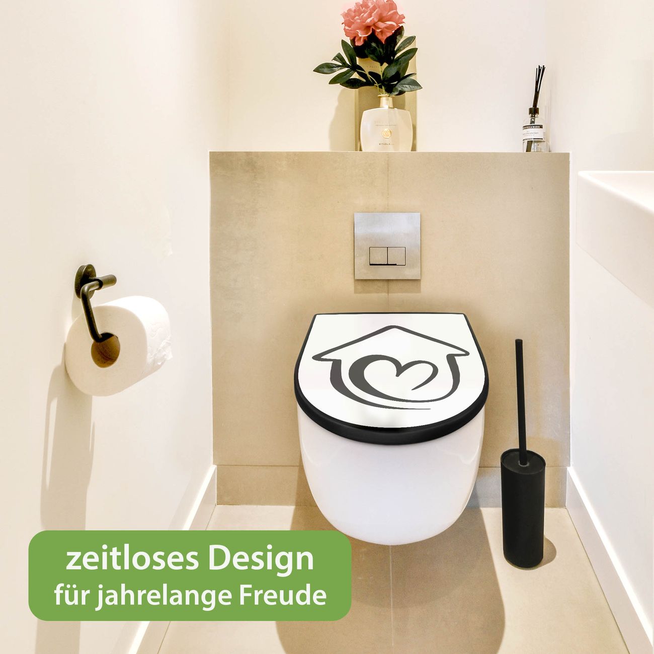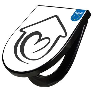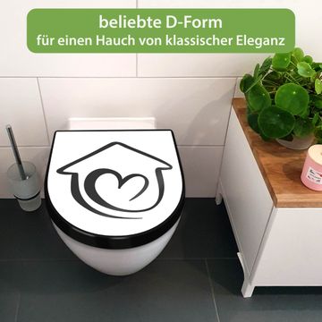 WC Sitz D-Form Schwarz mit Absenkautomatik Motiv Herzhaus