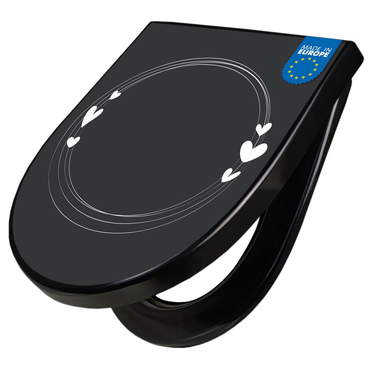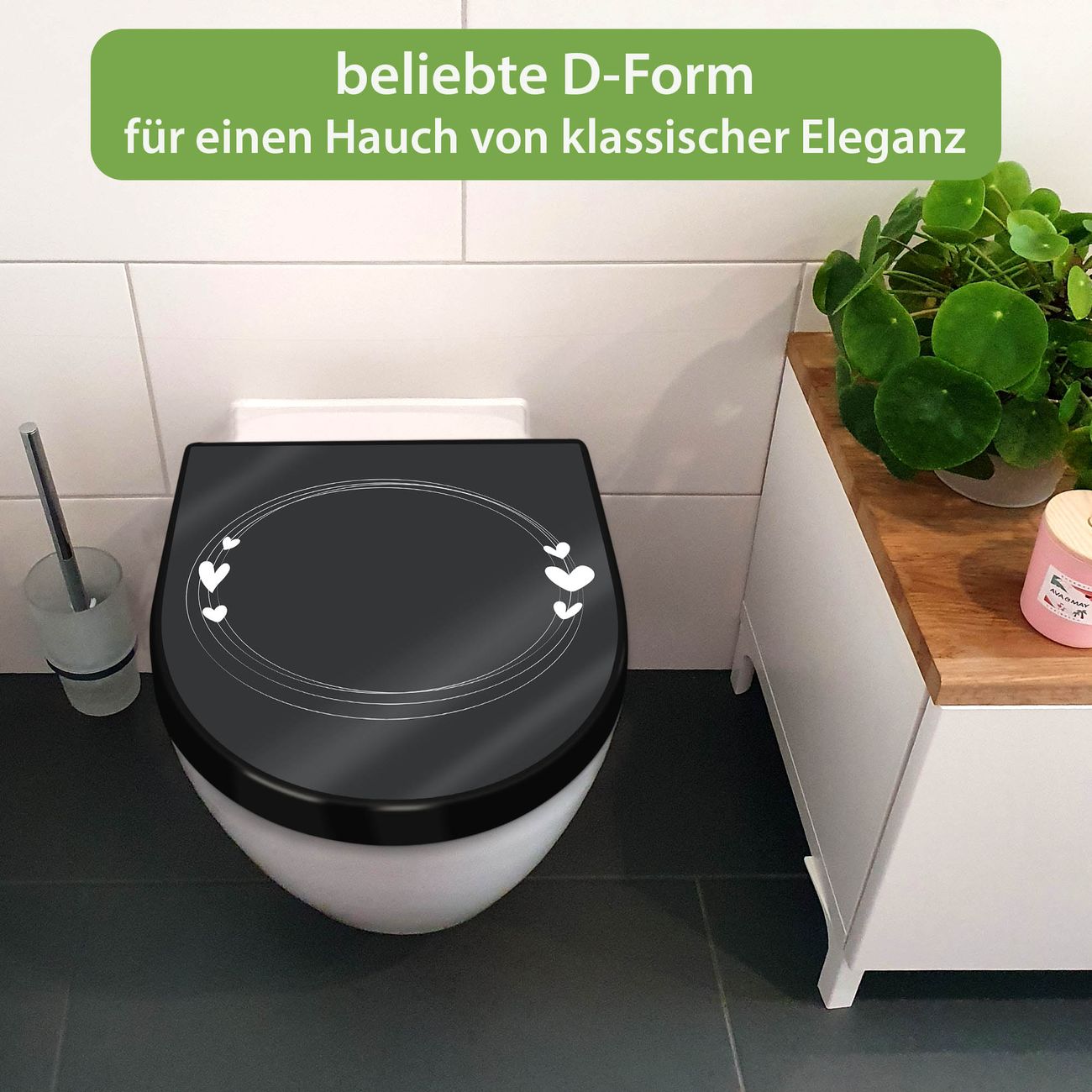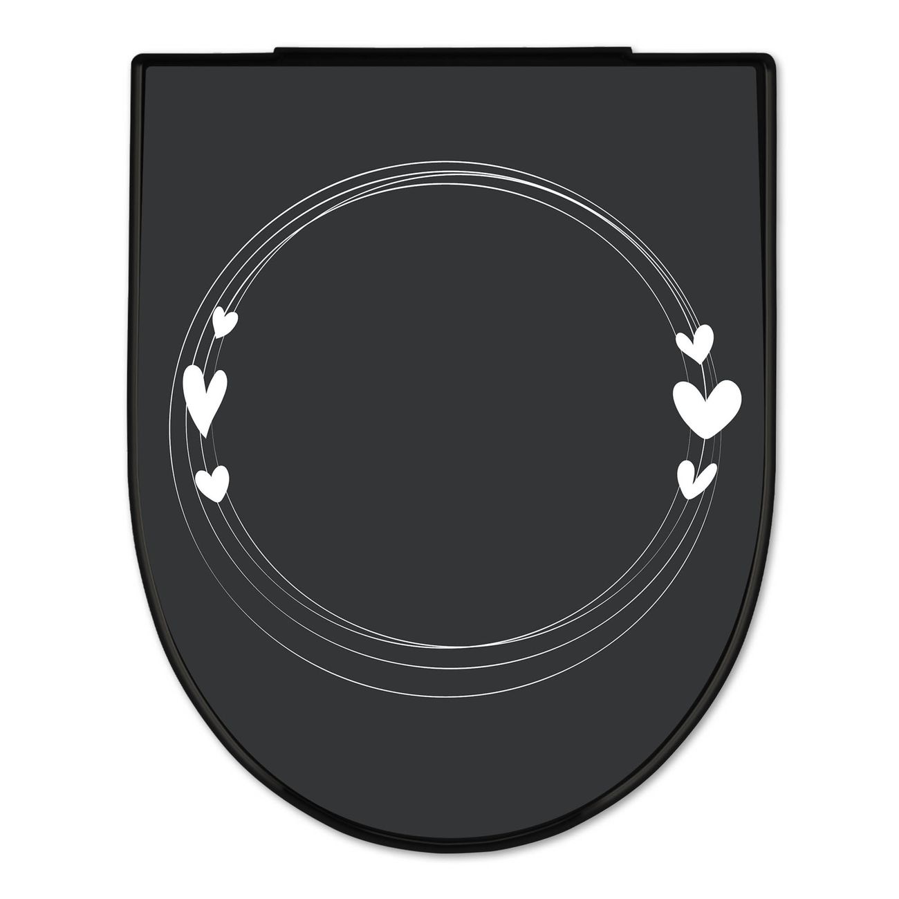 WC Sitz D-Form Schwarz mit Absenkautomatik Motiv Herzrahmen