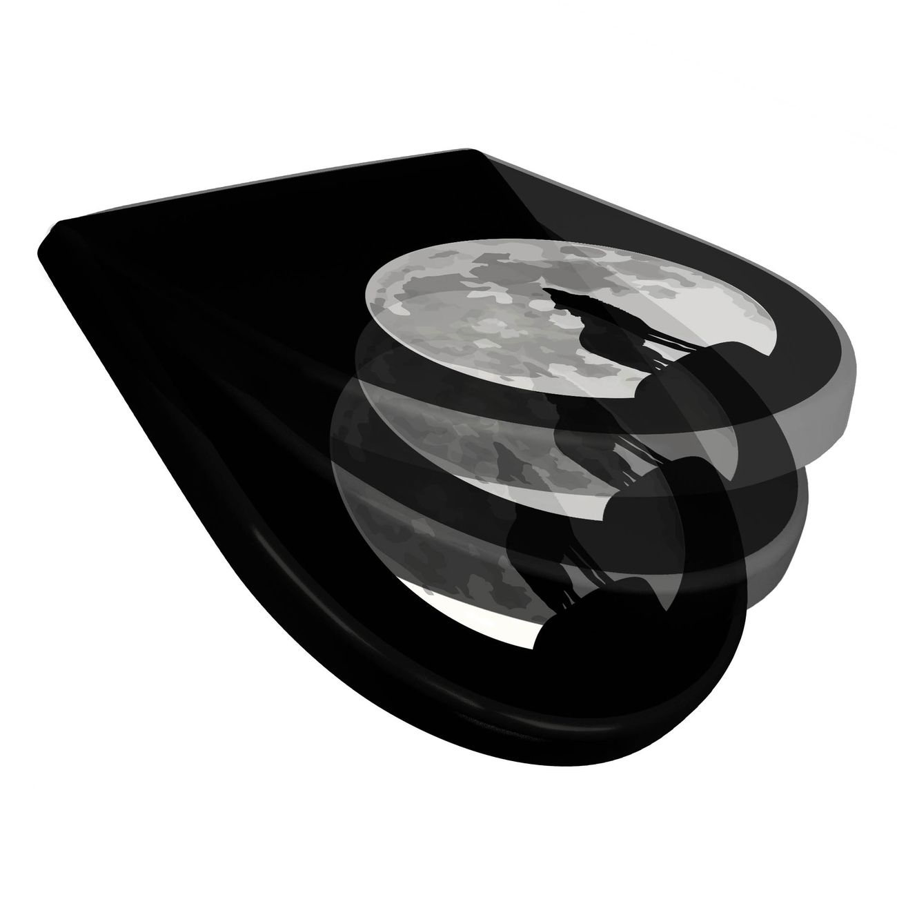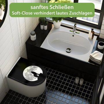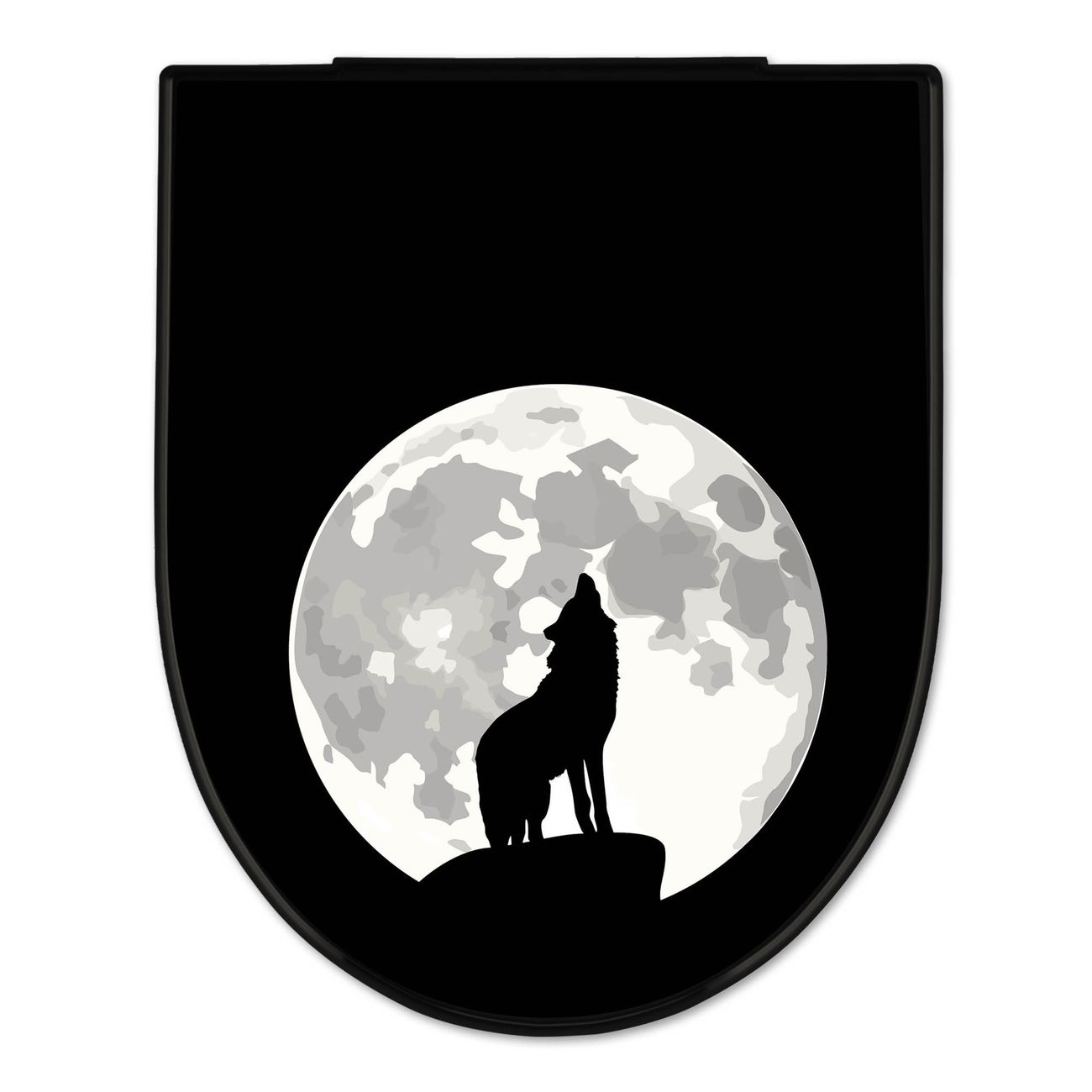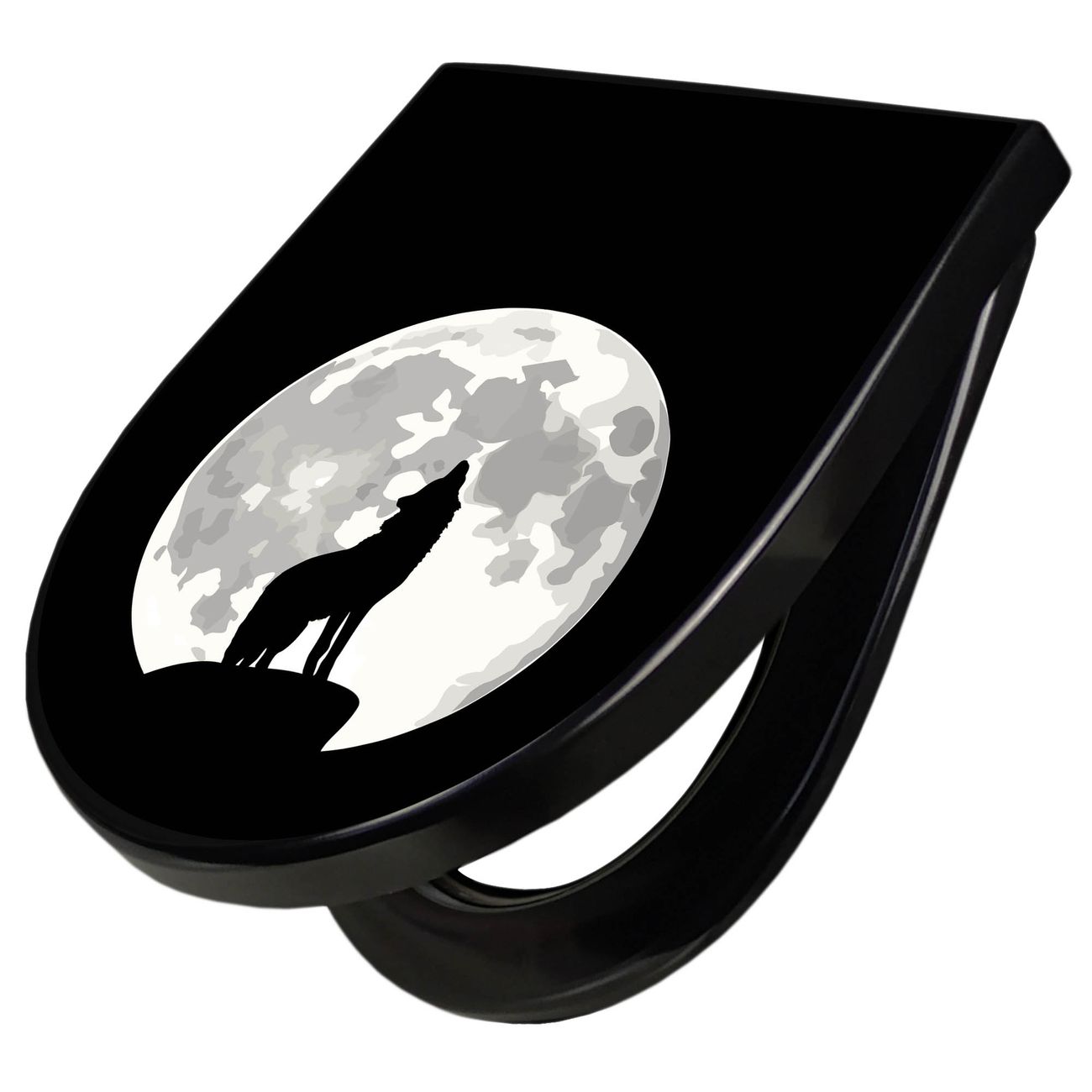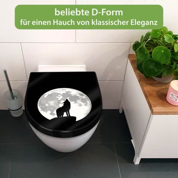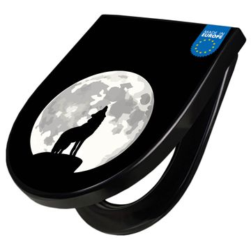WC Sitz D-Form Schwarz mit Absenkautomatik Motiv Heulender Wolf SW