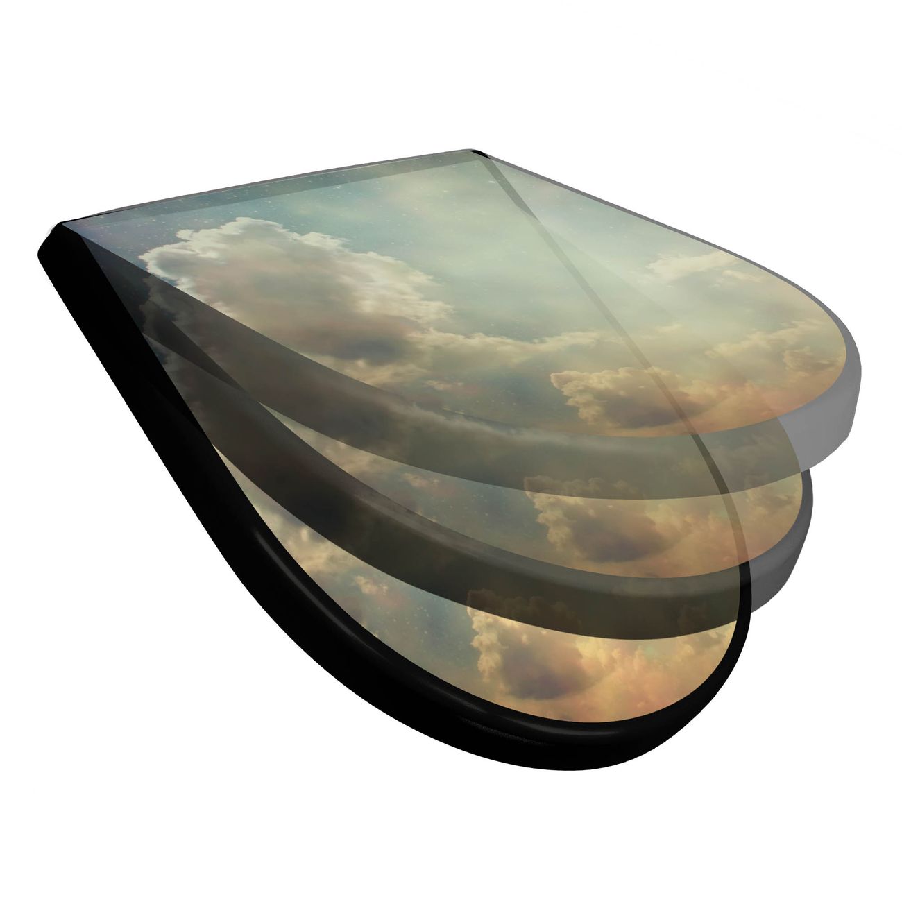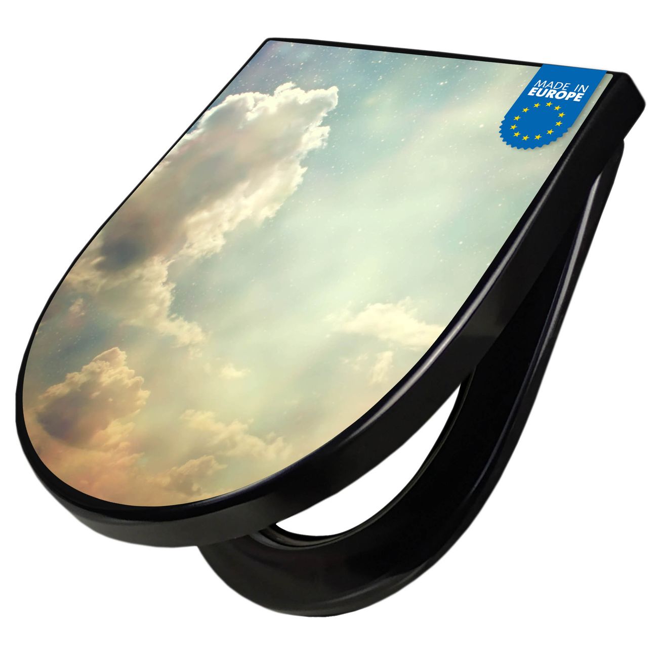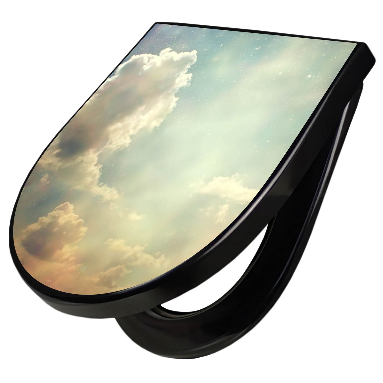 WC Sitz D-Form Schwarz mit Absenkautomatik Motiv Himmel Vintage