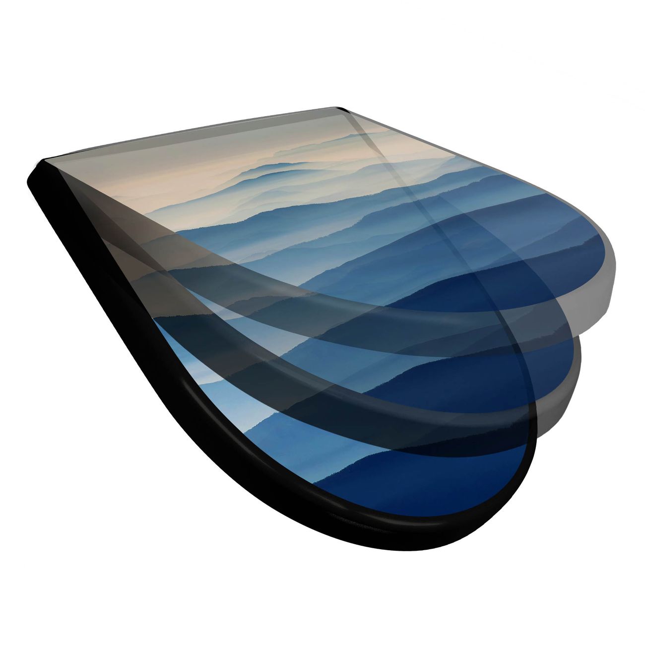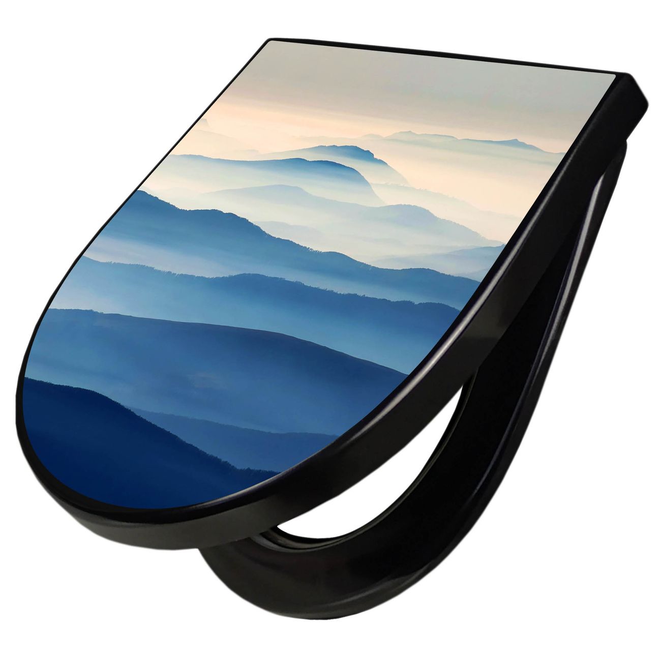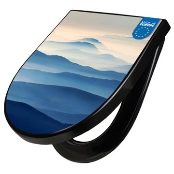 WC Sitz D-Form Schwarz mit Absenkautomatik Motiv Hinter den Bergen