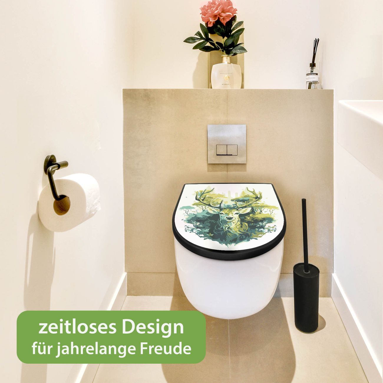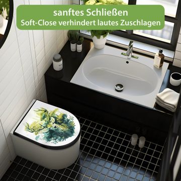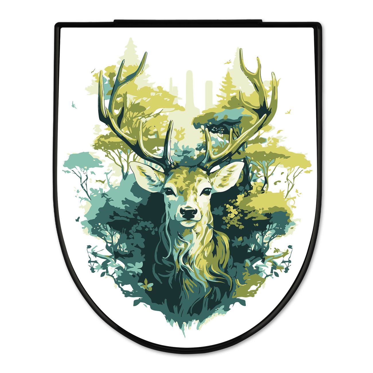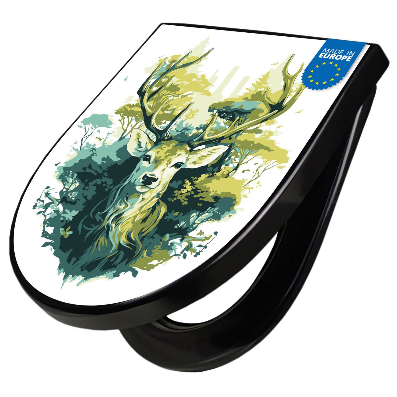 WC Sitz D-Form Schwarz mit Absenkautomatik Motiv Hirsch Wald Aquarell