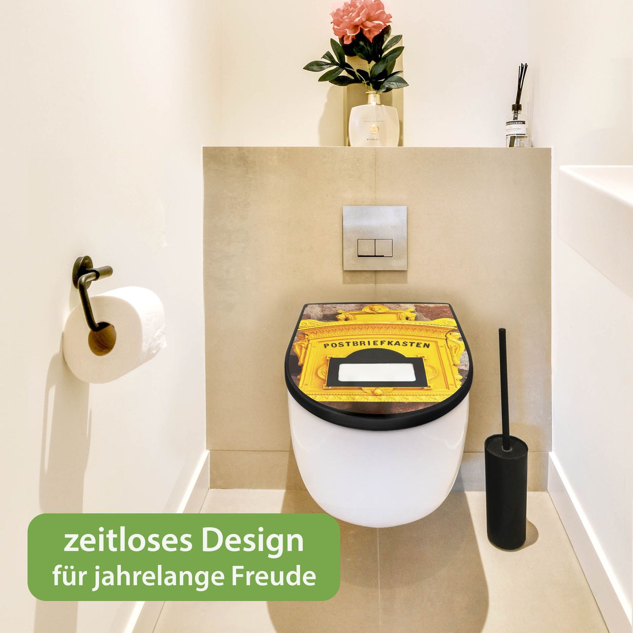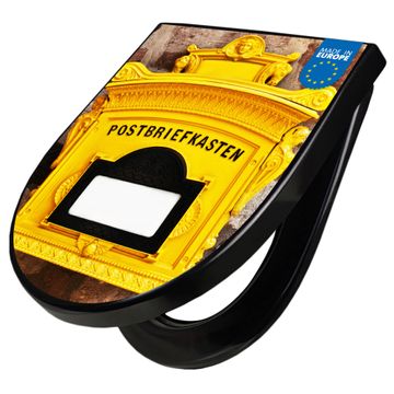 WC Sitz D-Form Schwarz mit Absenkautomatik Motiv Historischer Postkasten