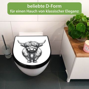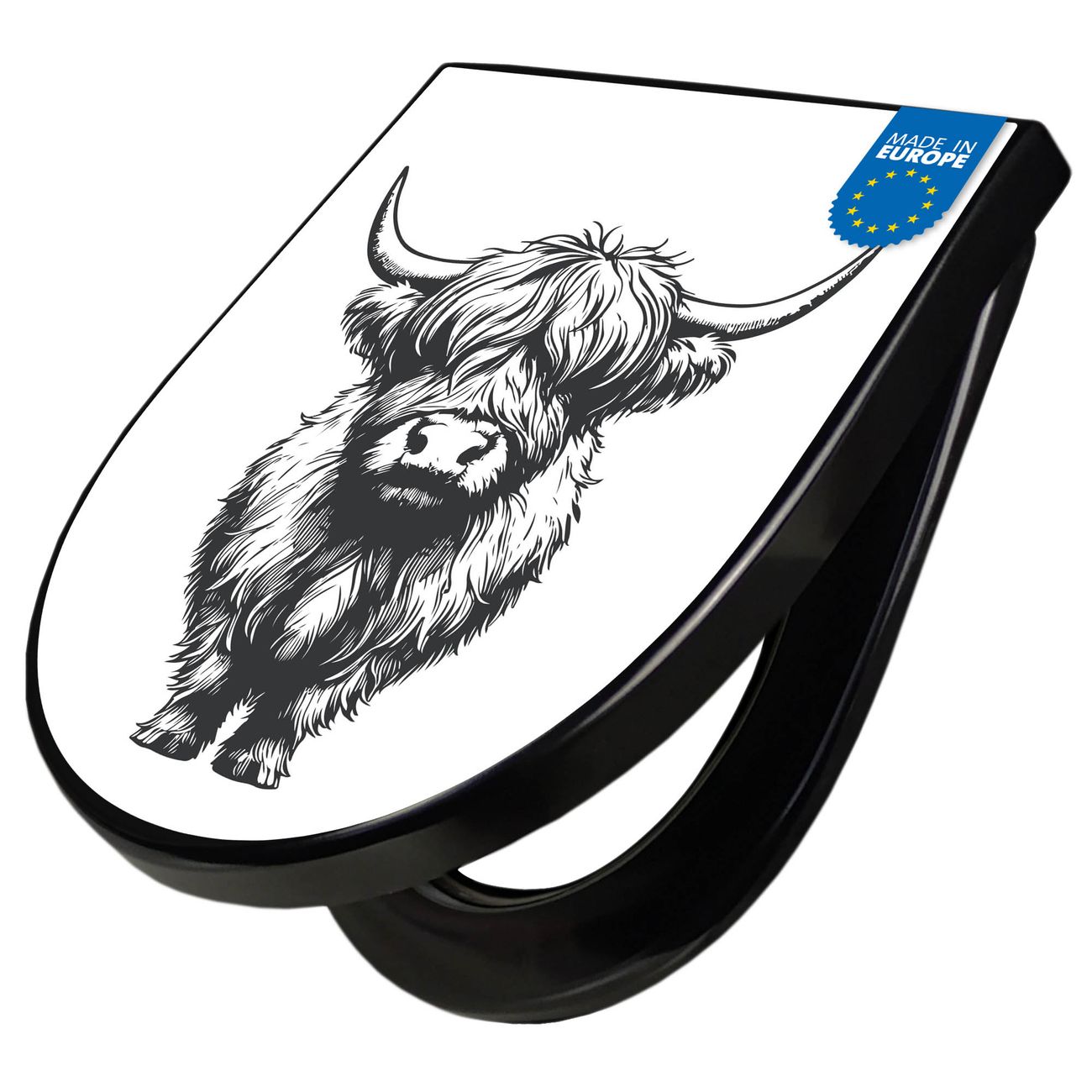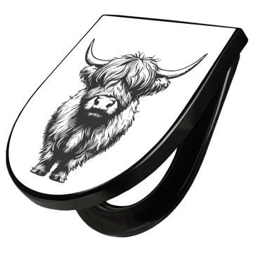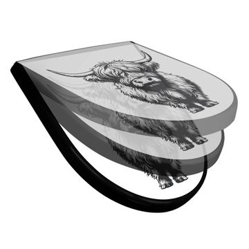 WC Sitz D-Form Schwarz mit Absenkautomatik Motiv Hochlandrind