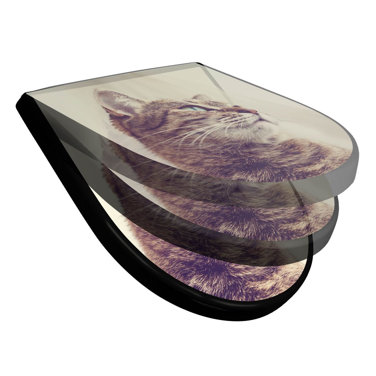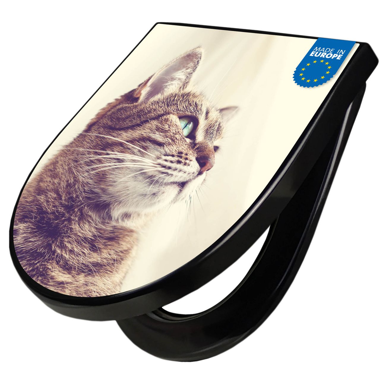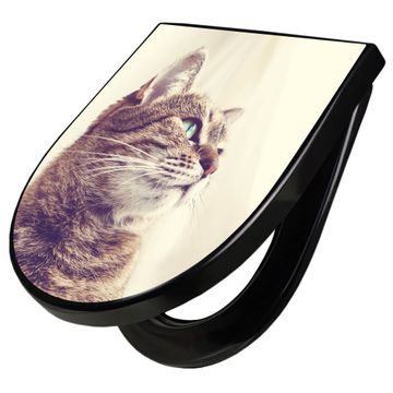 WC Sitz D-Form Schwarz mit Absenkautomatik Motiv Holgerson