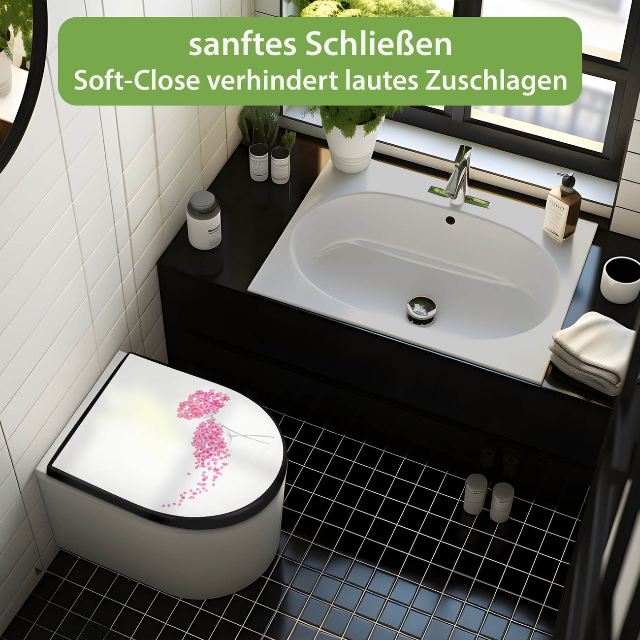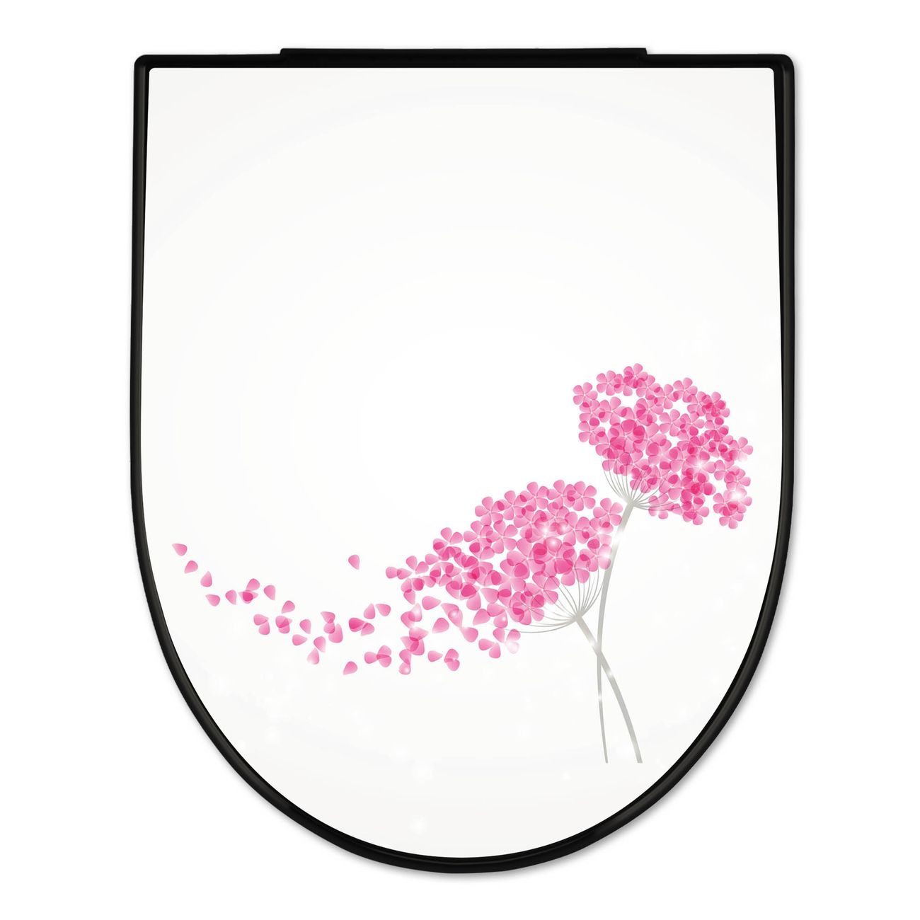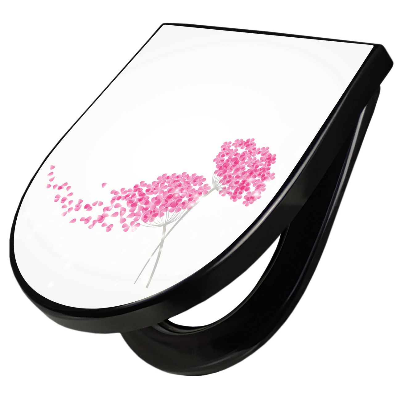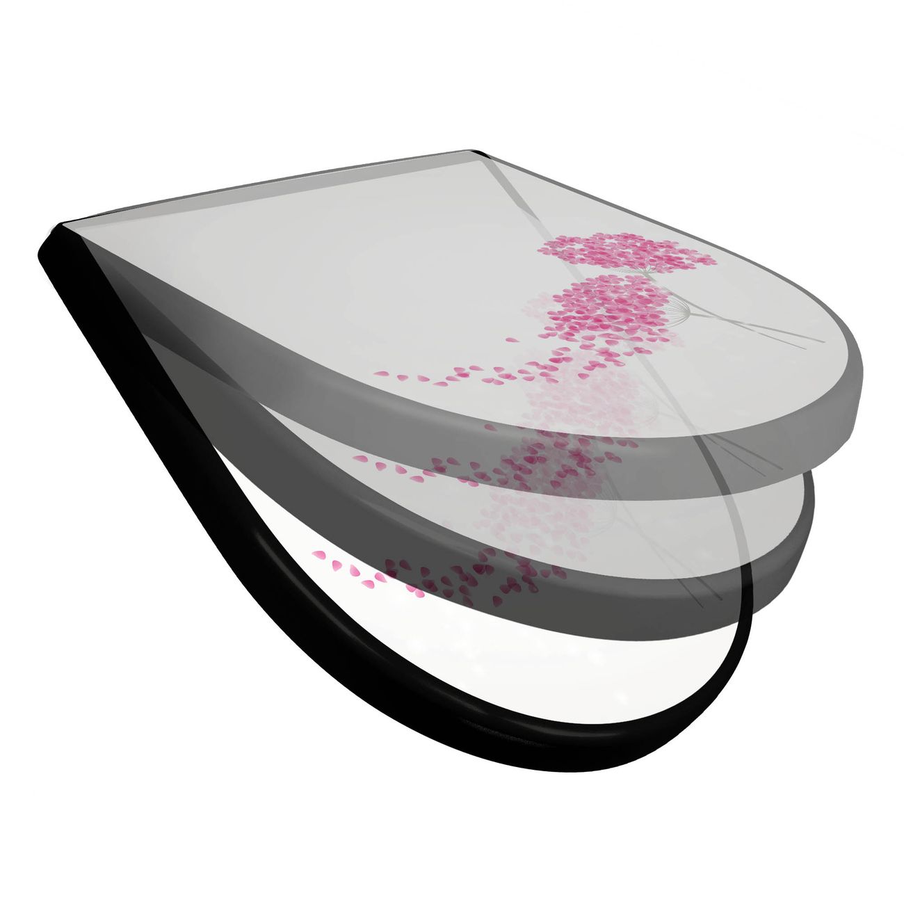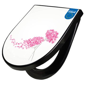 WC Sitz D-Form Schwarz mit Absenkautomatik Motiv Holunder Pink