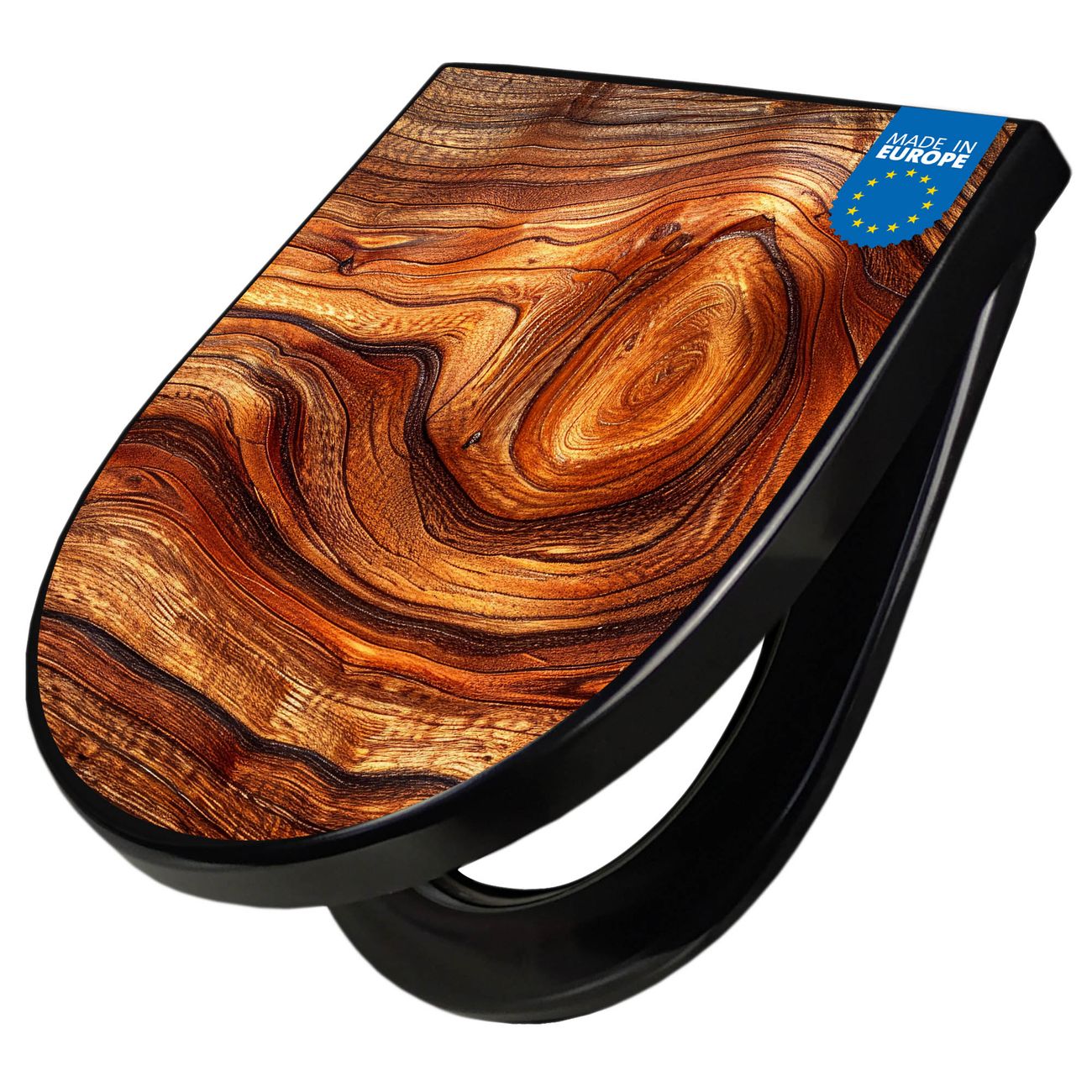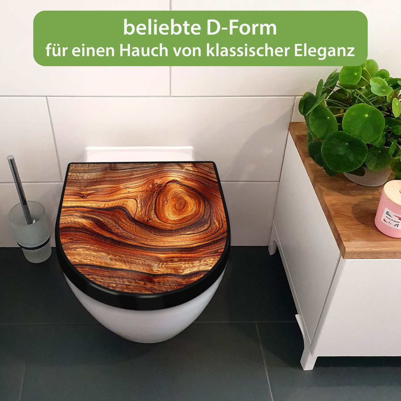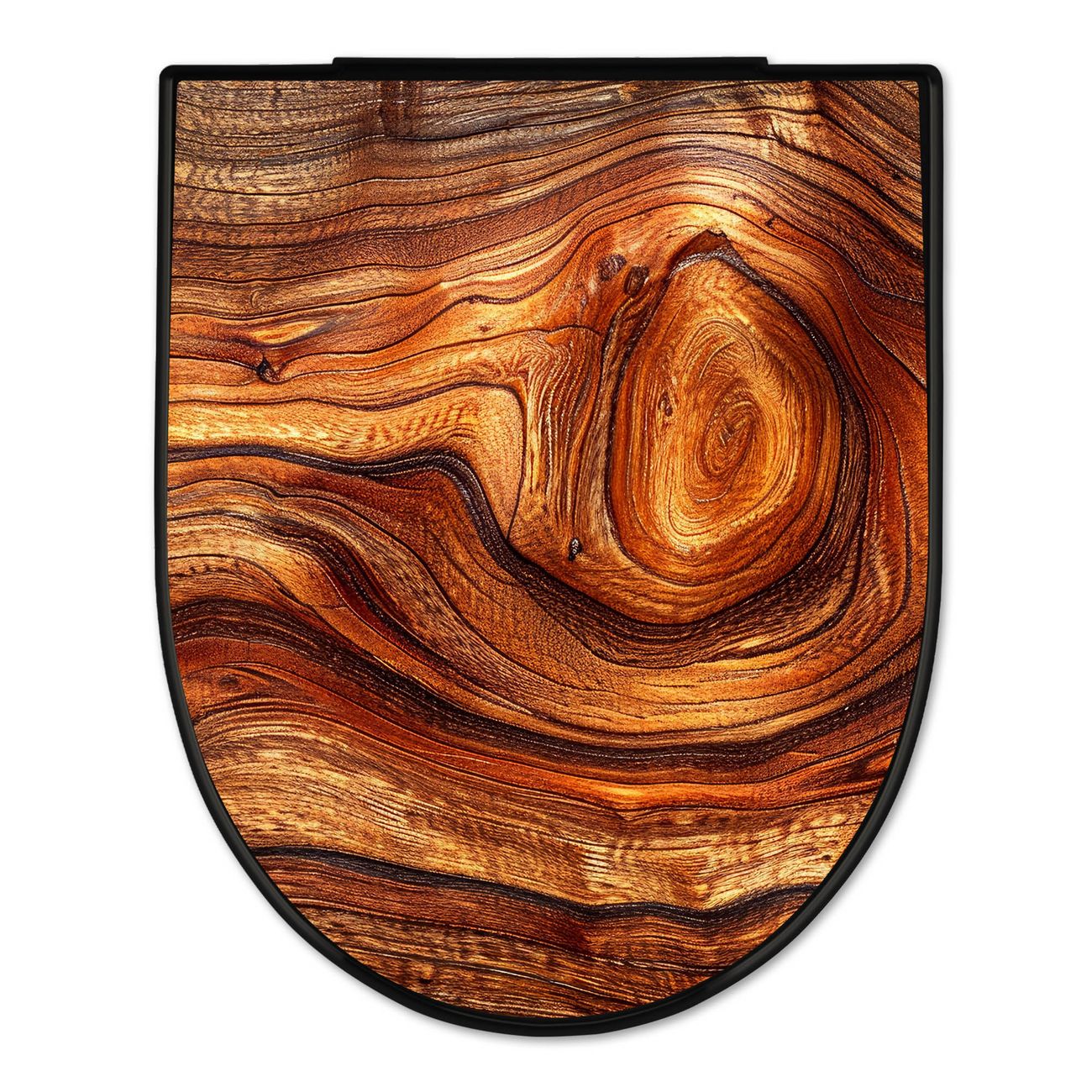 WC Sitz D-Form Schwarz mit Absenkautomatik Motiv Holz Gemasert Astloch