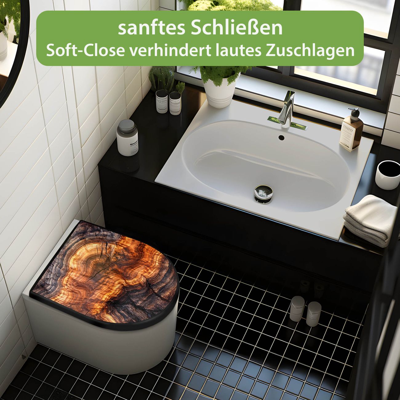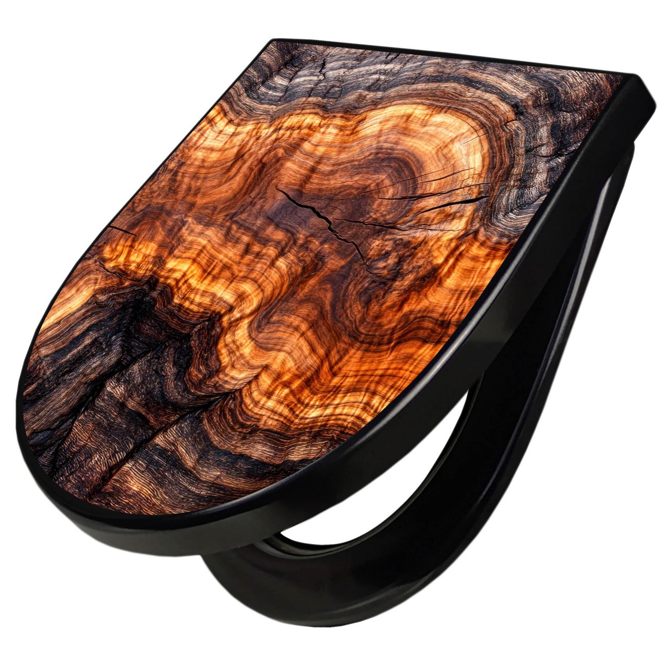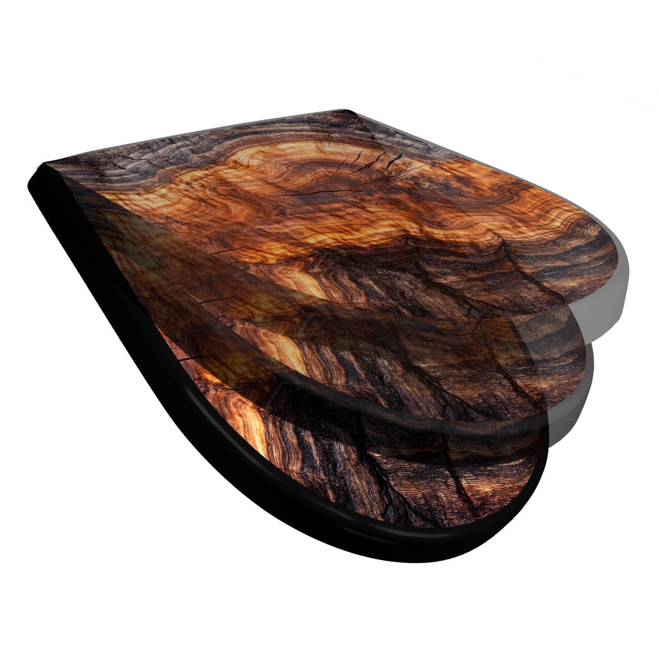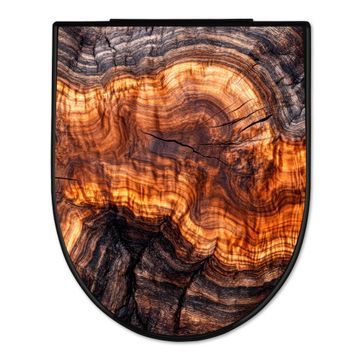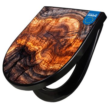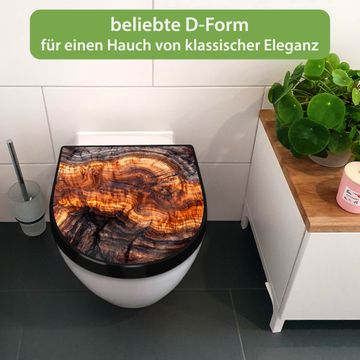 WC Sitz D-Form Schwarz mit Absenkautomatik Motiv Holz Gemasert Fluss Warm