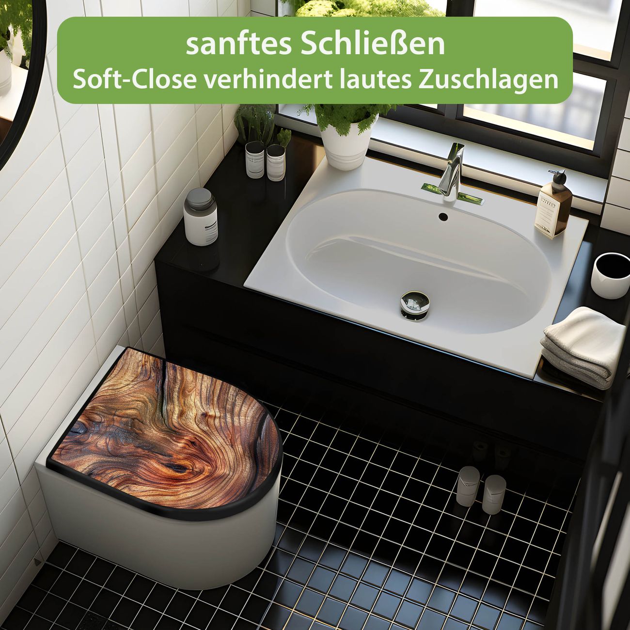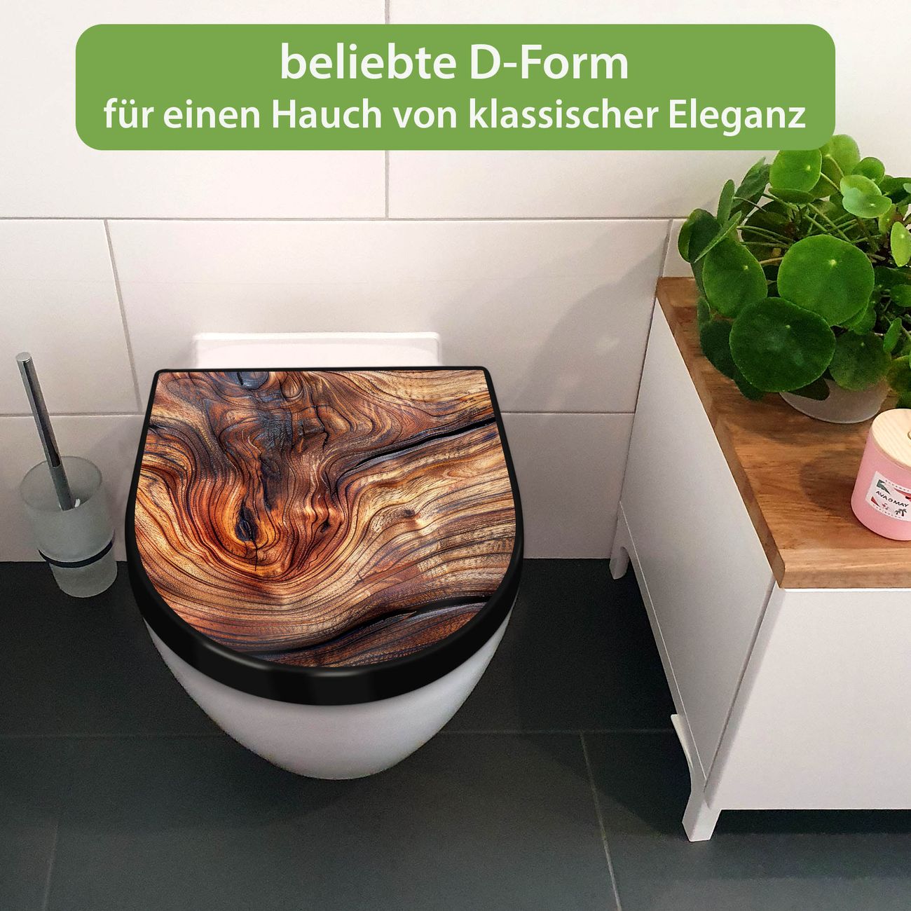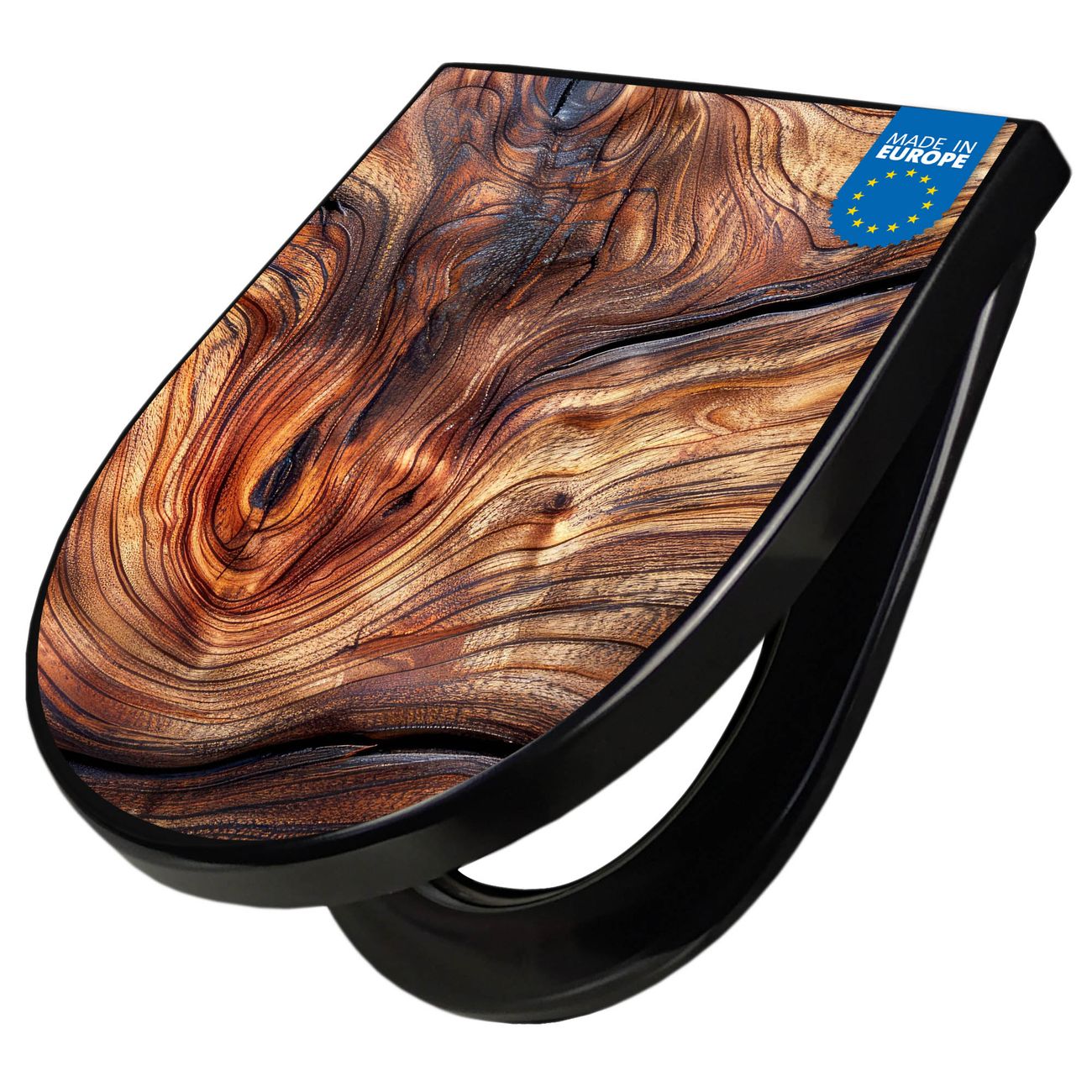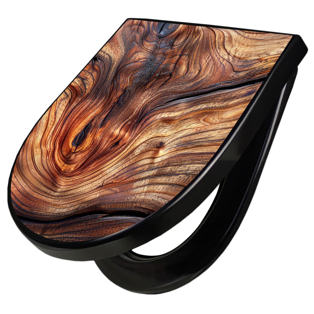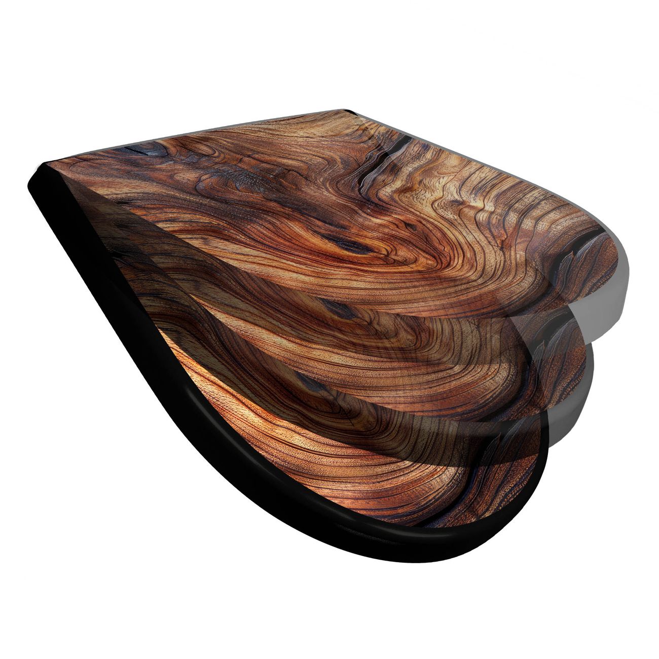 WC Sitz D-Form Schwarz mit Absenkautomatik Motiv Holz Gemasert Kurve