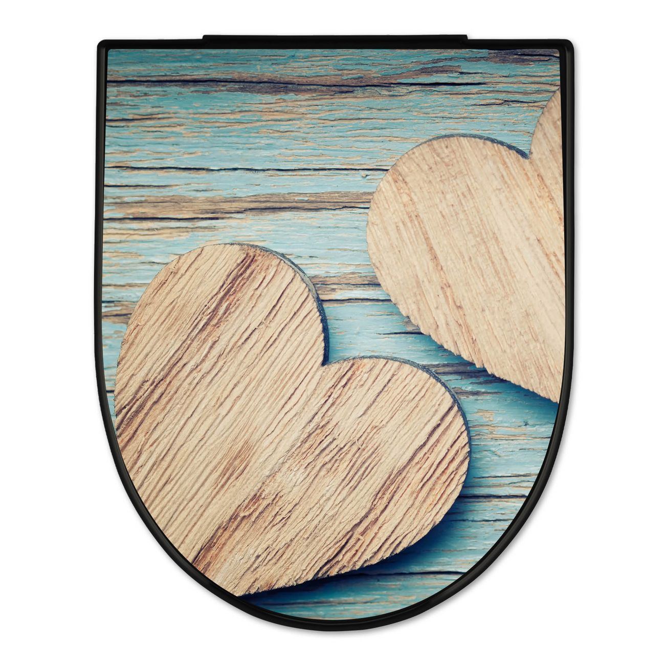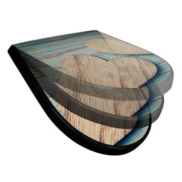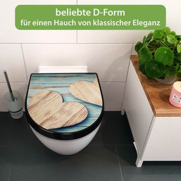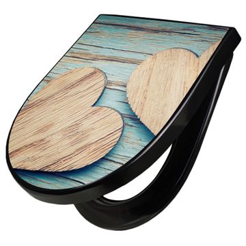 WC Sitz D-Form Schwarz mit Absenkautomatik Motiv Holz Herzen