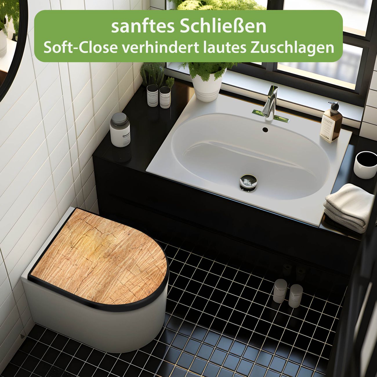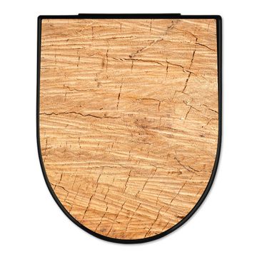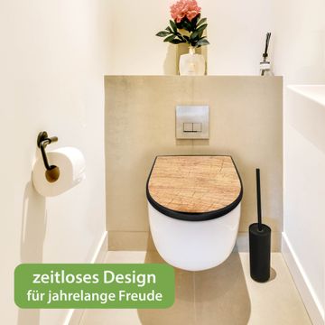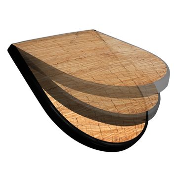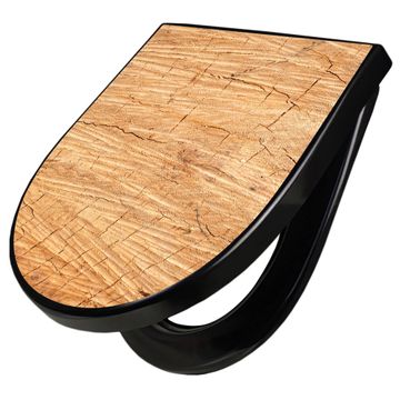 WC Sitz D-Form Schwarz mit Absenkautomatik Motiv Holz Struktur Honig