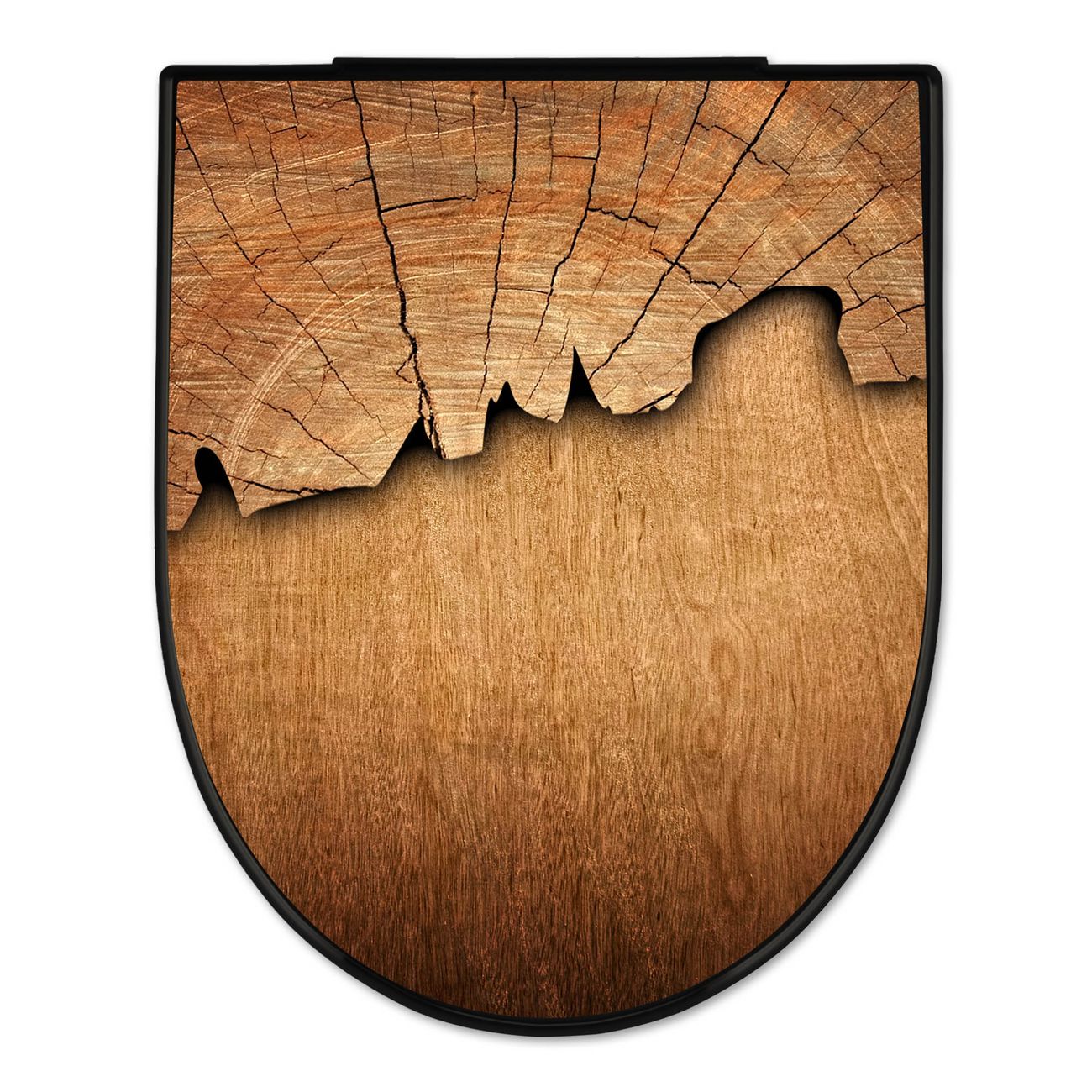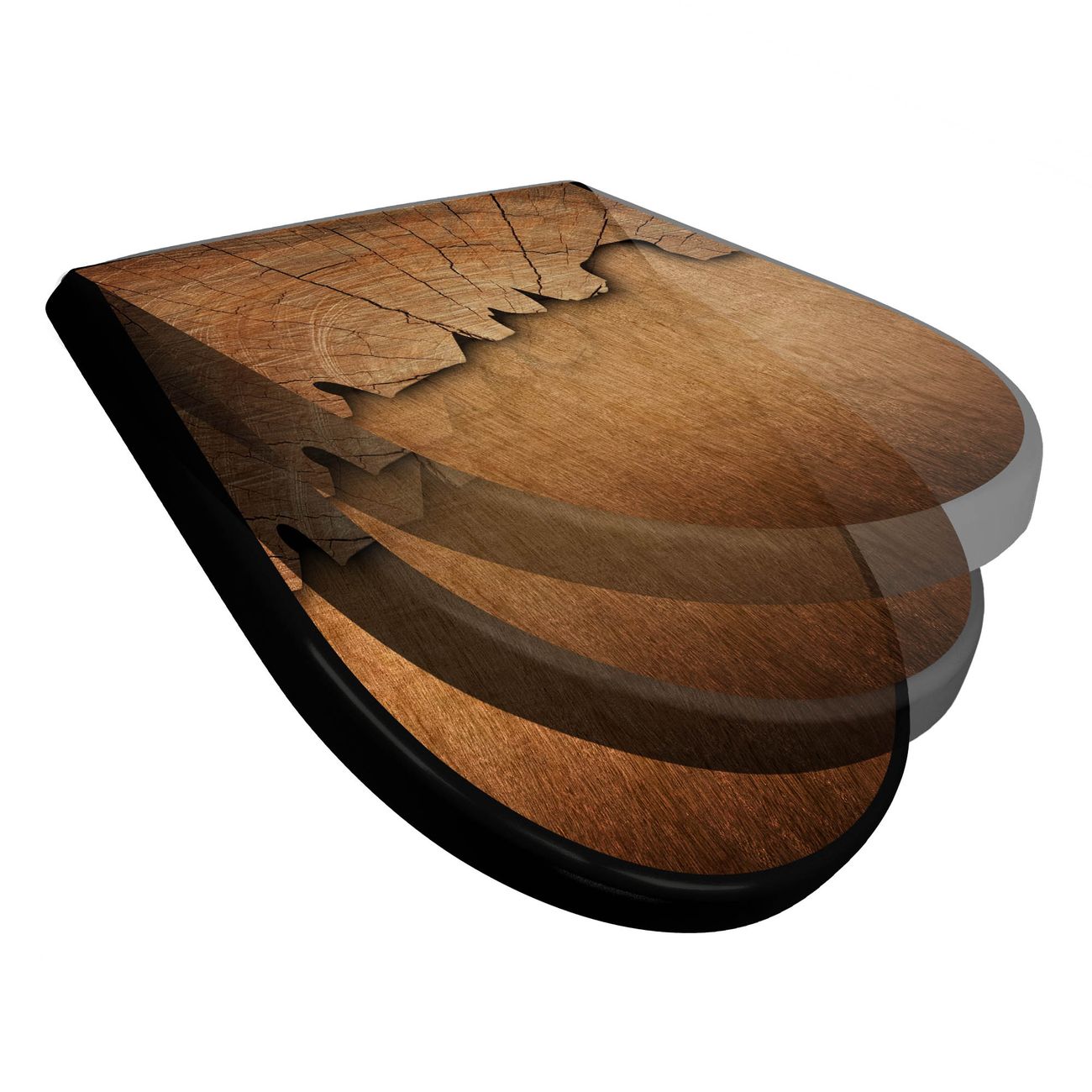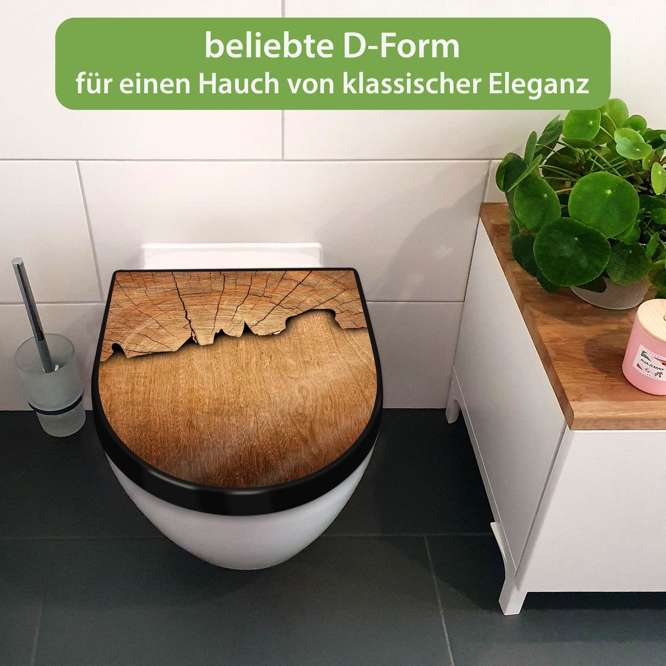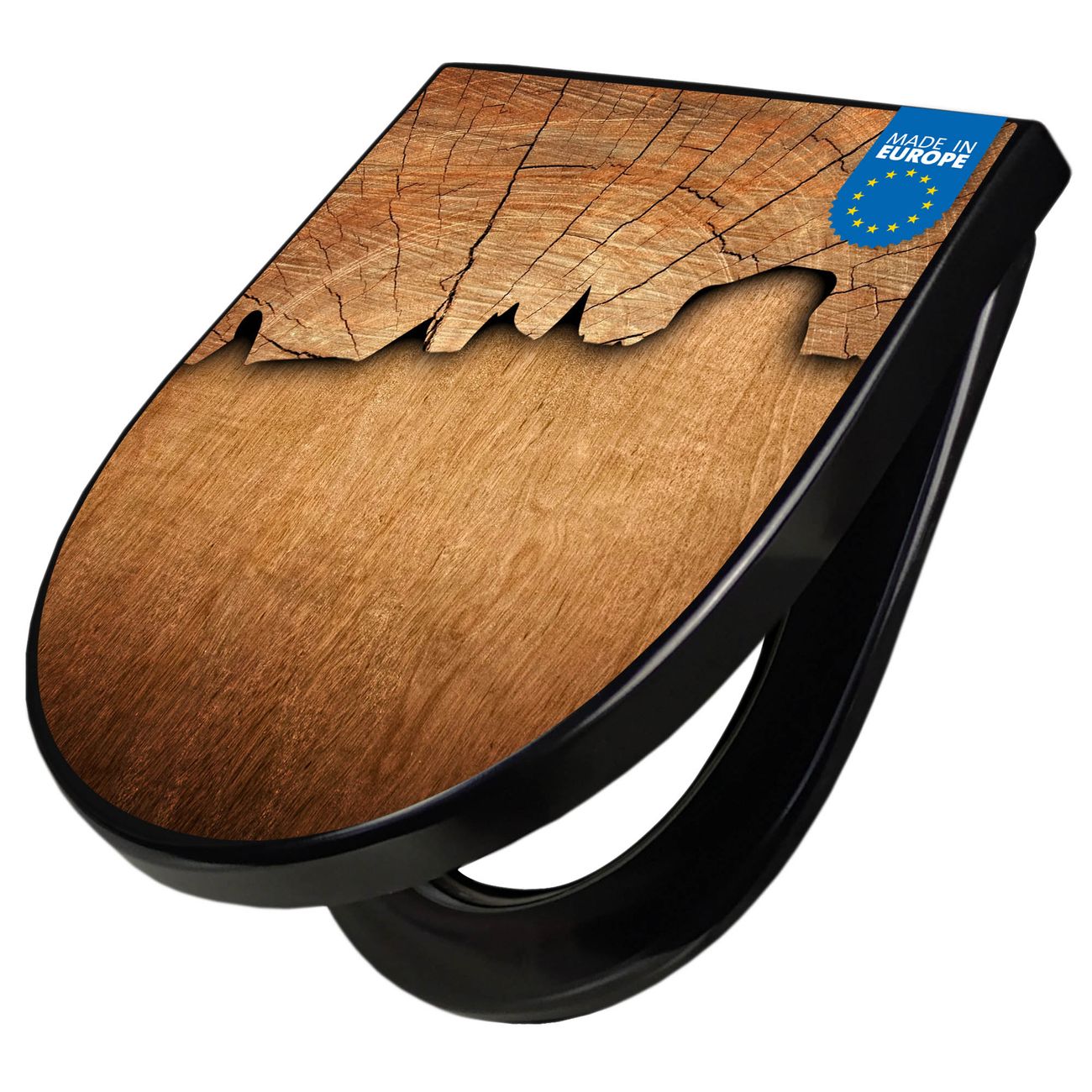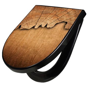 WC Sitz D-Form Schwarz mit Absenkautomatik Motiv Holz