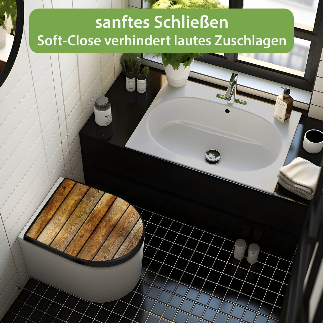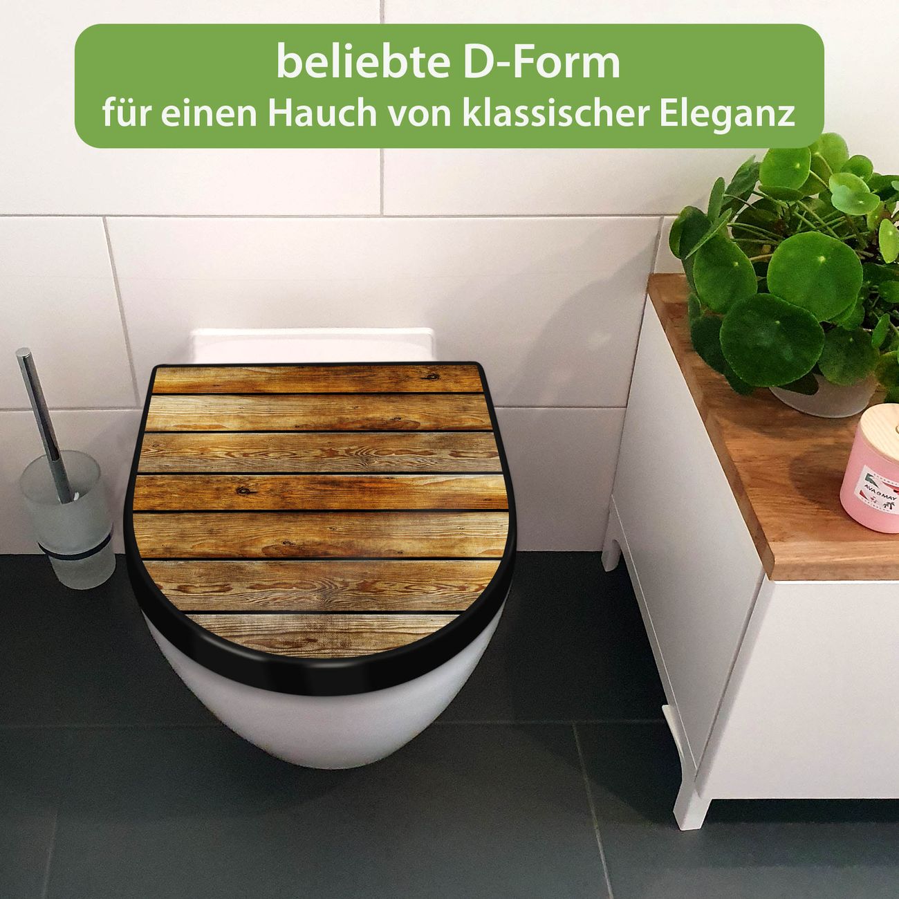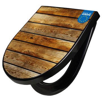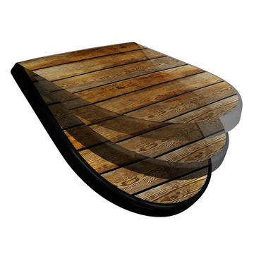 WC Sitz D-Form Schwarz mit Absenkautomatik Motiv Holzbretter