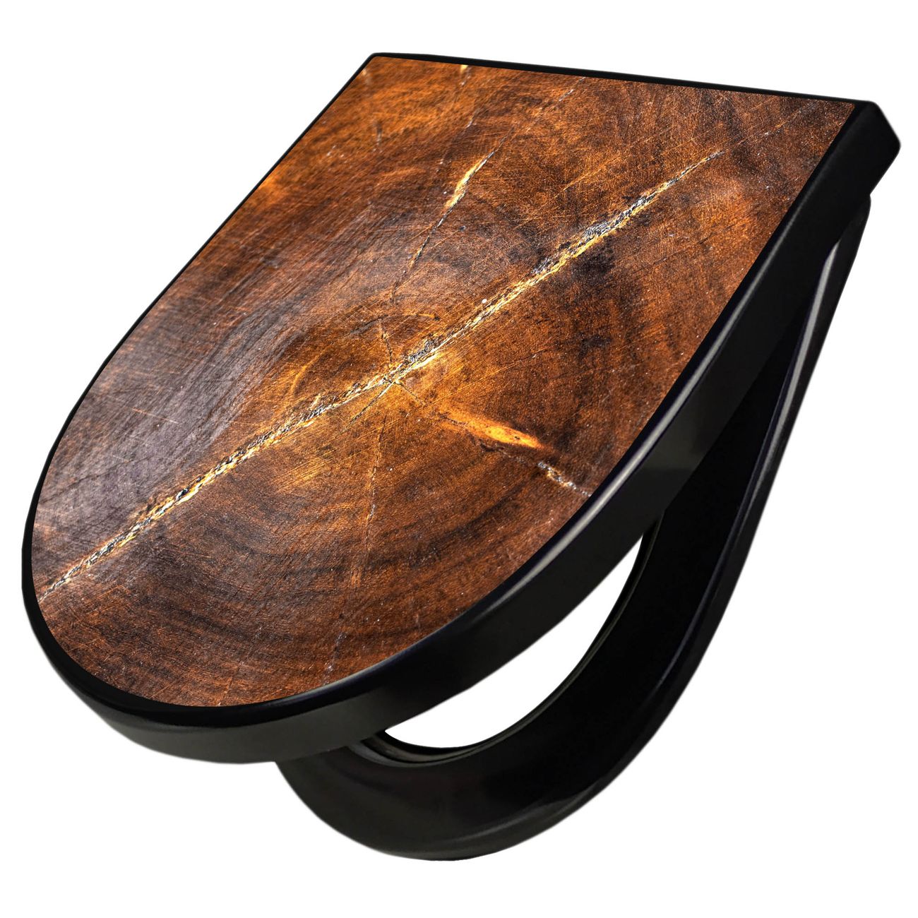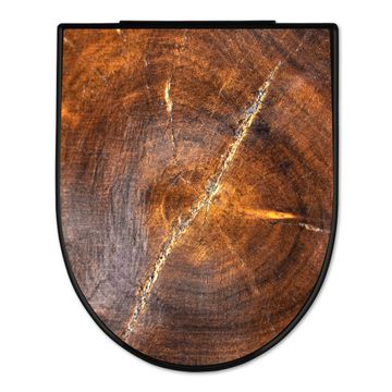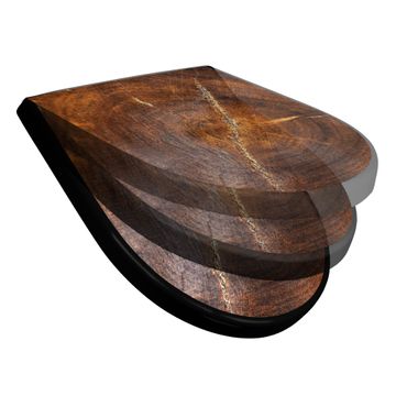 WC Sitz D-Form Schwarz mit Absenkautomatik Motiv Holzring mit Rissen