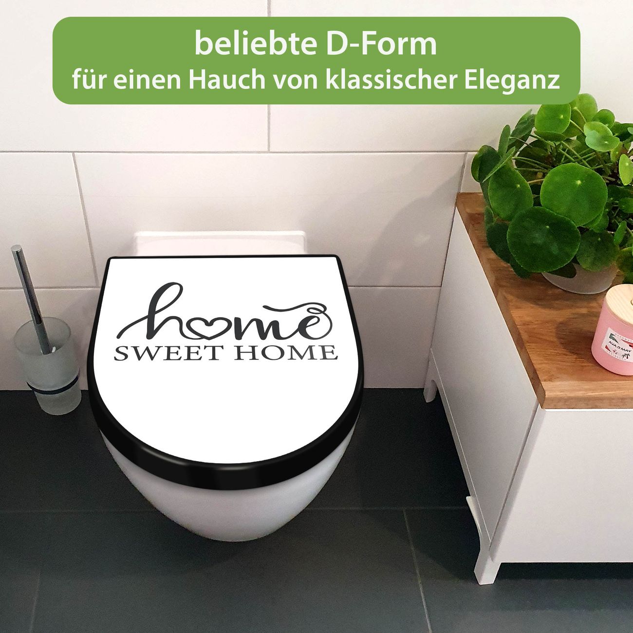 WC Sitz D-Form Schwarz mit Absenkautomatik Motiv Home Sweet Home Schriftzug