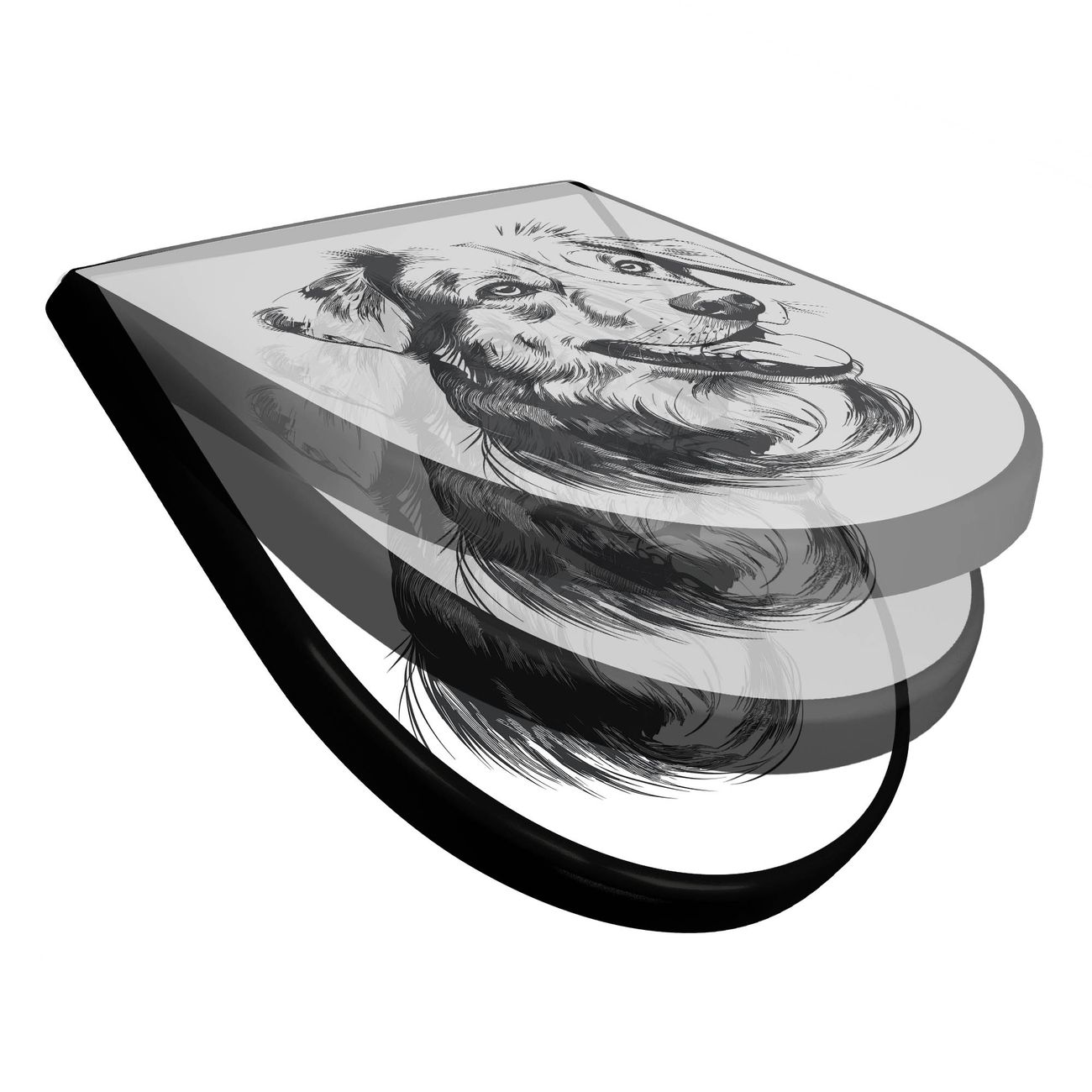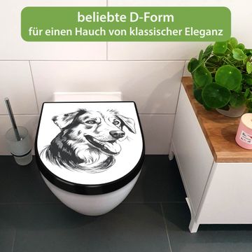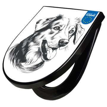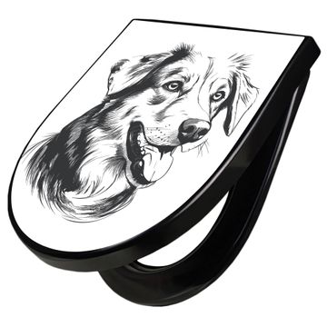 WC Sitz D-Form Schwarz mit Absenkautomatik Motiv Hund Illustration