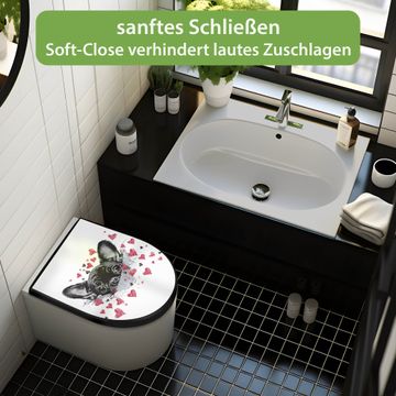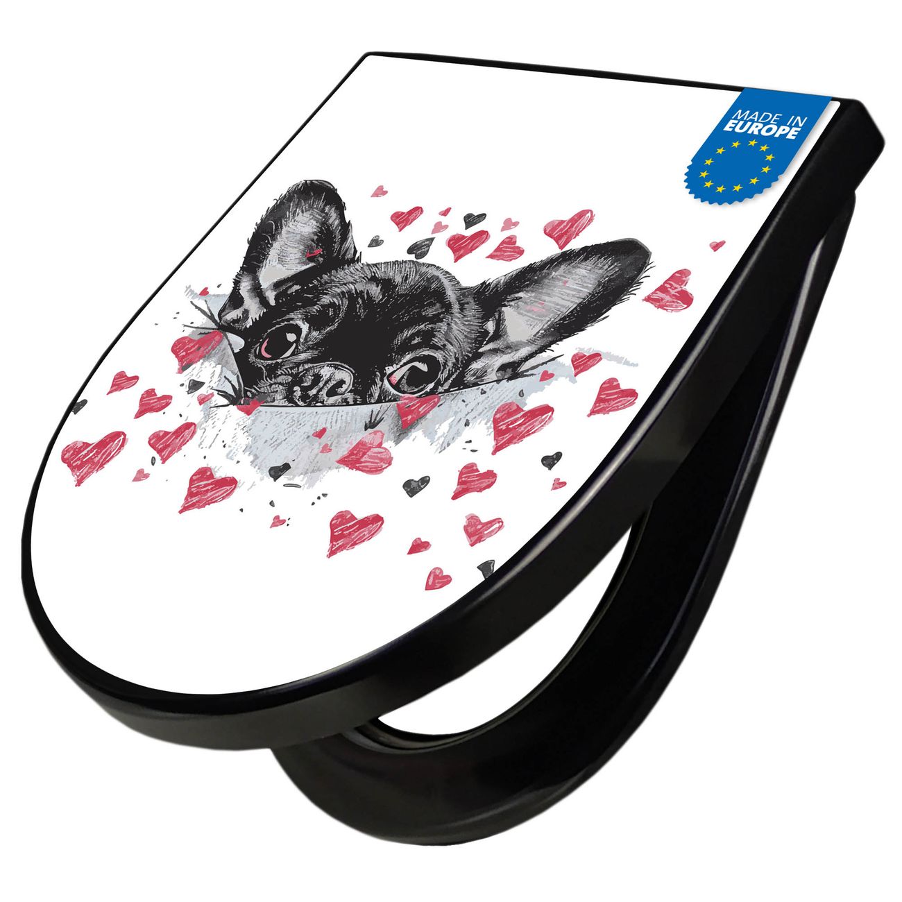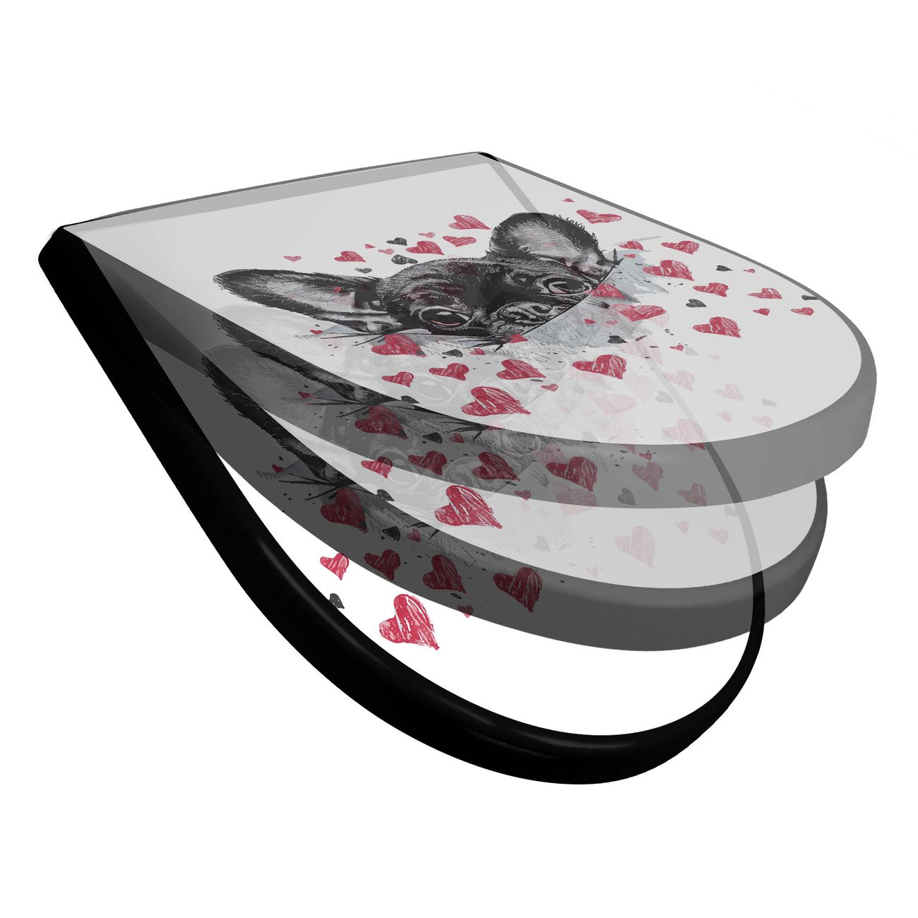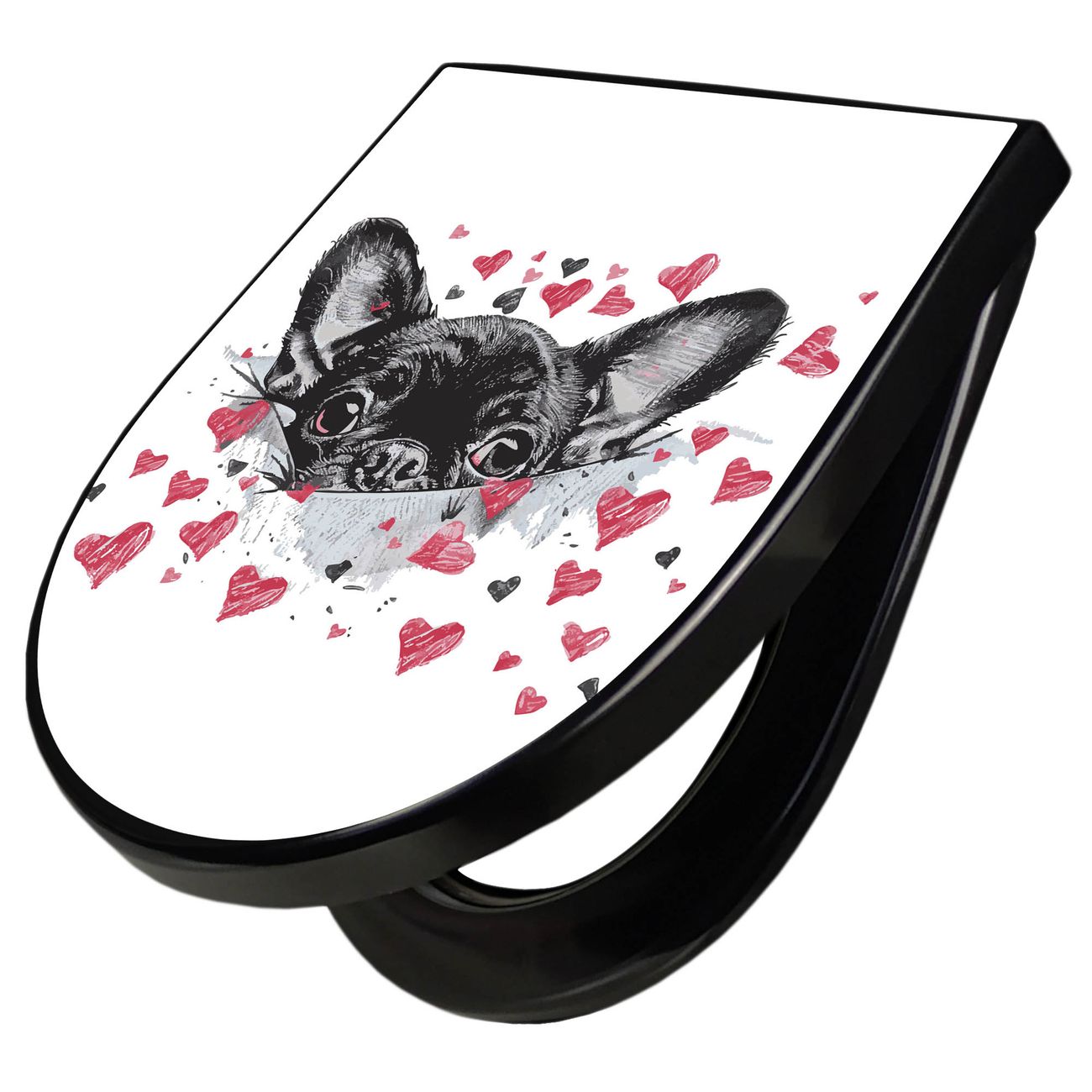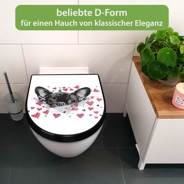 WC Sitz D-Form Schwarz mit Absenkautomatik Motiv Hund mit Herzen