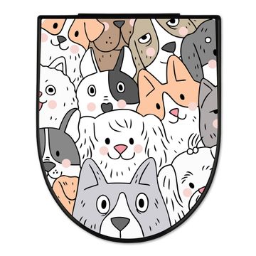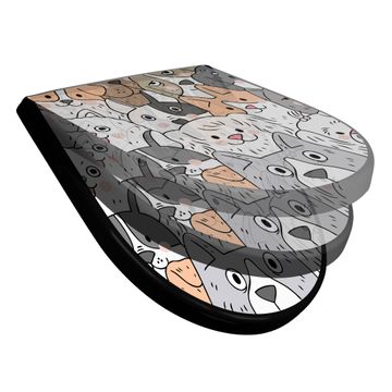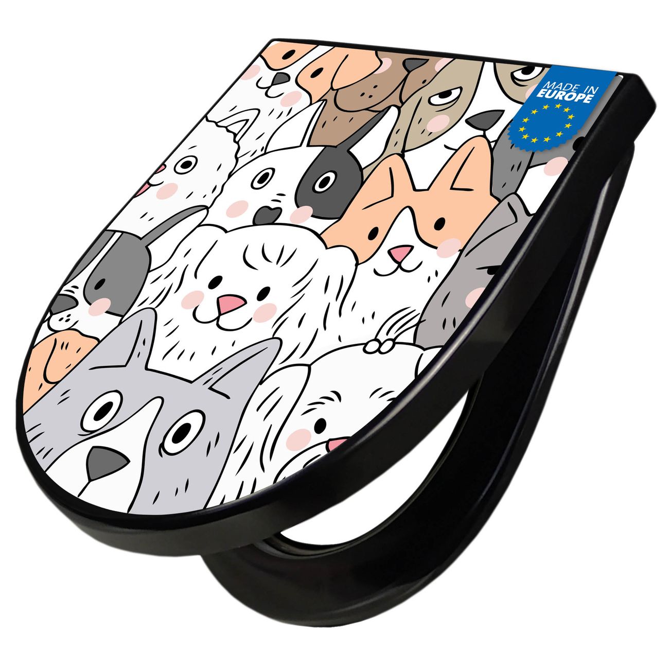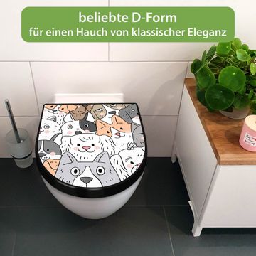 WC Sitz D-Form Schwarz mit Absenkautomatik Motiv Hunde Gruppe neugierig