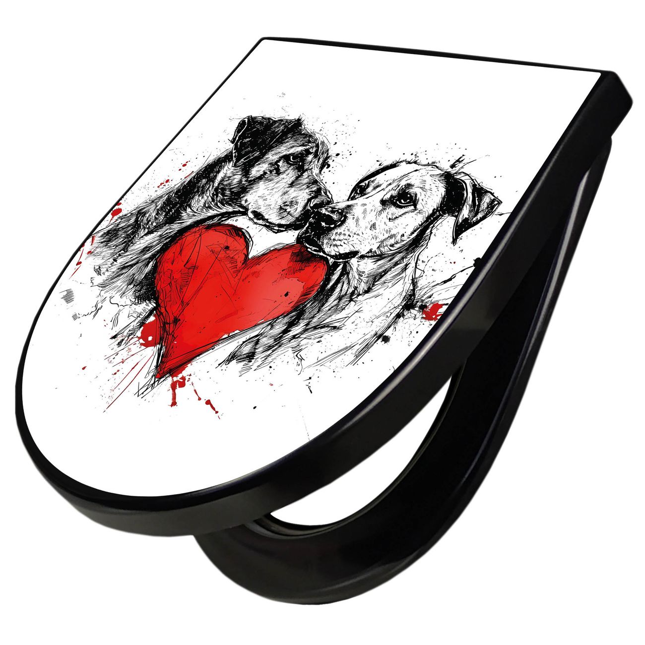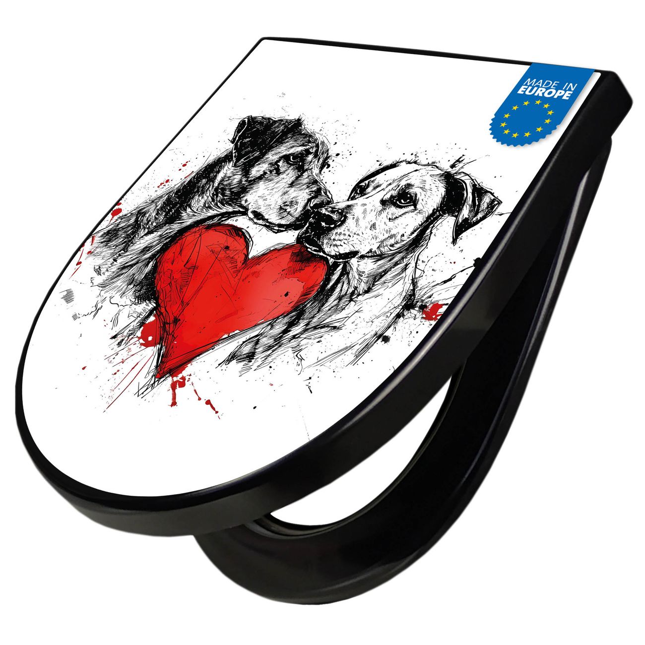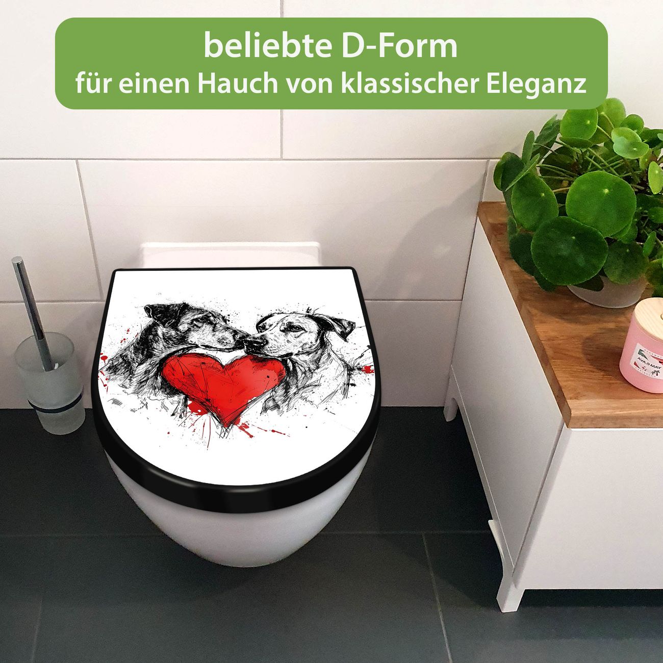 WC Sitz D-Form Schwarz mit Absenkautomatik Motiv Hunde mit Herz
