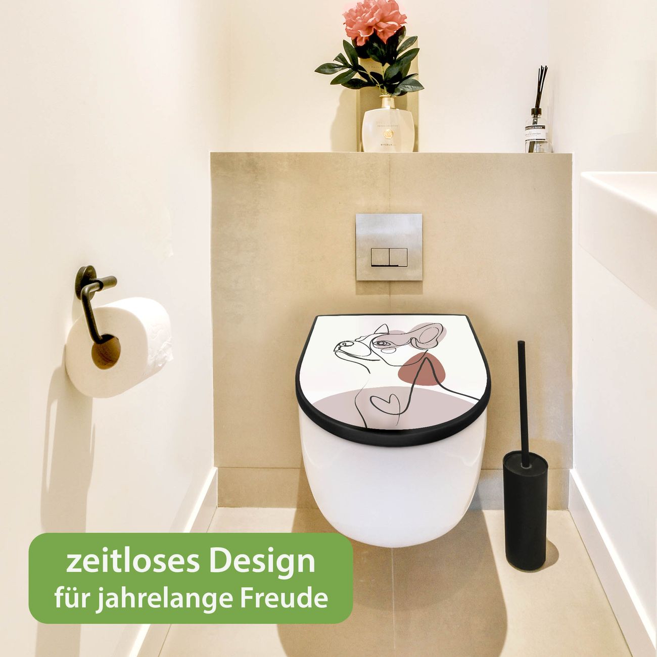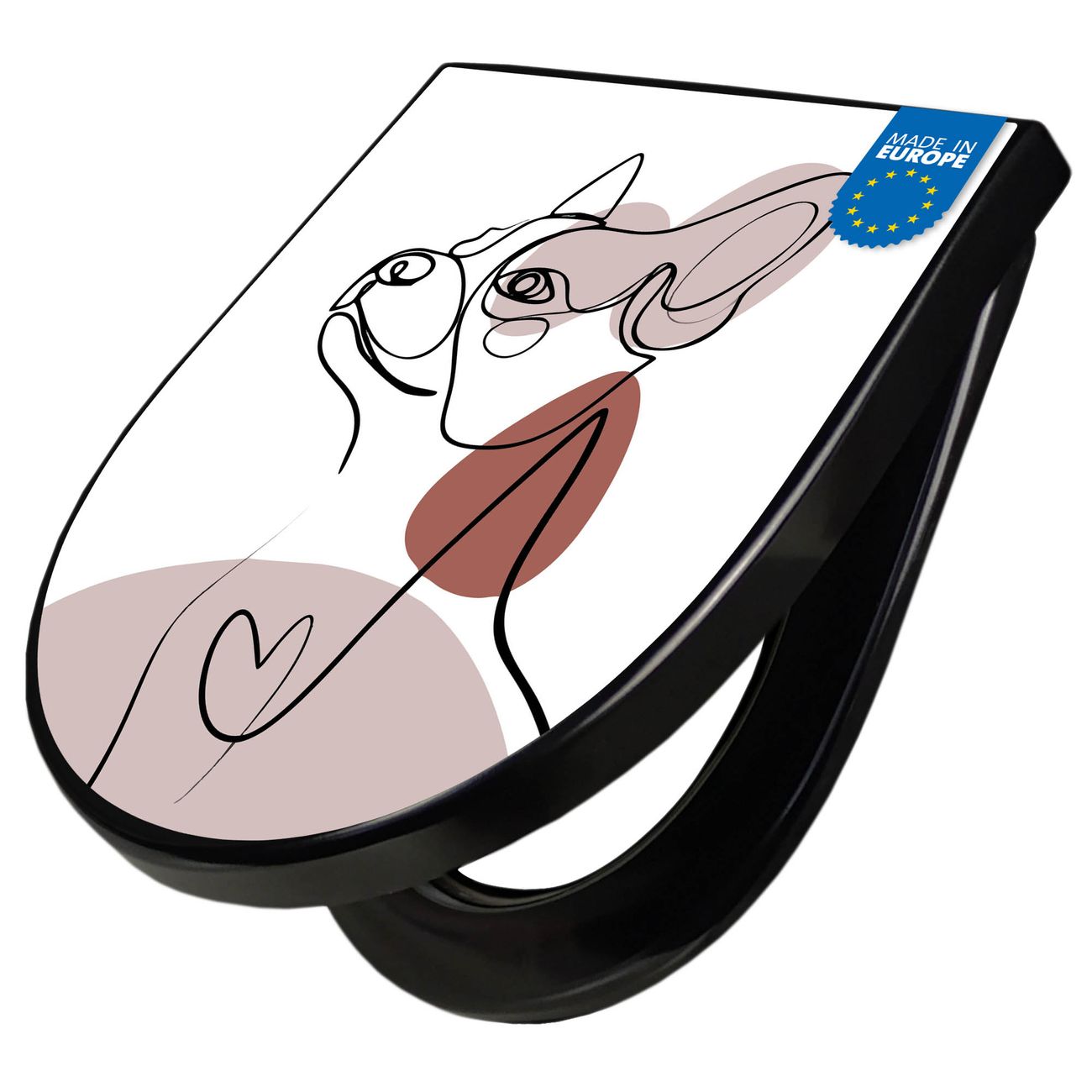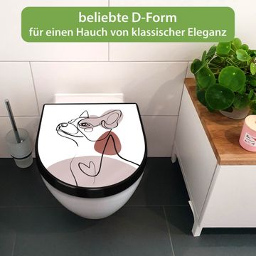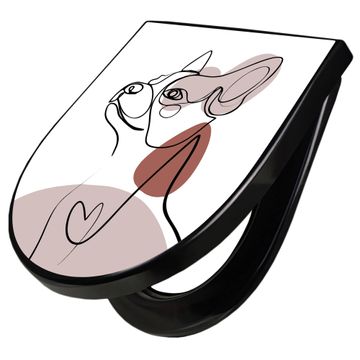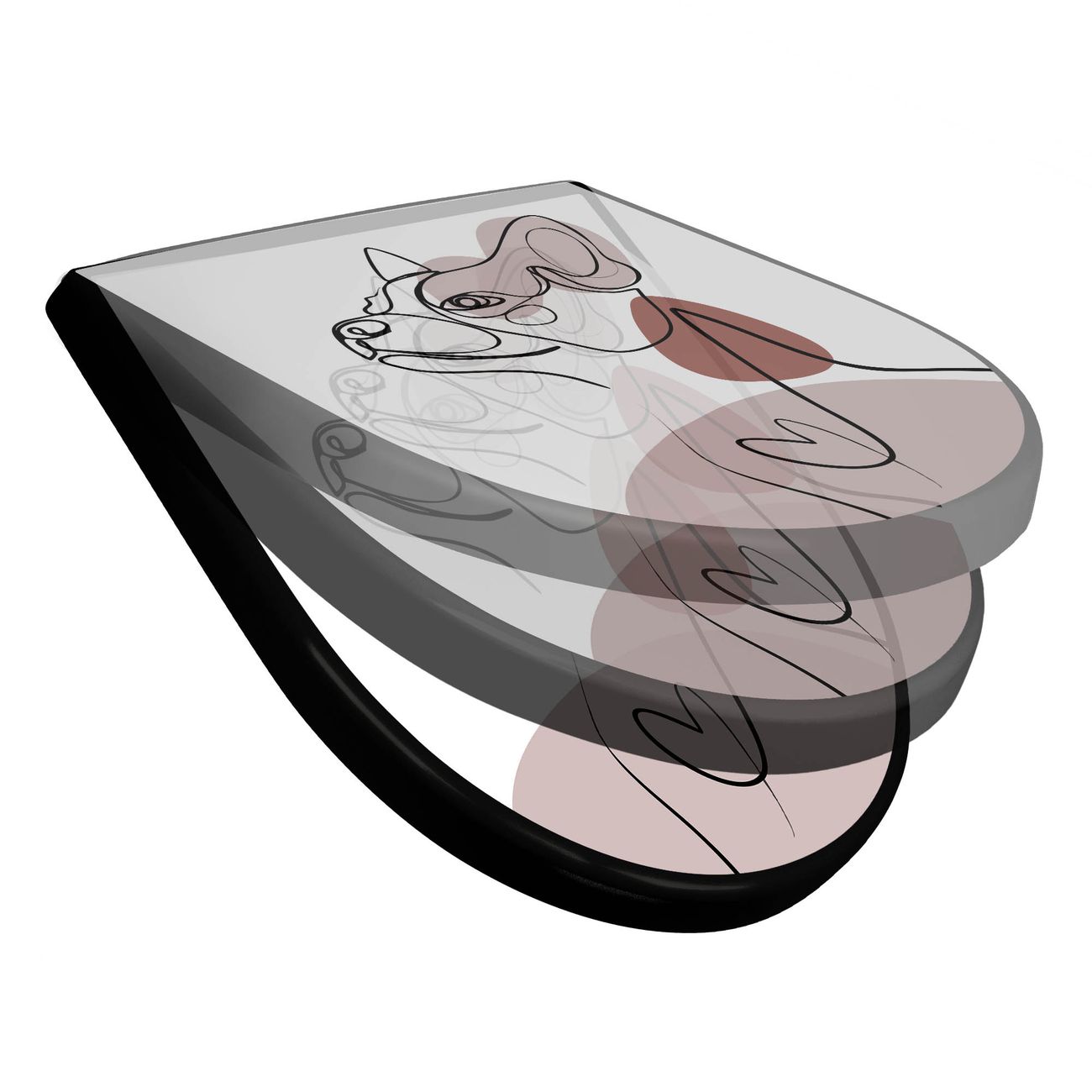 WC Sitz D-Form Schwarz mit Absenkautomatik Motiv Hundeporträt Lineart