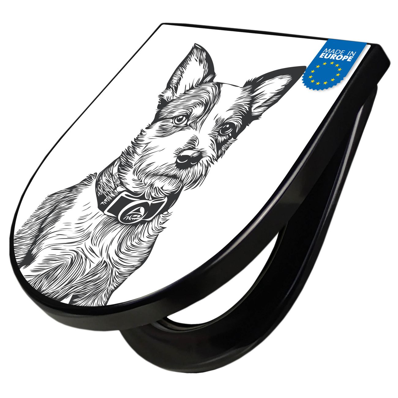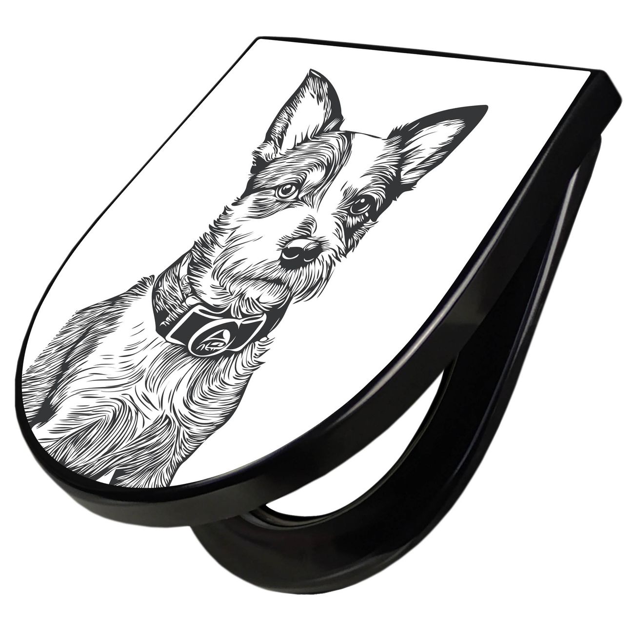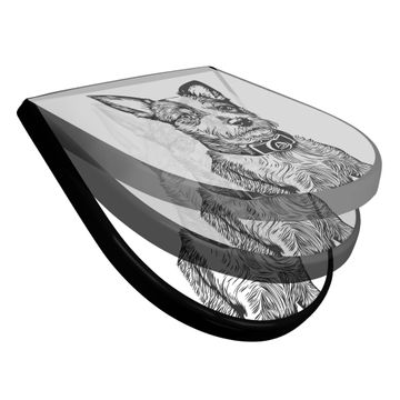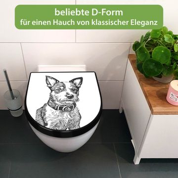 WC Sitz D-Form Schwarz mit Absenkautomatik Motiv Hundeskizze 2