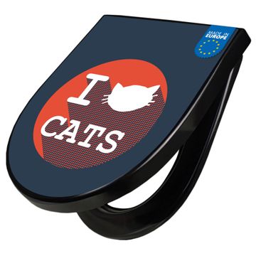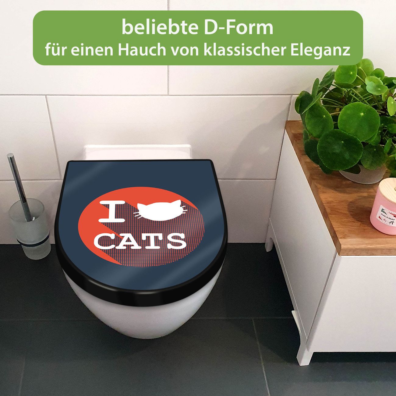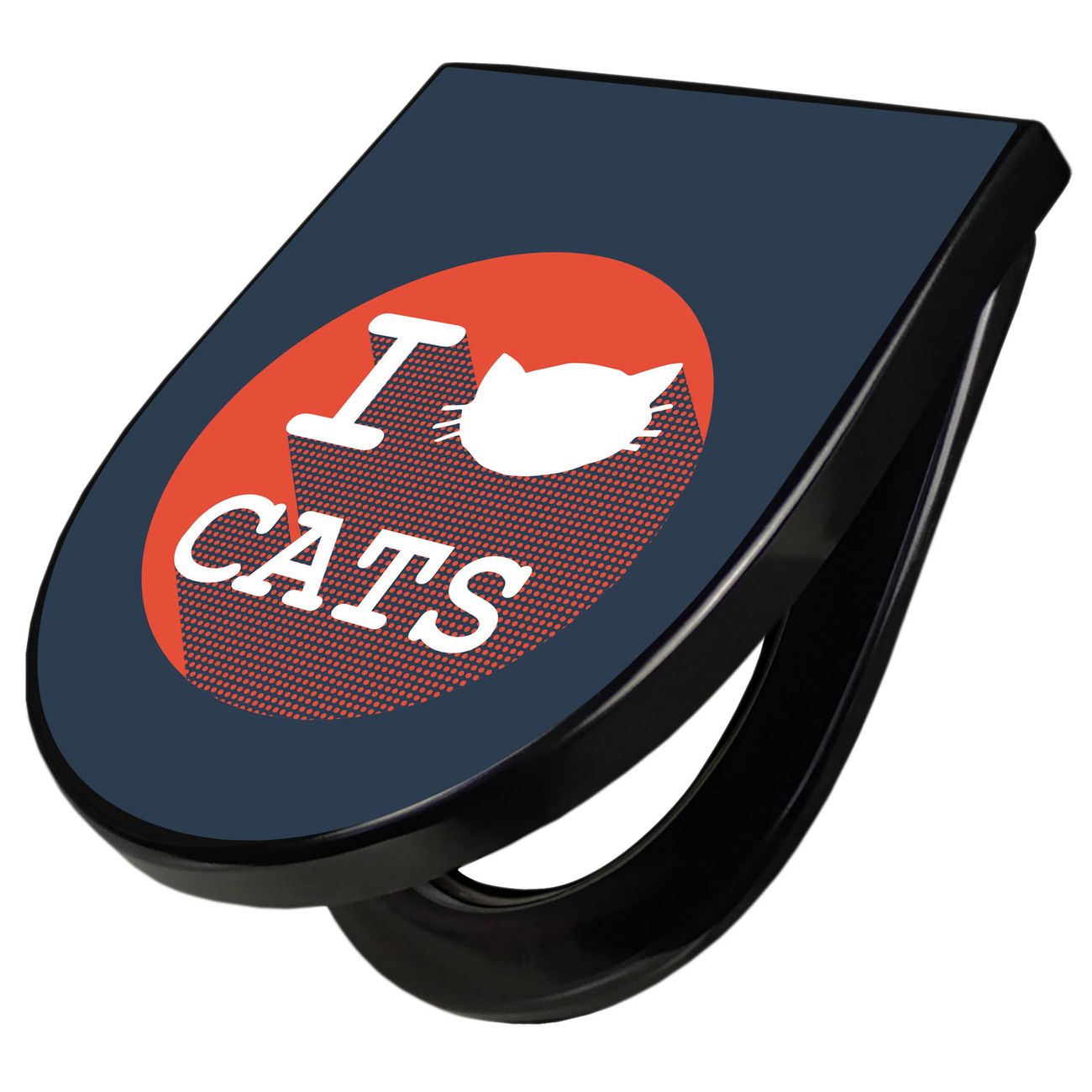 WC Sitz D-Form Schwarz mit Absenkautomatik Motiv I Love Cats