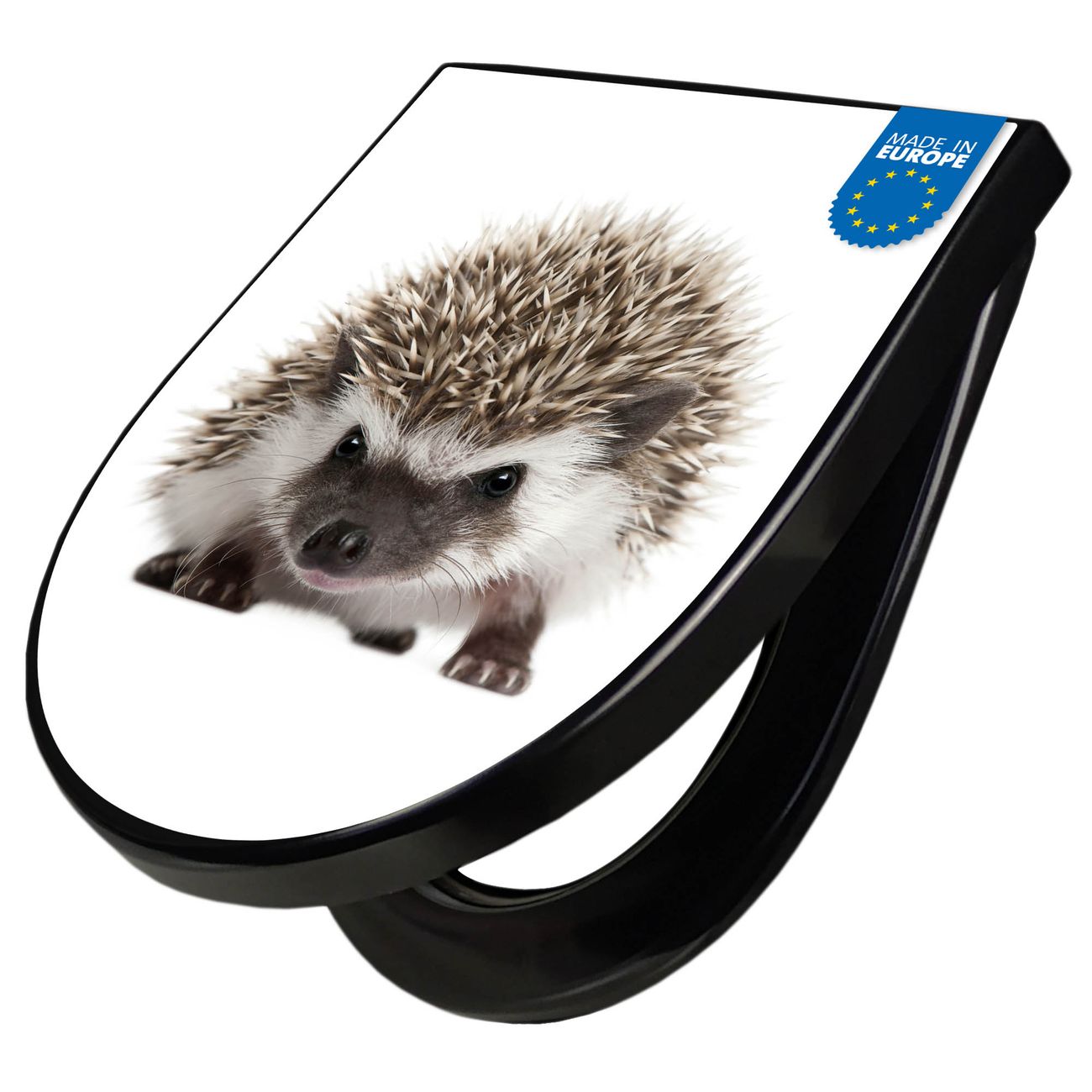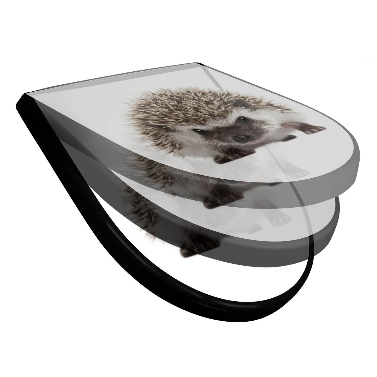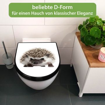 WC Sitz D-Form Schwarz mit Absenkautomatik Motiv Igel