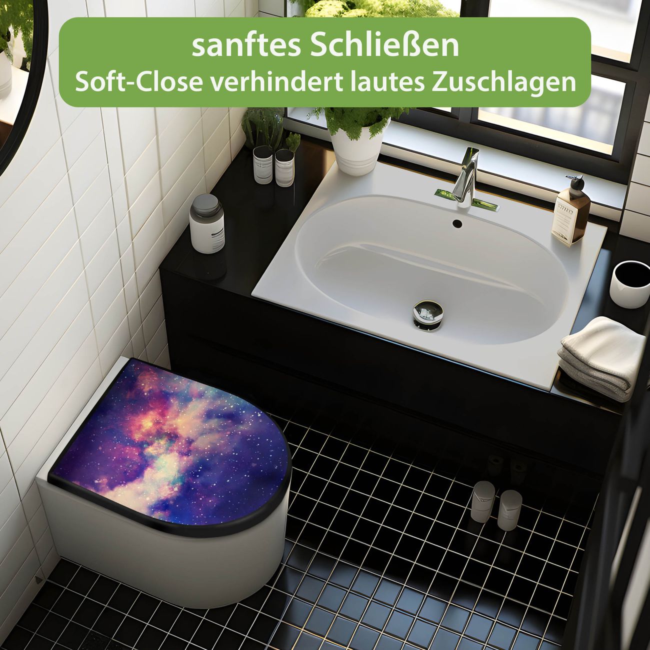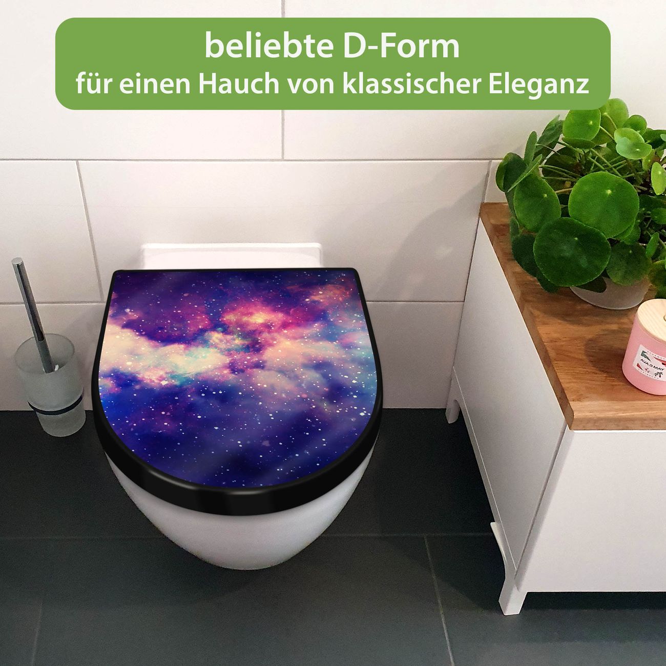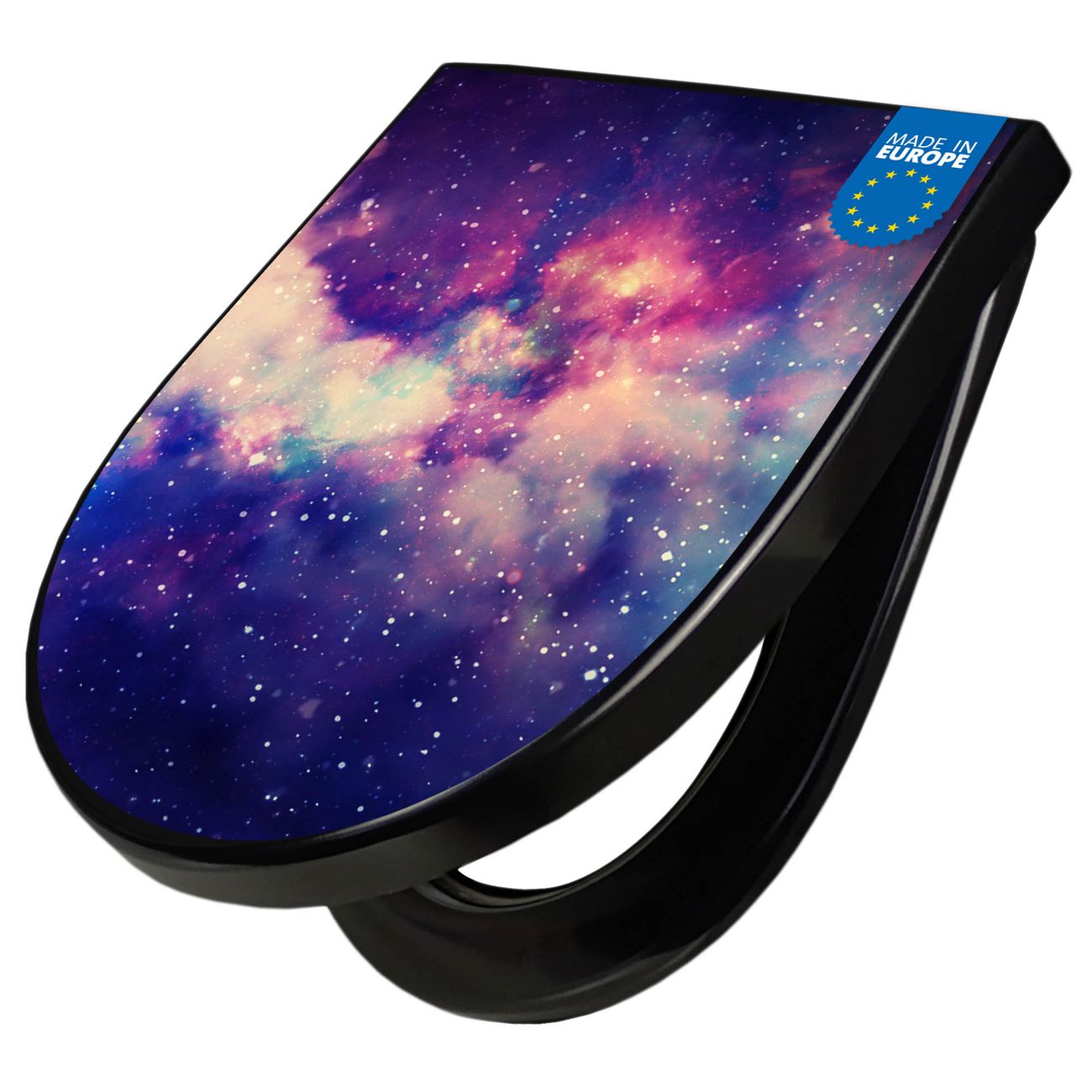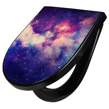 WC Sitz D-Form Schwarz mit Absenkautomatik Motiv Im Weltall 1
