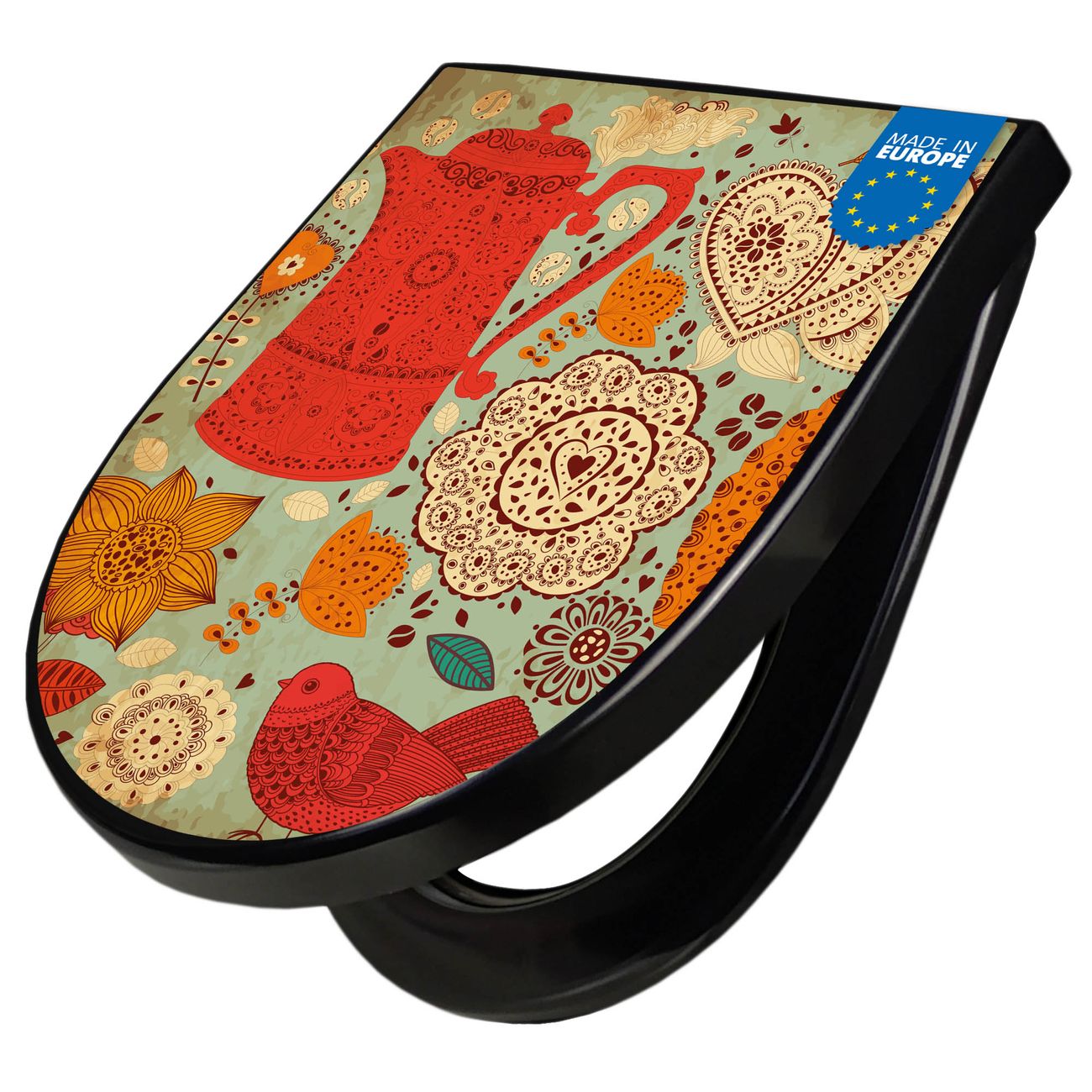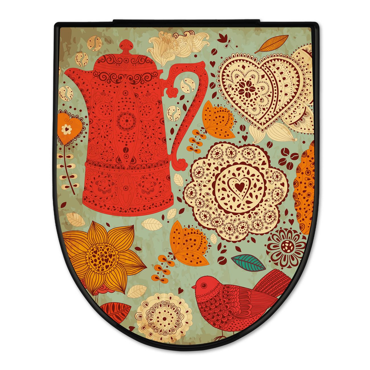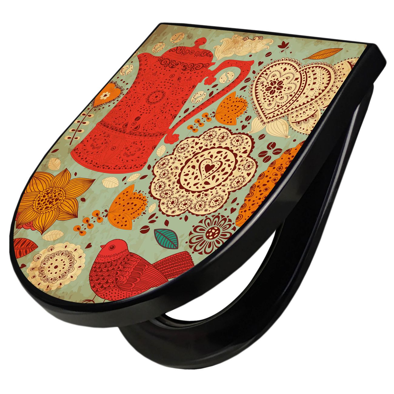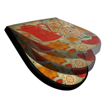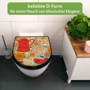 WC Sitz D-Form Schwarz mit Absenkautomatik Motiv Indischer Kaffee