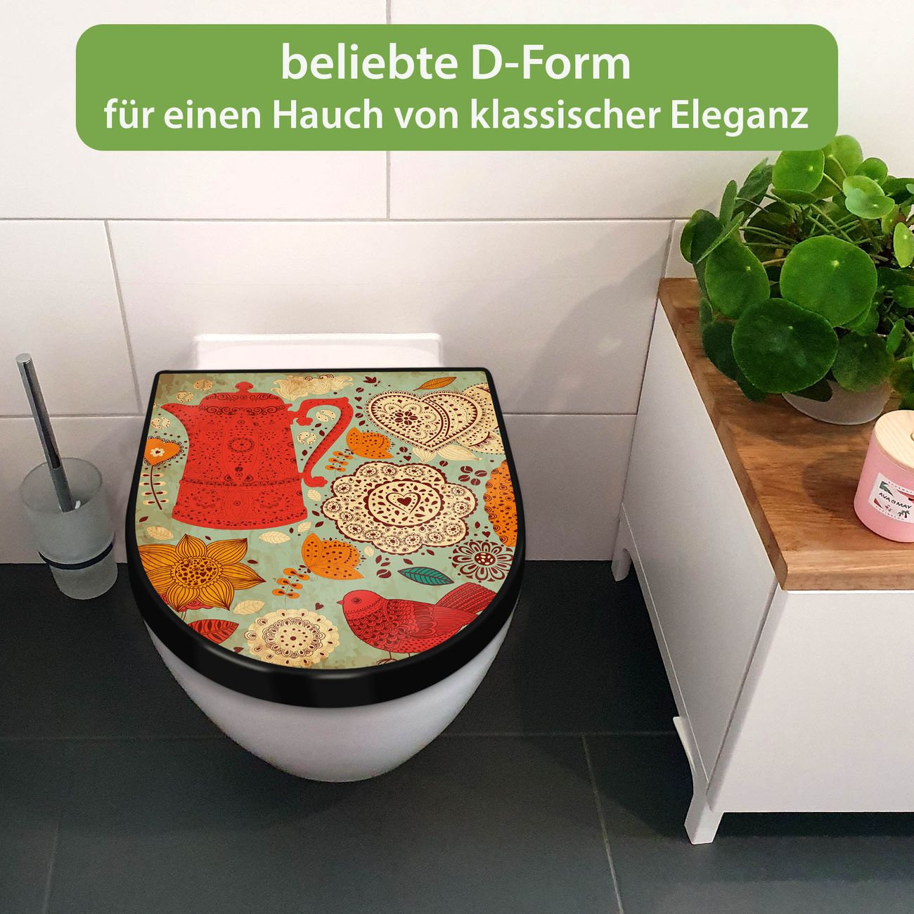 Der WC-Deckel wird in Europa gefertigt und im Herzen von Sachsen für Sie mit dem gewünschten Motiv veredelt. Die hierfür verwendete Folie ist lösungsmittelfrei und schutzlaminiert.