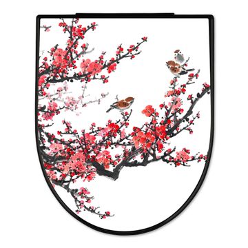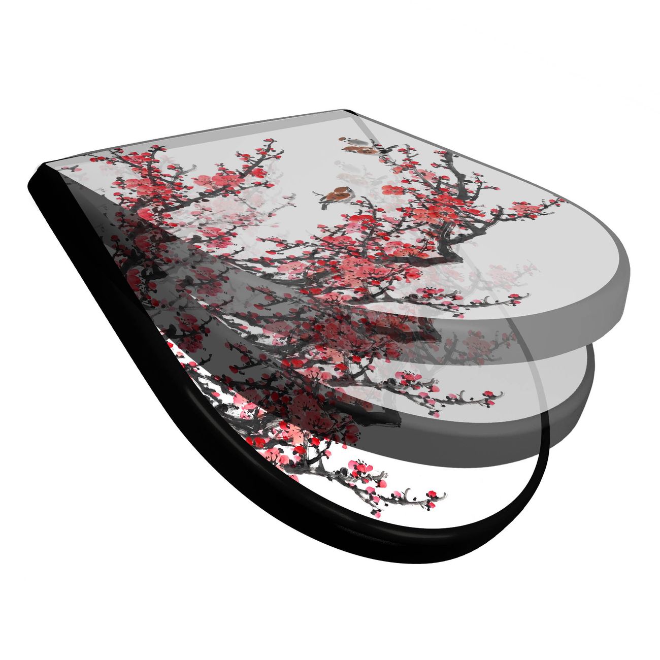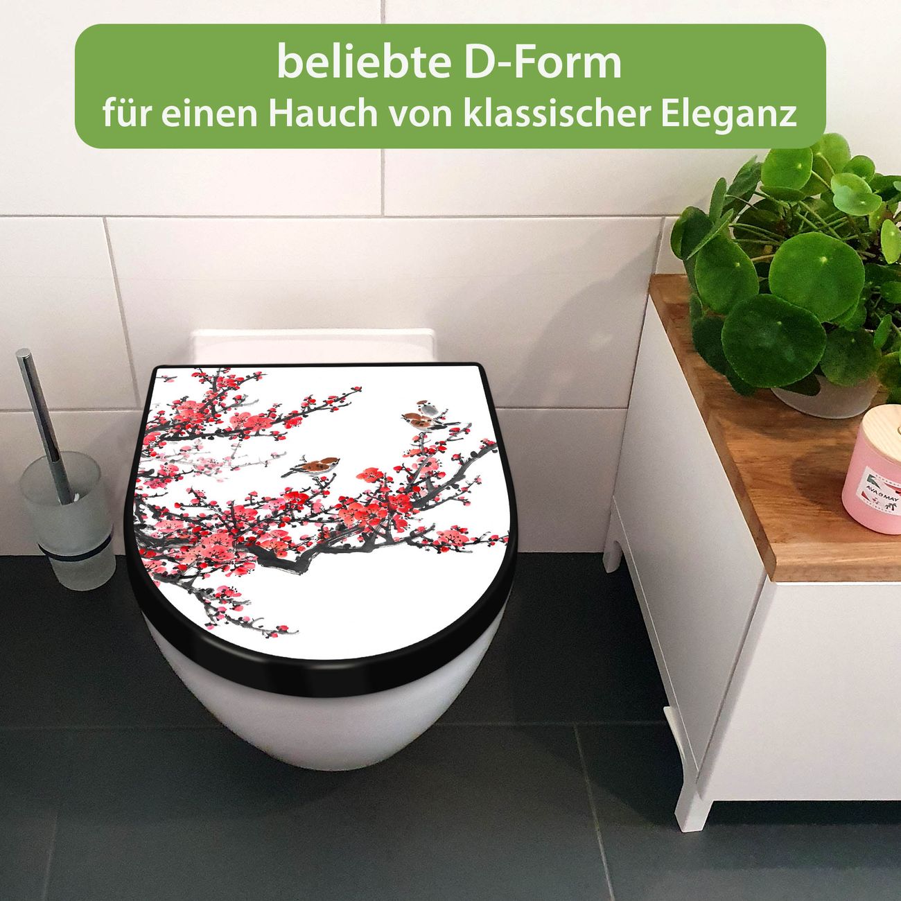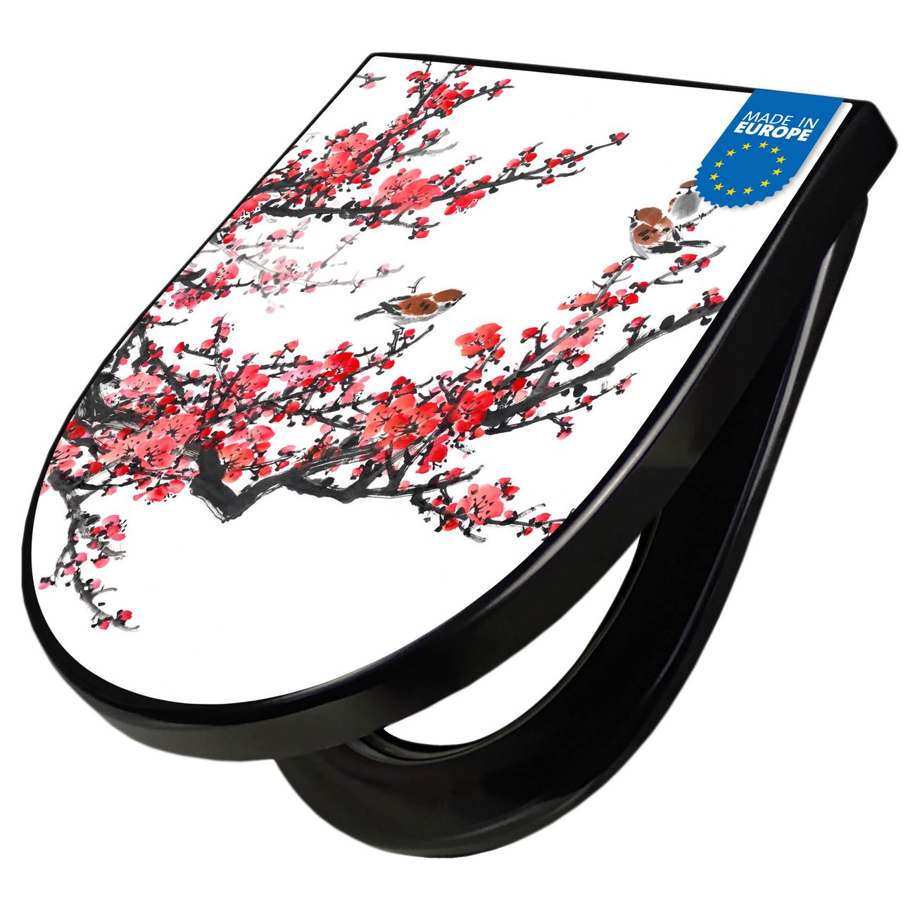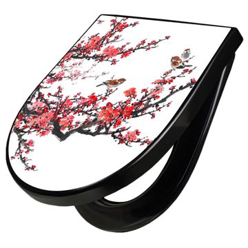 WC Sitz D-Form Schwarz mit Absenkautomatik Motiv Japanische Blüten 1