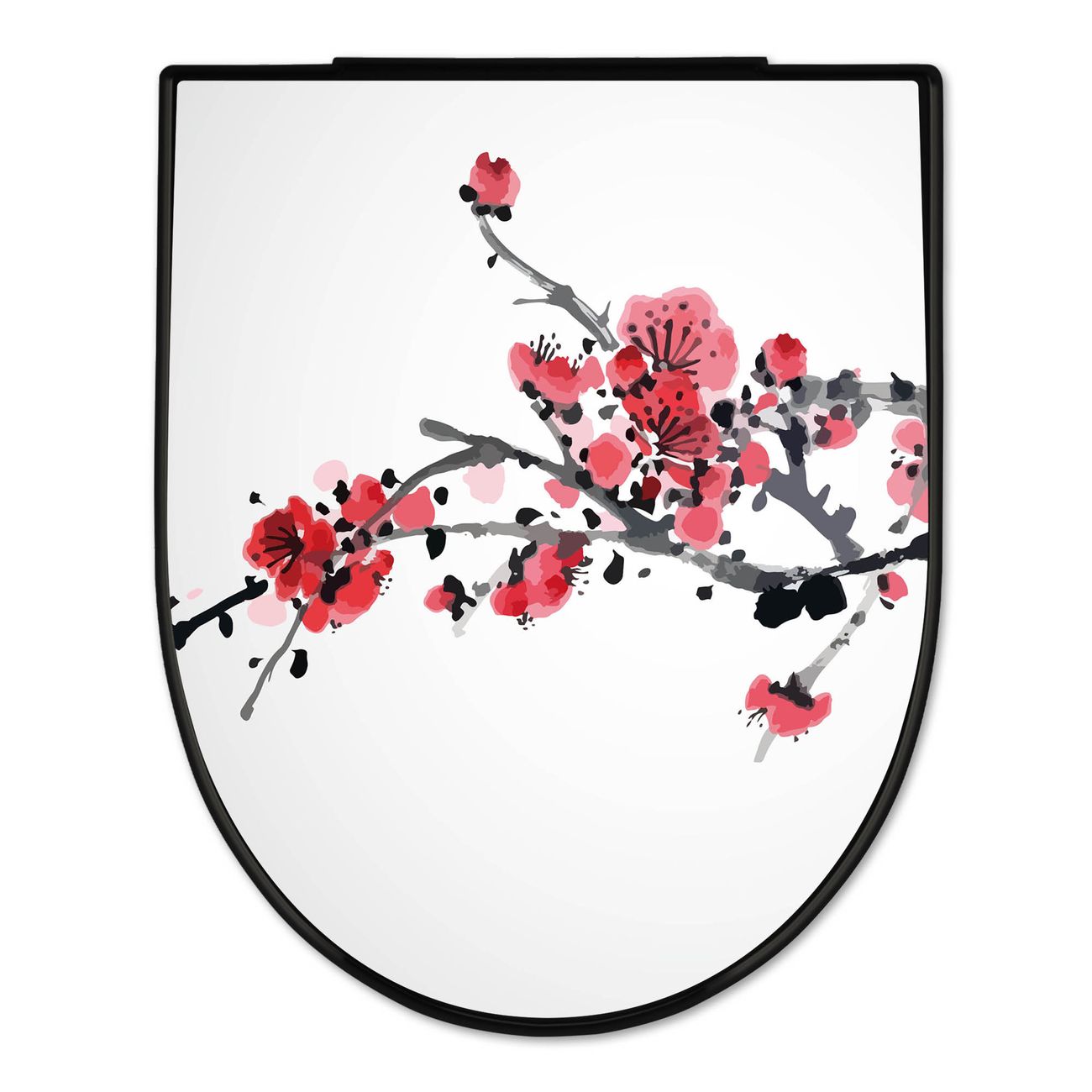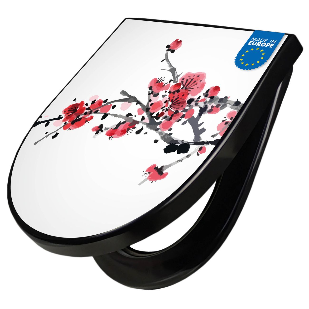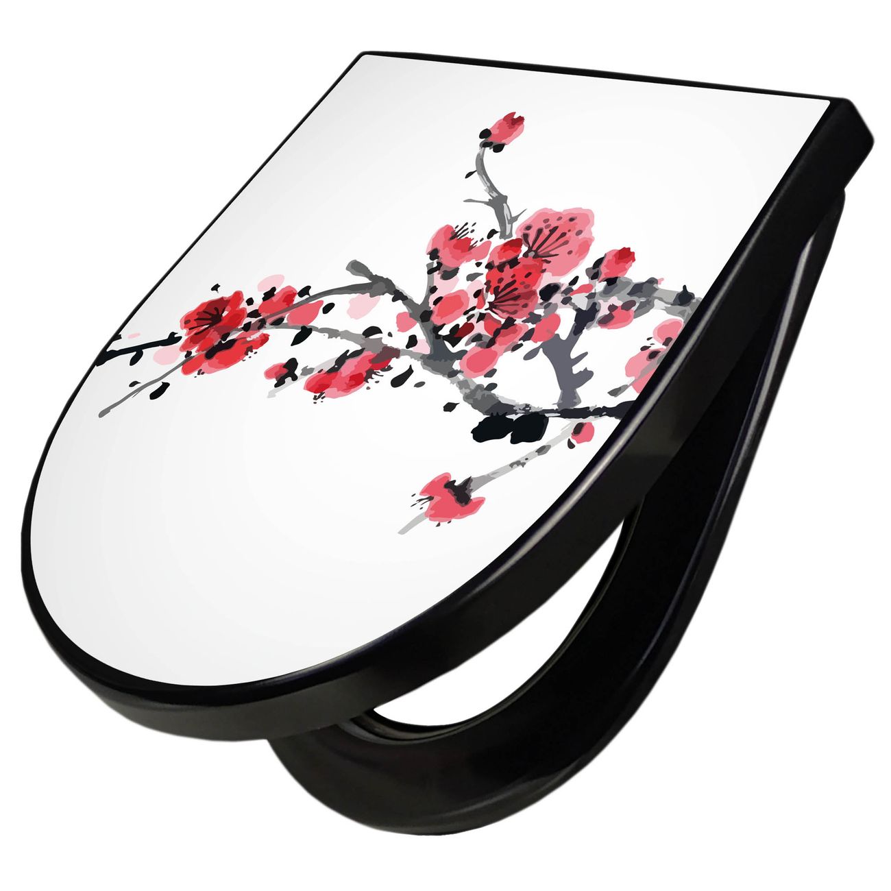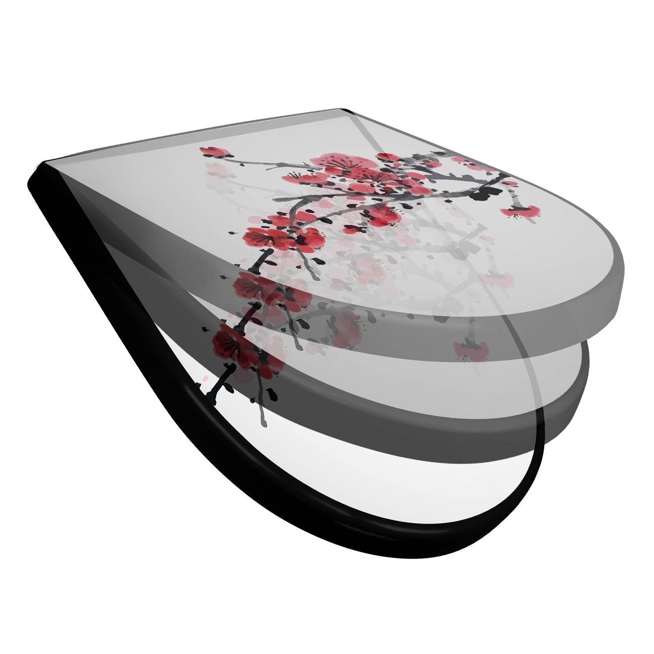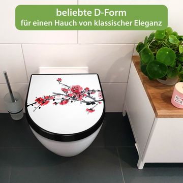 WC Sitz D-Form Schwarz mit Absenkautomatik Motiv Japanische Blüten 2