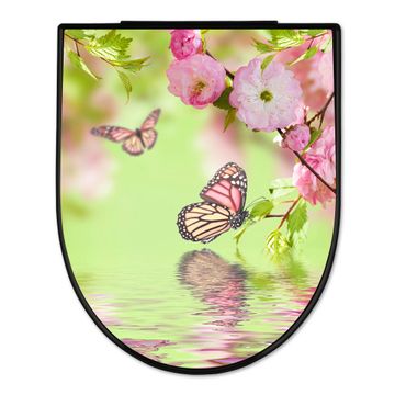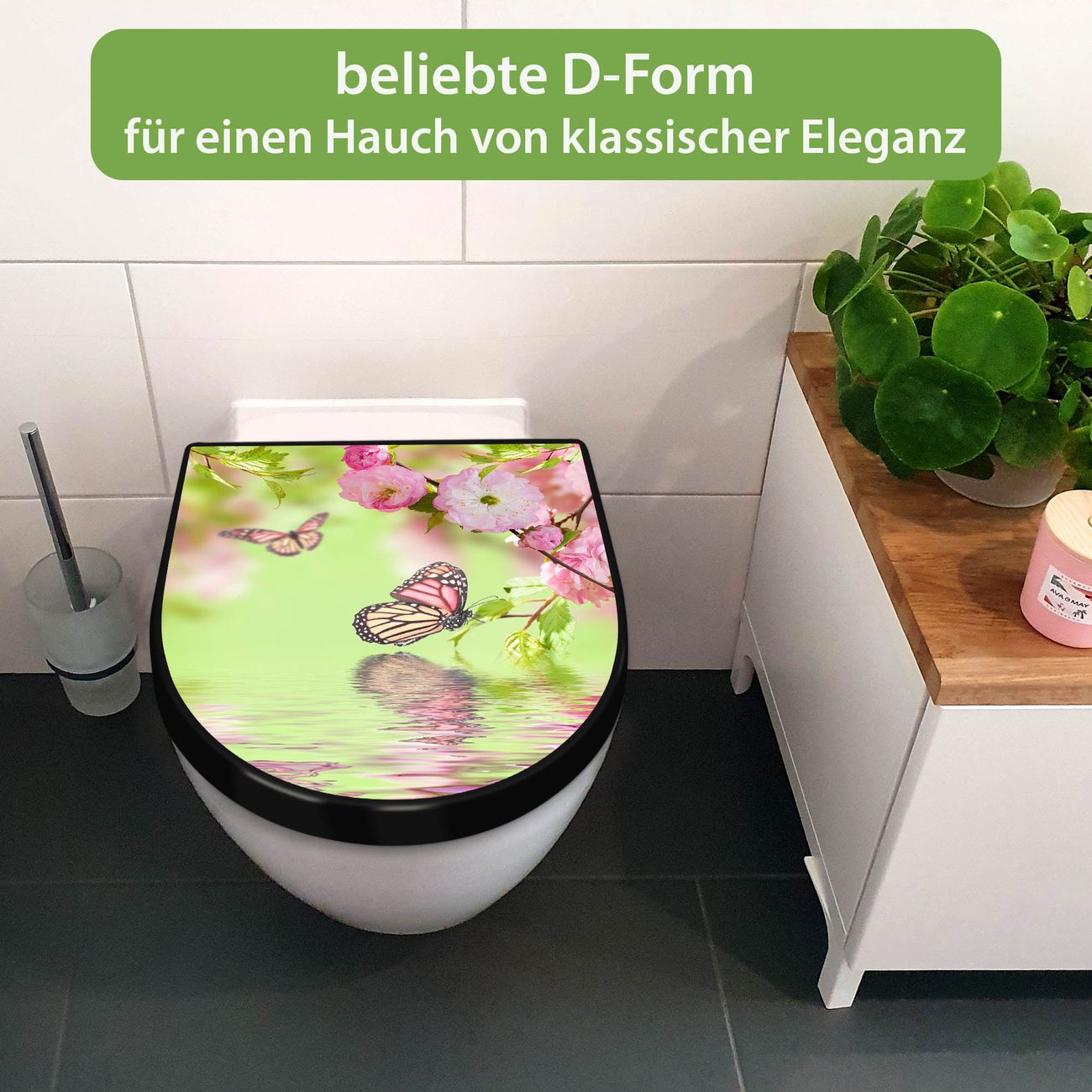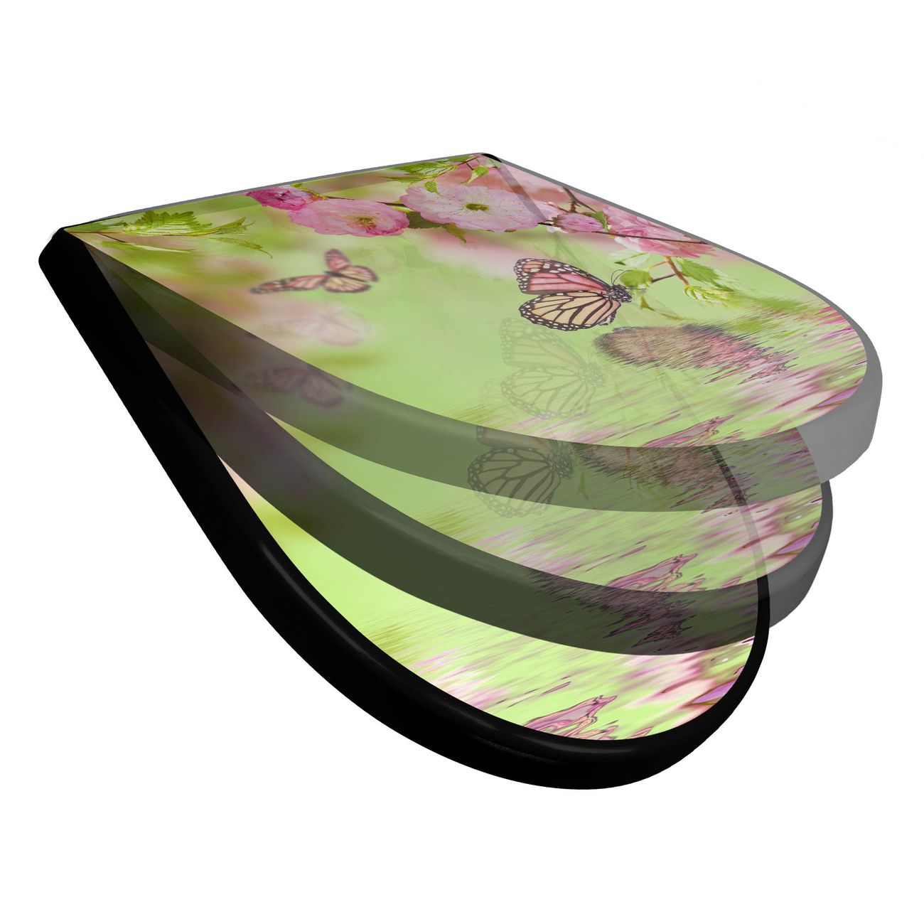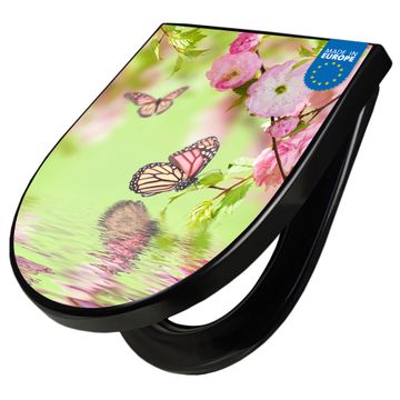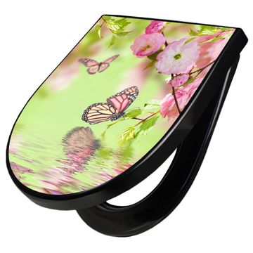 WC Sitz D-Form Schwarz mit Absenkautomatik Motiv Japanische Kirschblüte