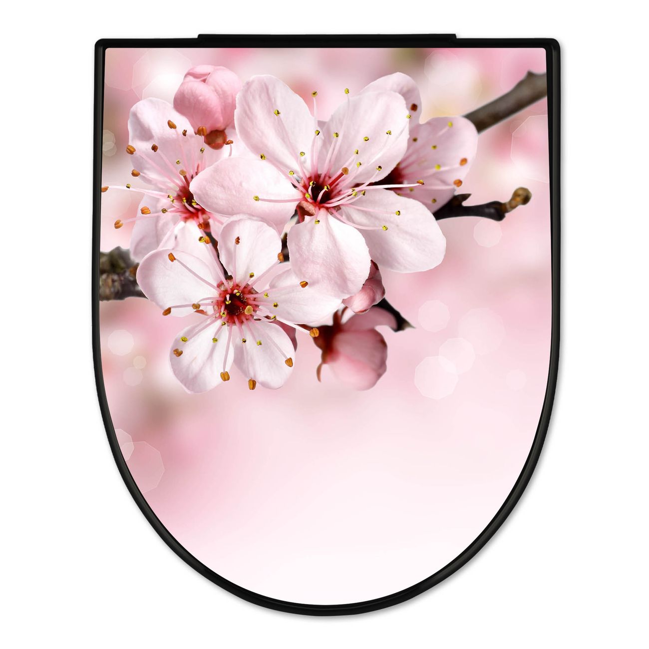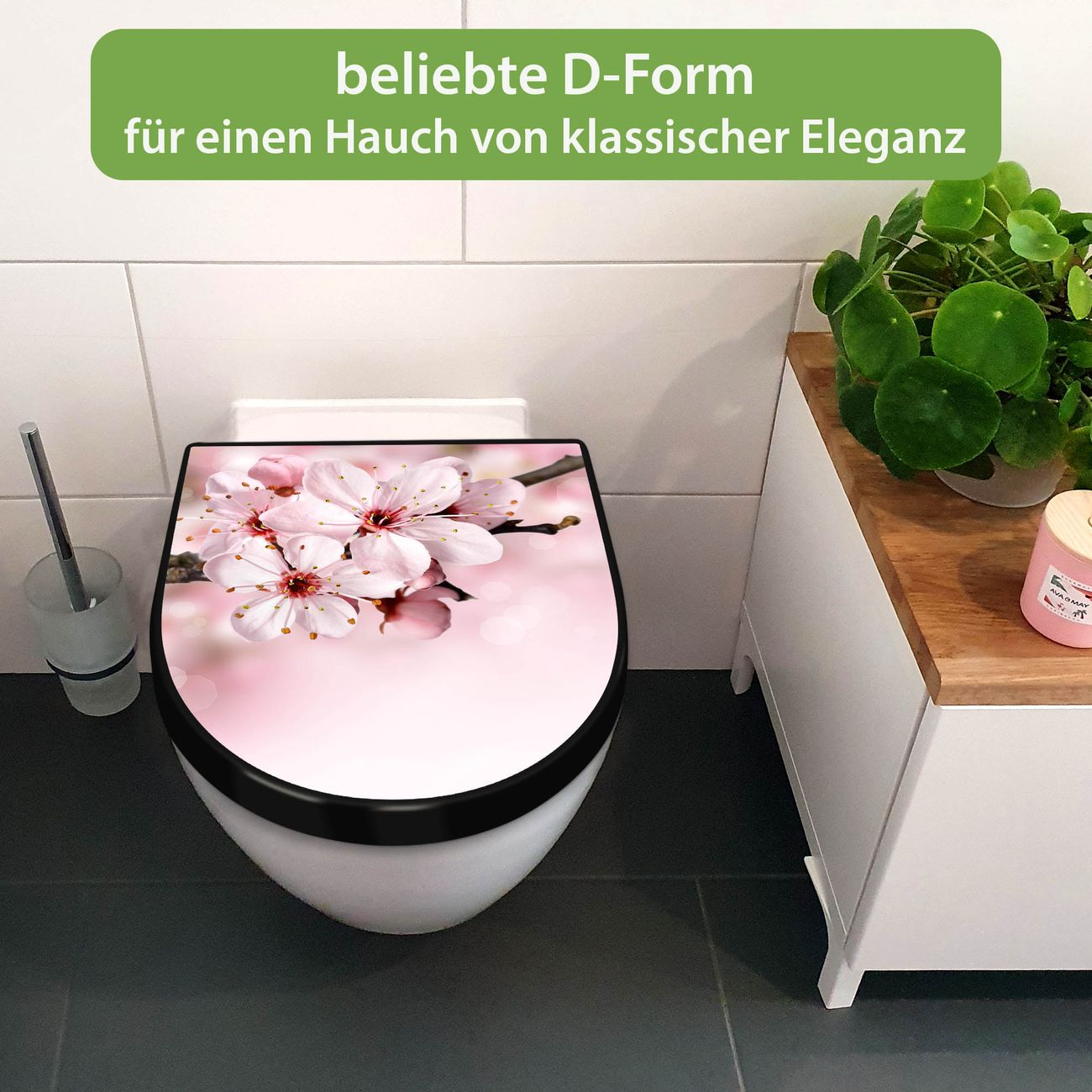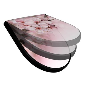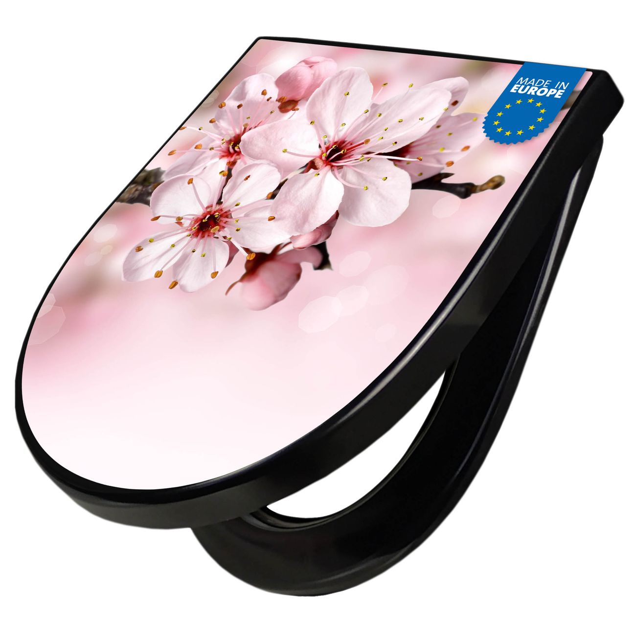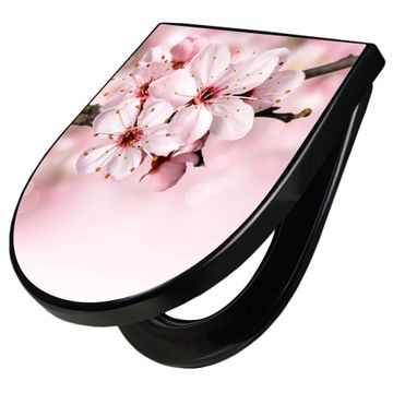 WC Sitz D-Form Schwarz mit Absenkautomatik Motiv Japanische Kirsche