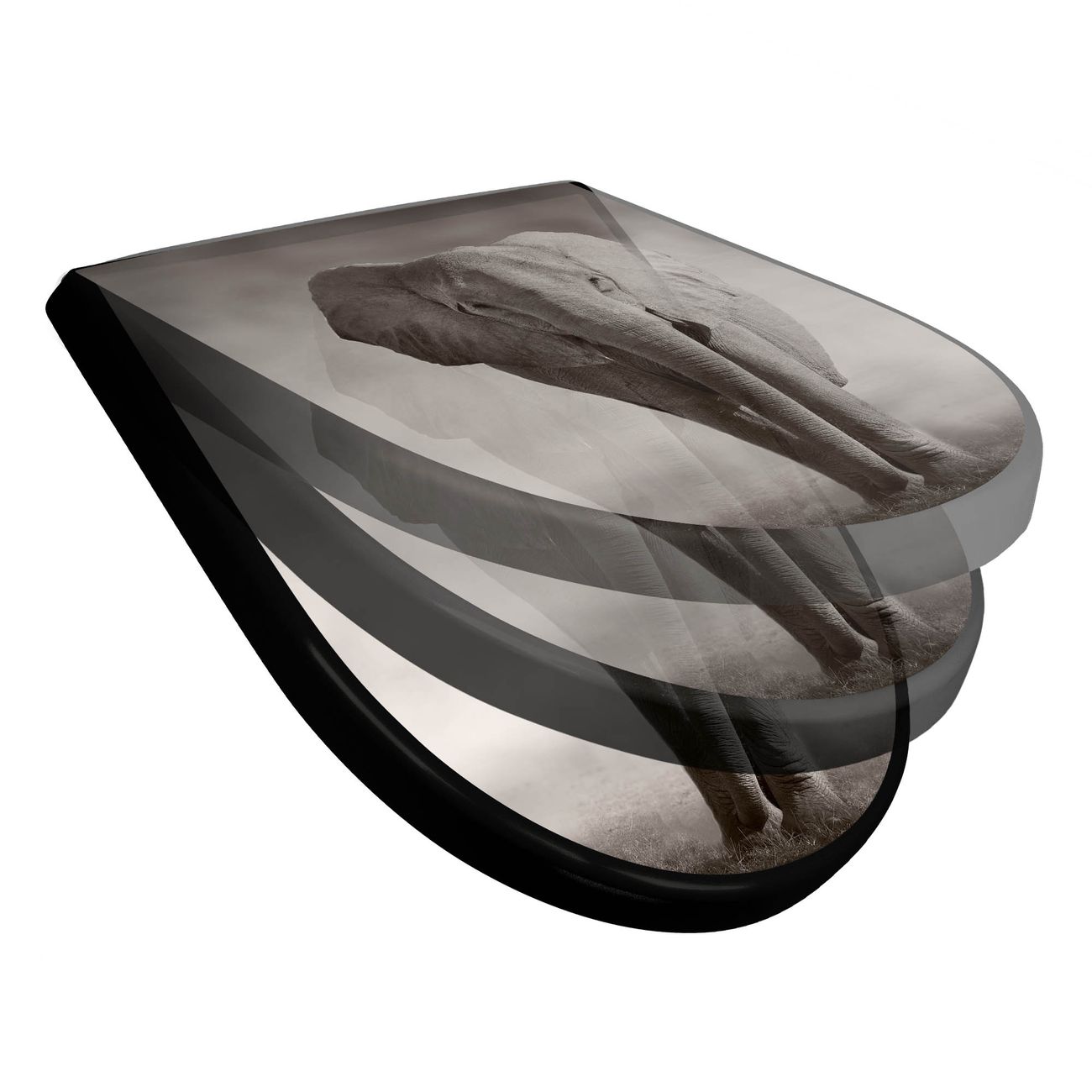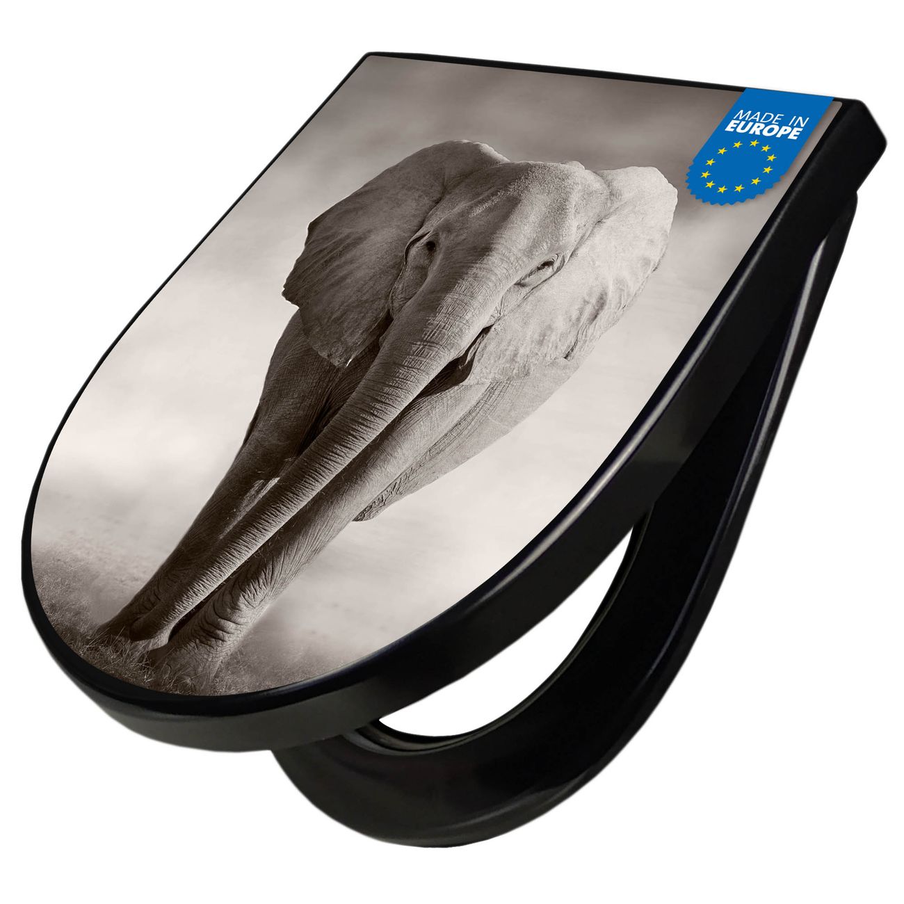 WC Sitz D-Form Schwarz mit Absenkautomatik Motiv Joseline