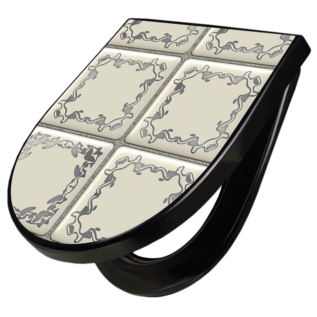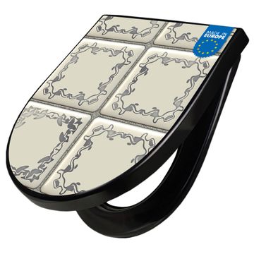 WC Sitz D-Form Schwarz mit Absenkautomatik Motiv Kacheln