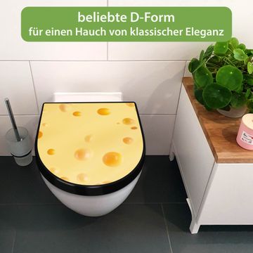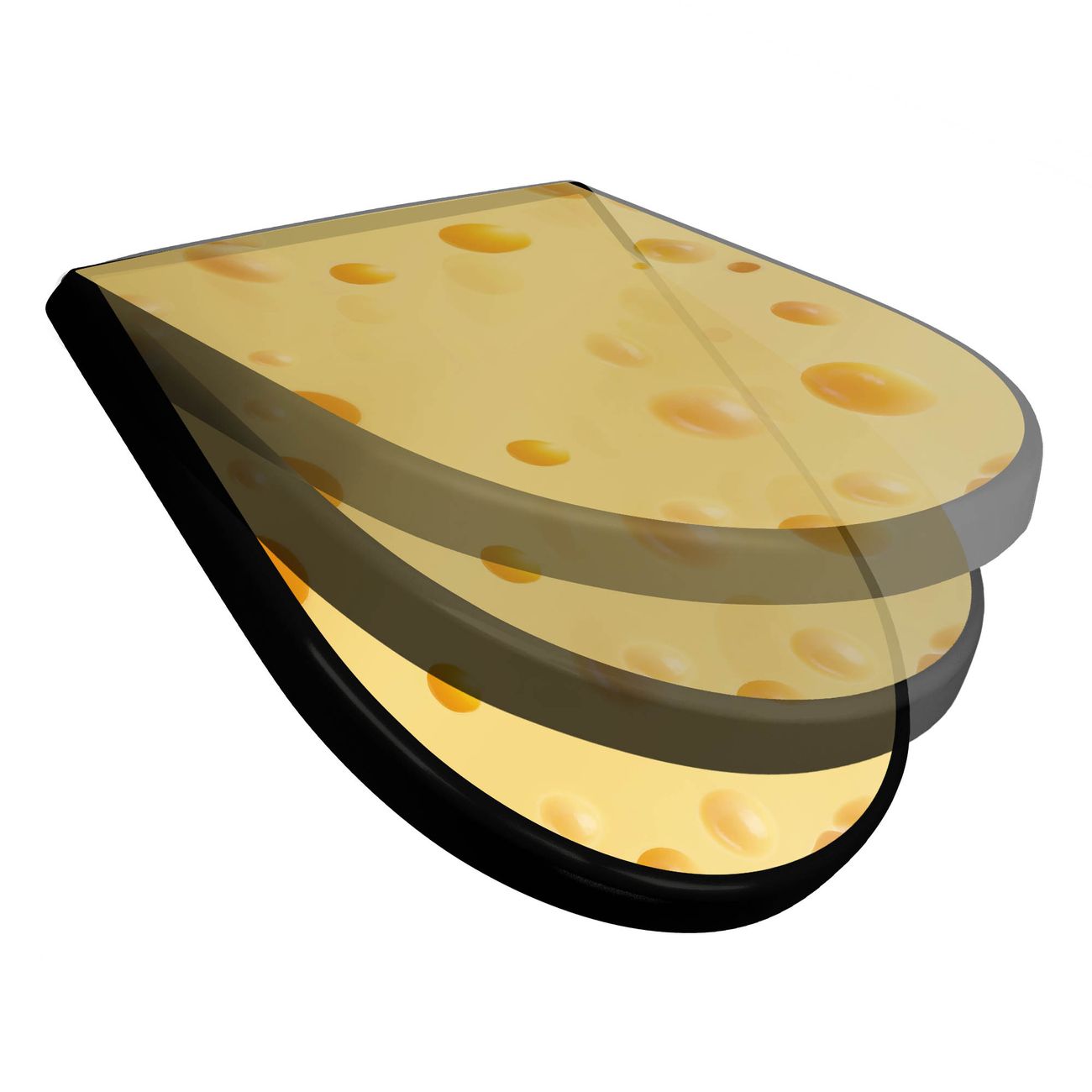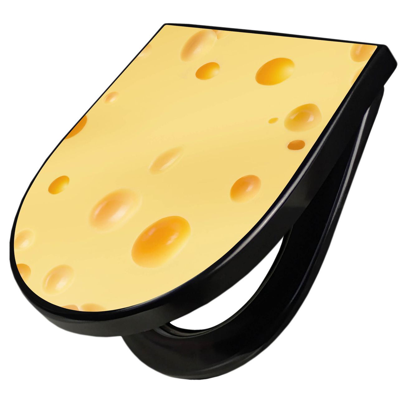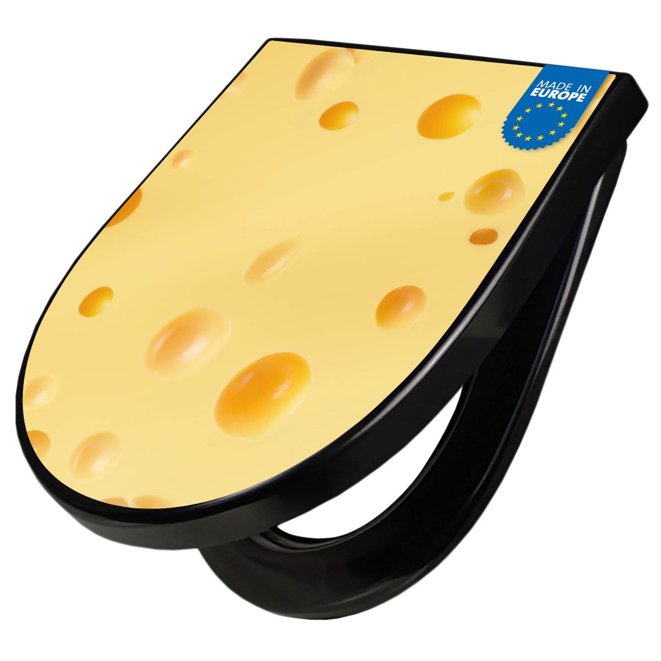 WC Sitz D-Form Schwarz mit Absenkautomatik Motiv Käse