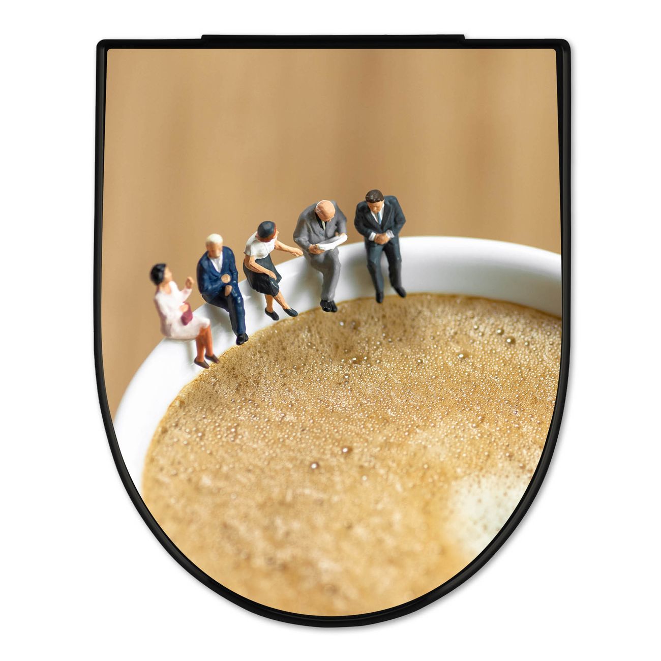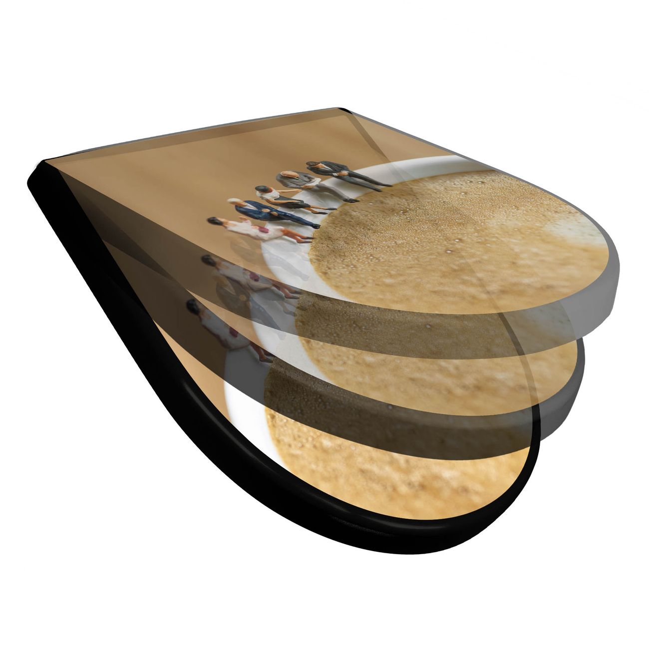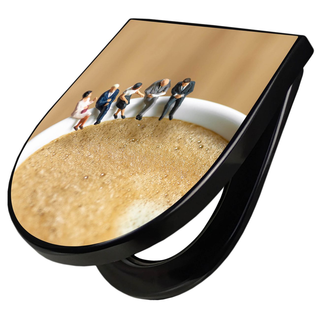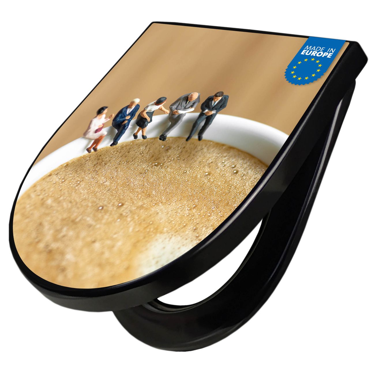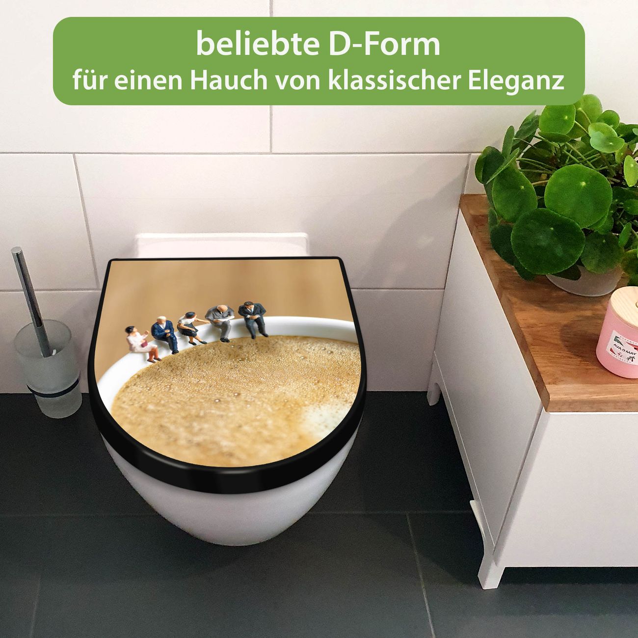 WC Sitz D-Form Schwarz mit Absenkautomatik Motiv Kaffeepause