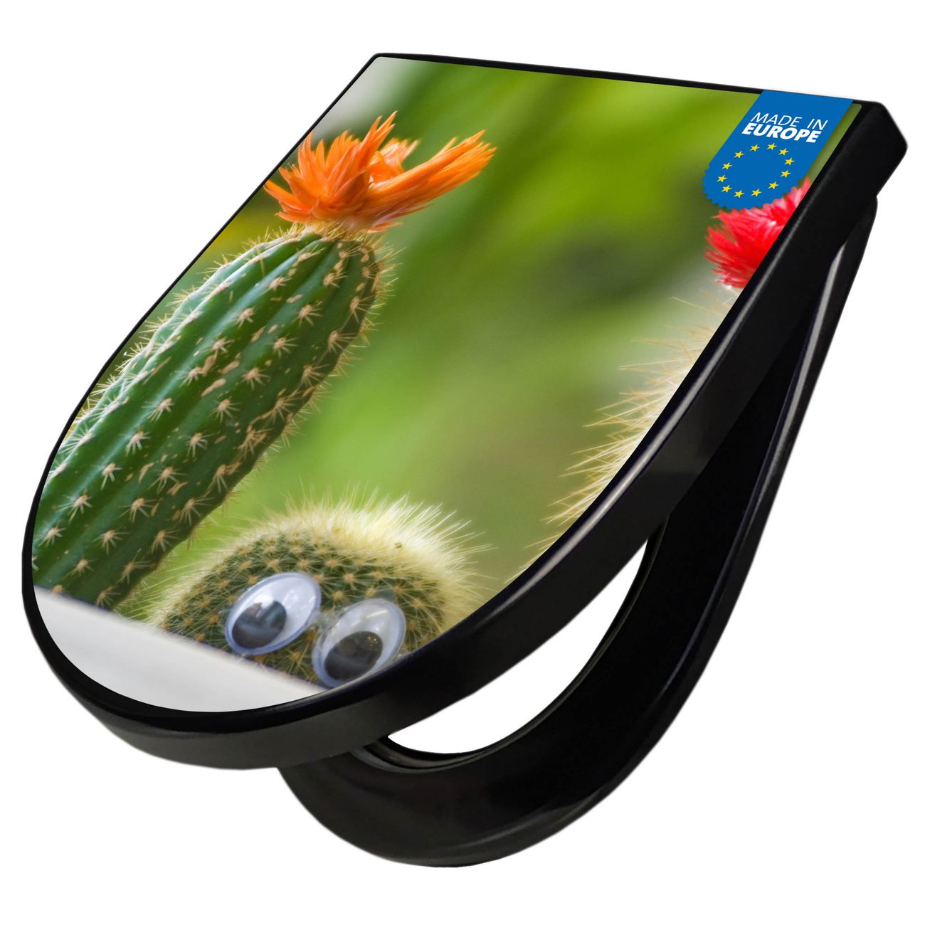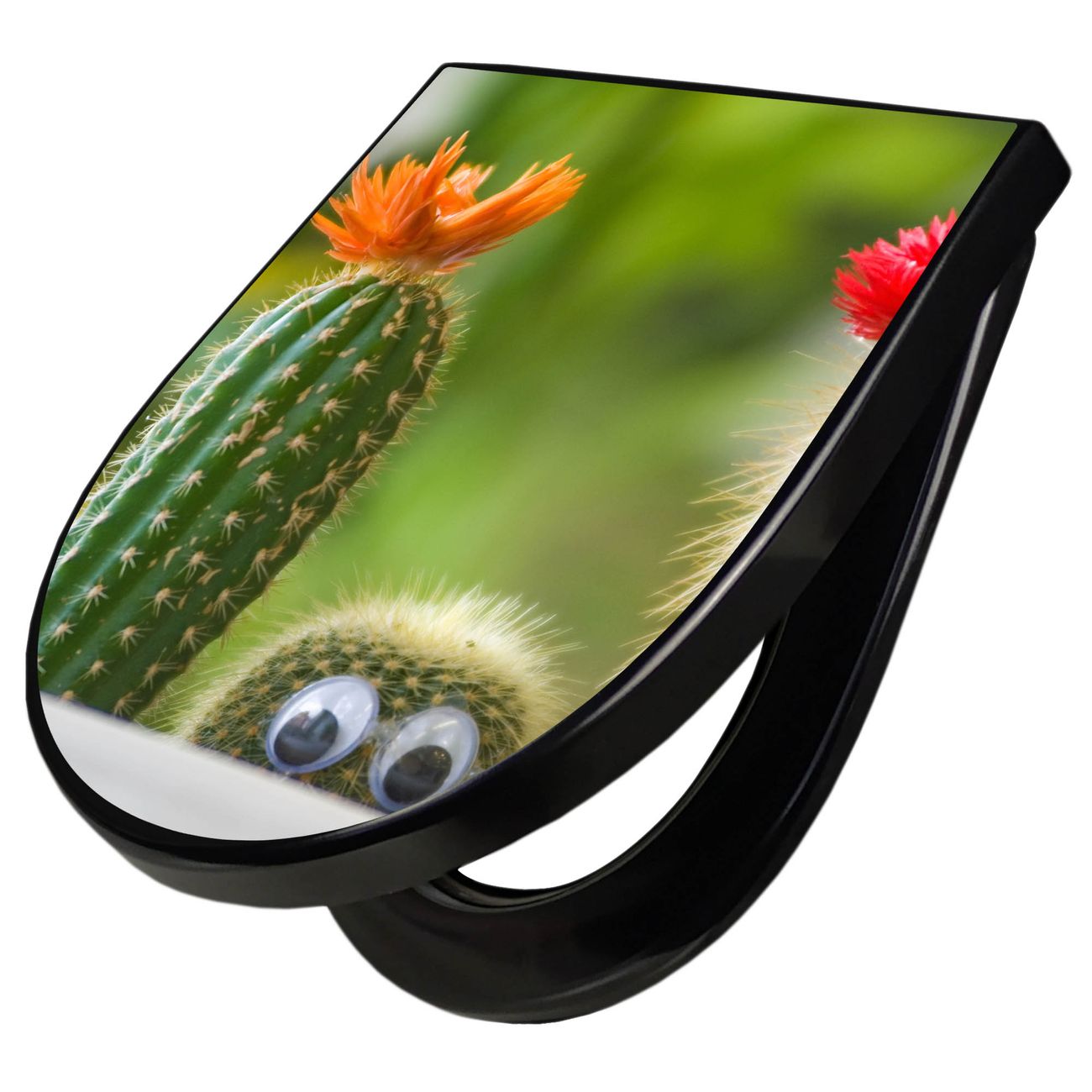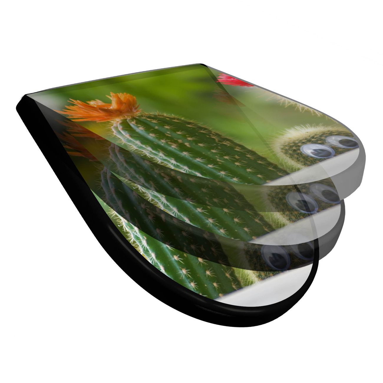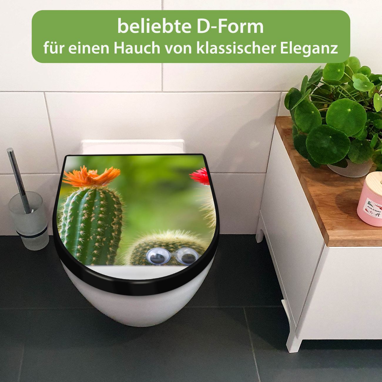 WC Sitz D-Form Schwarz mit Absenkautomatik Motiv Kakteen