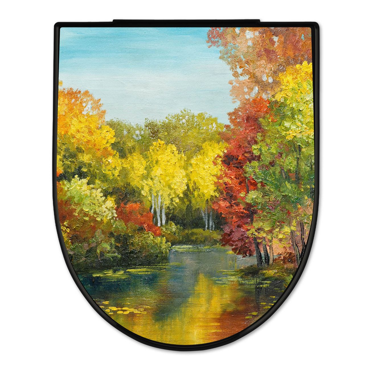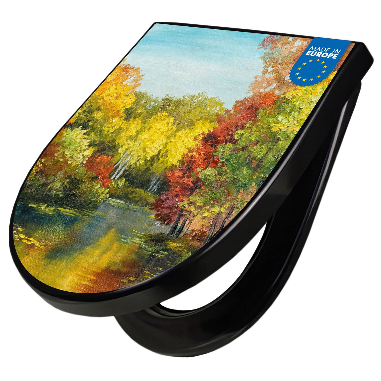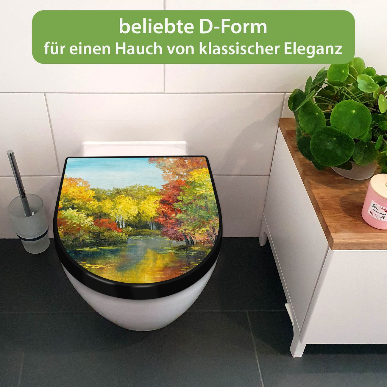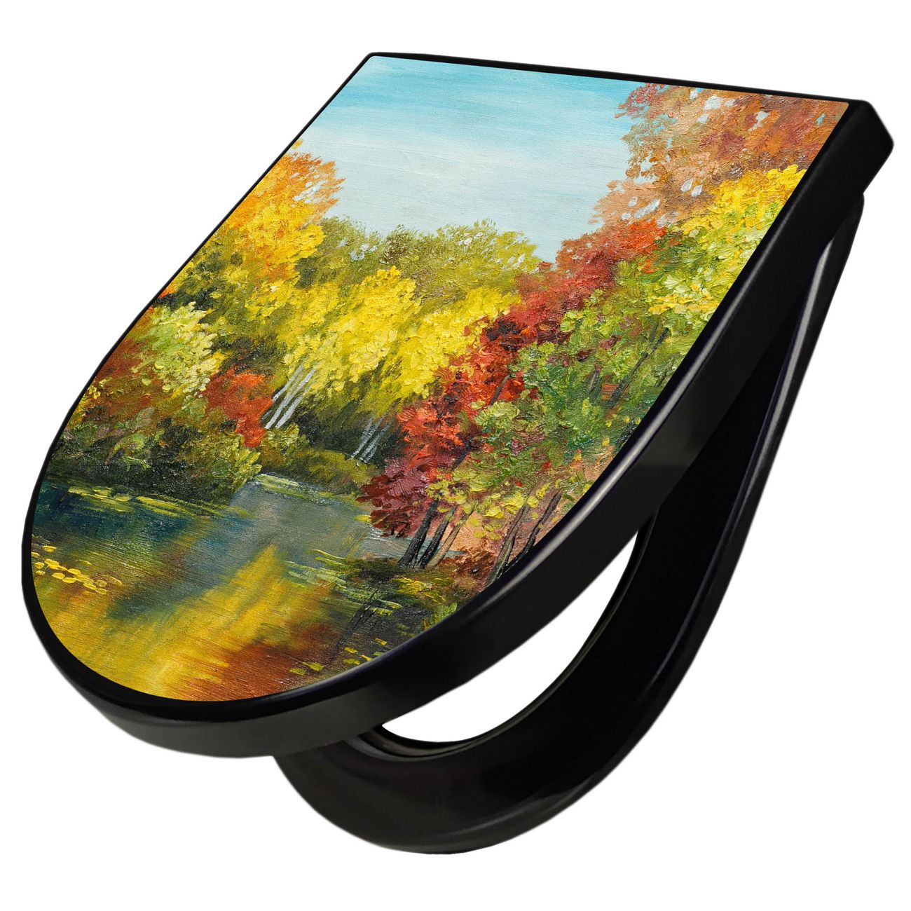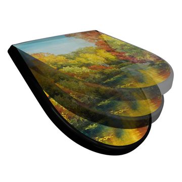 WC Sitz D-Form Schwarz mit Absenkautomatik Motiv Kanal Im Herbst