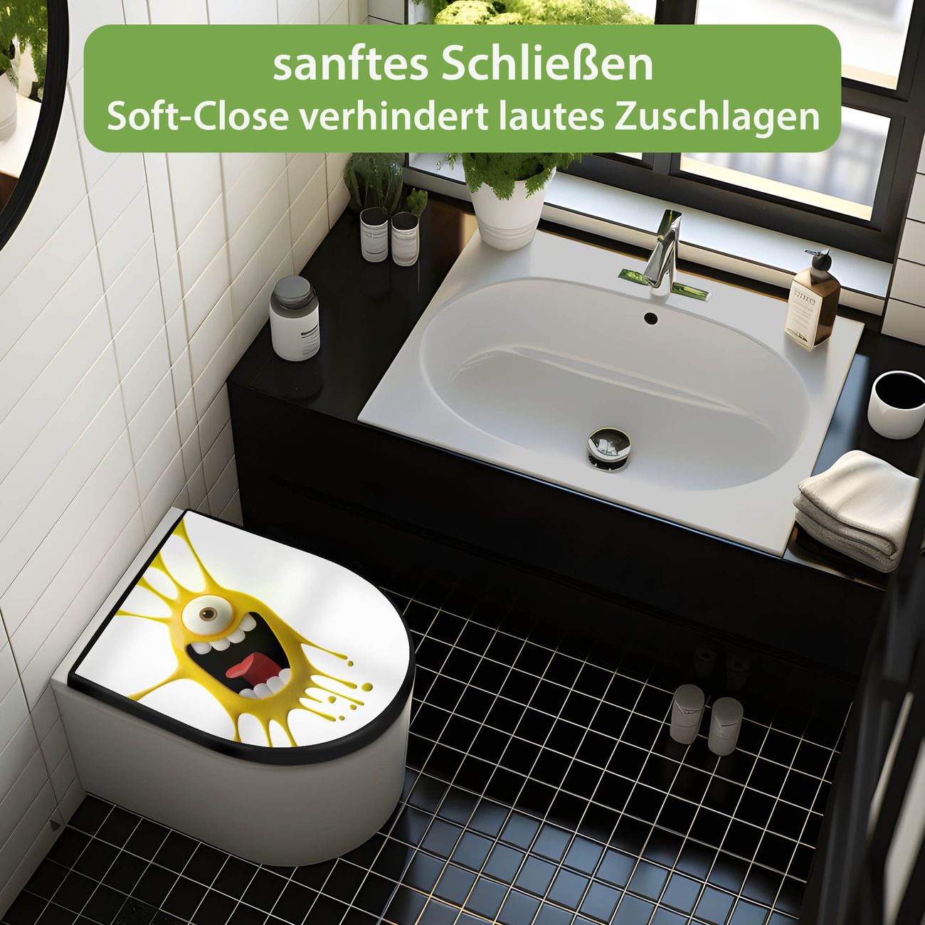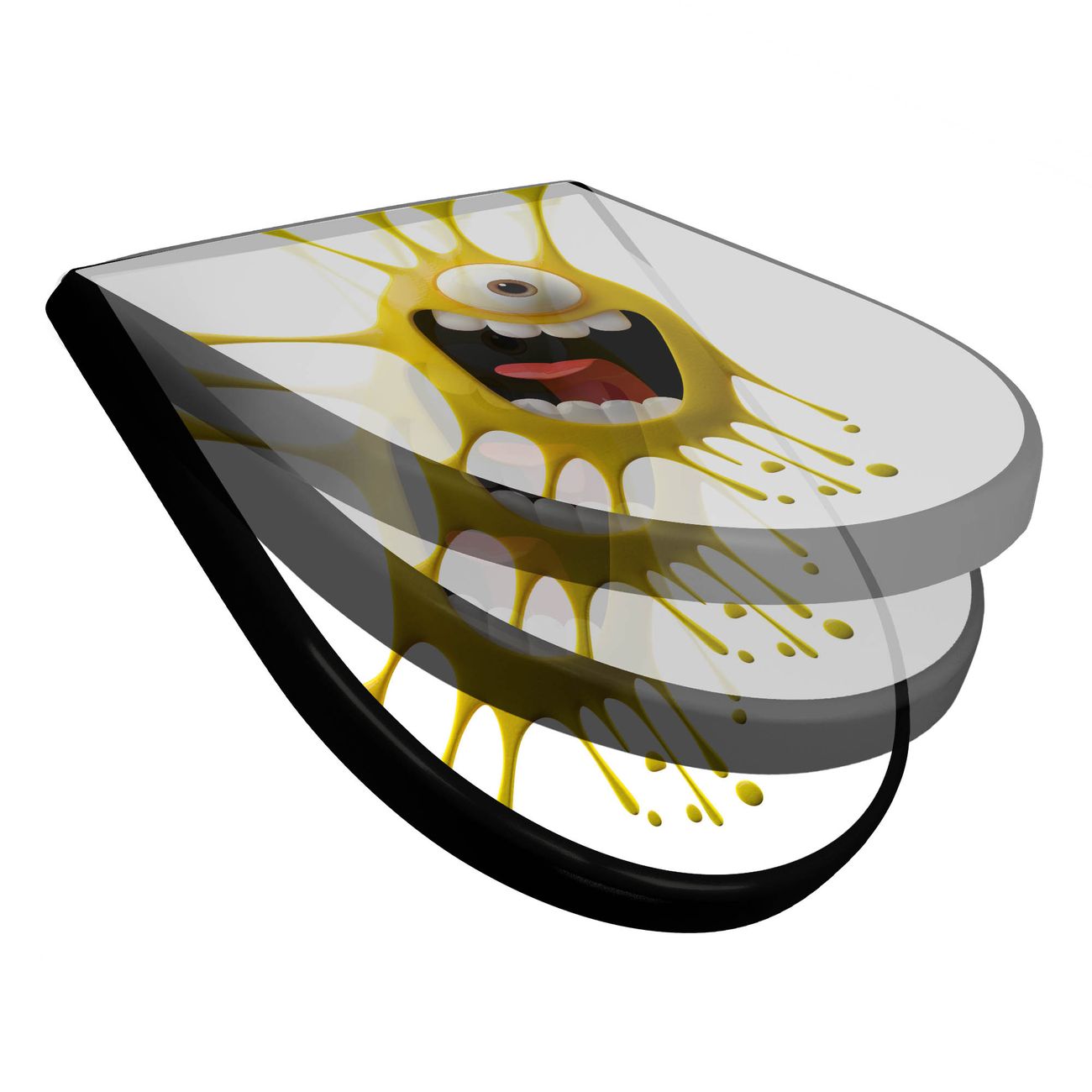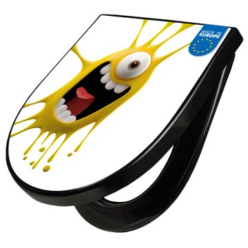 WC Sitz D-Form Schwarz mit Absenkautomatik Motiv Karl Splash