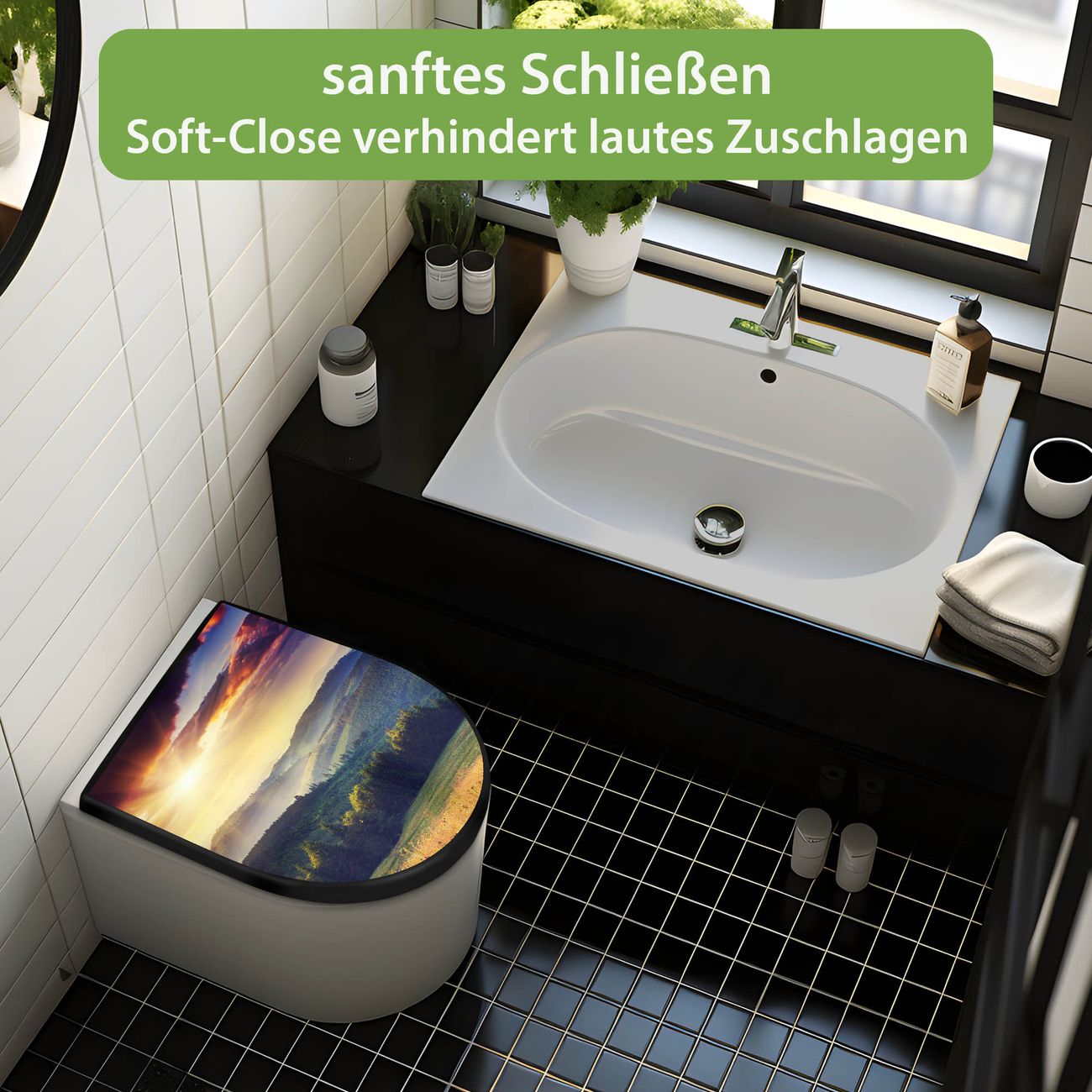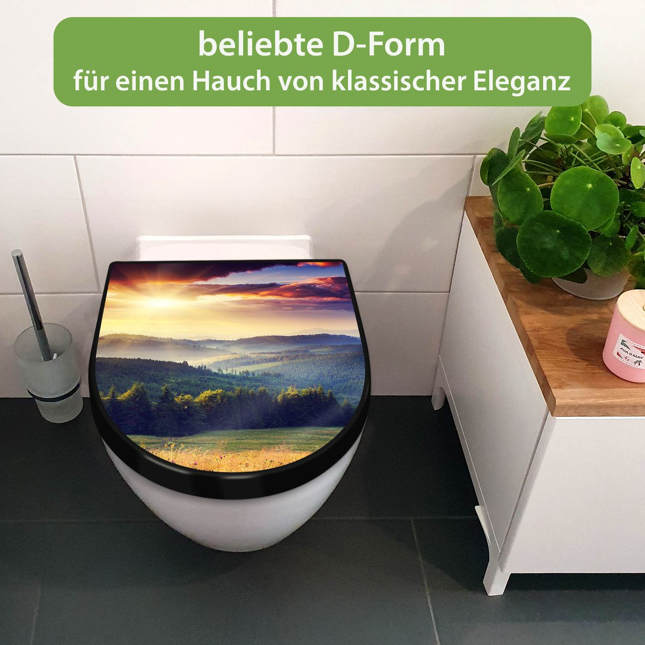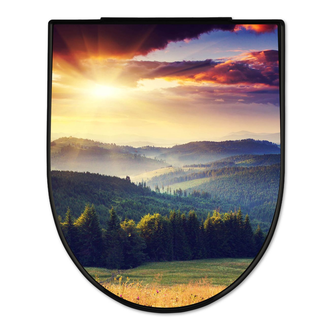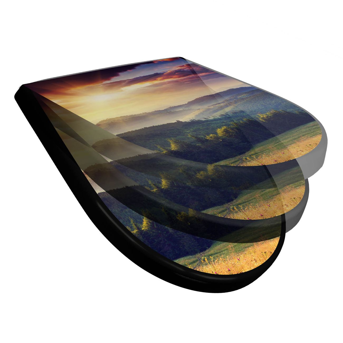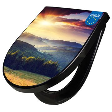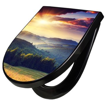 WC Sitz D-Form Schwarz mit Absenkautomatik Motiv Karpaten Sonnenuntergang