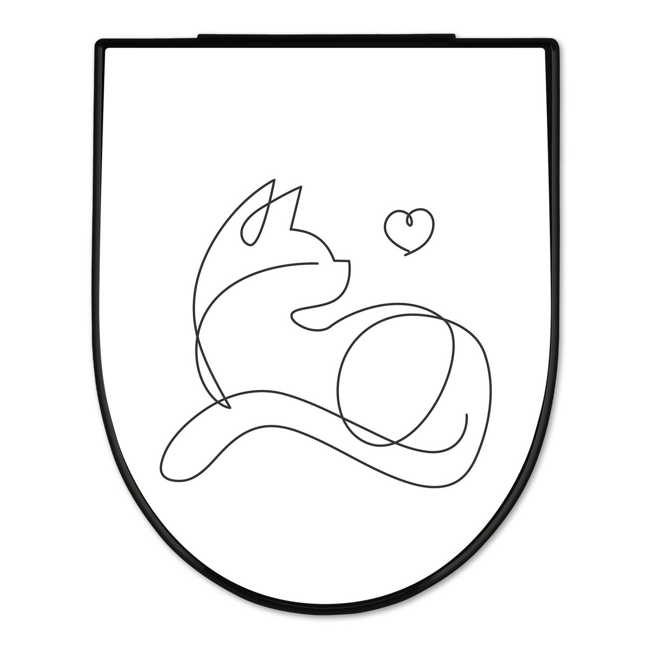 WC Sitz D-Form Schwarz mit Absenkautomatik Motiv Katze Lineart