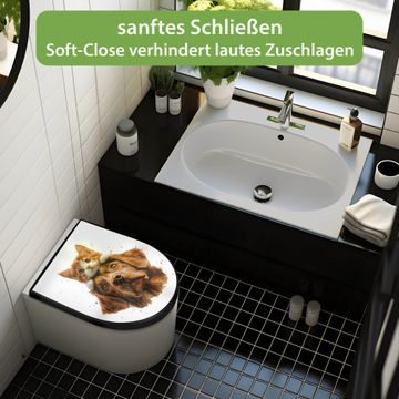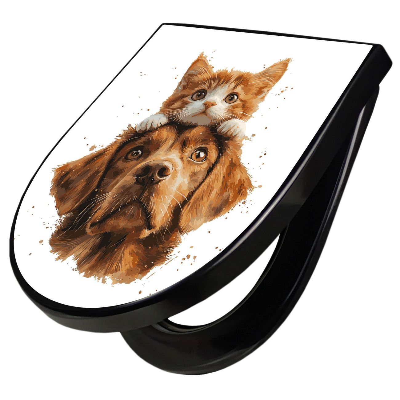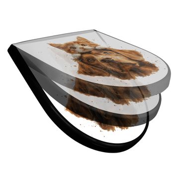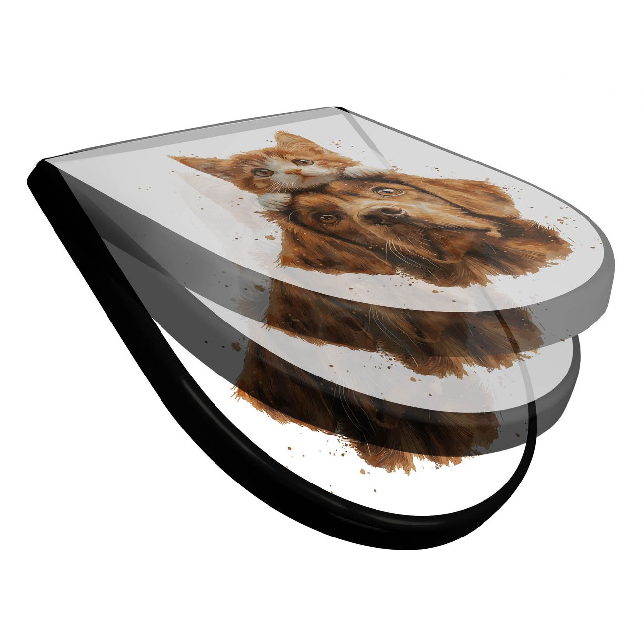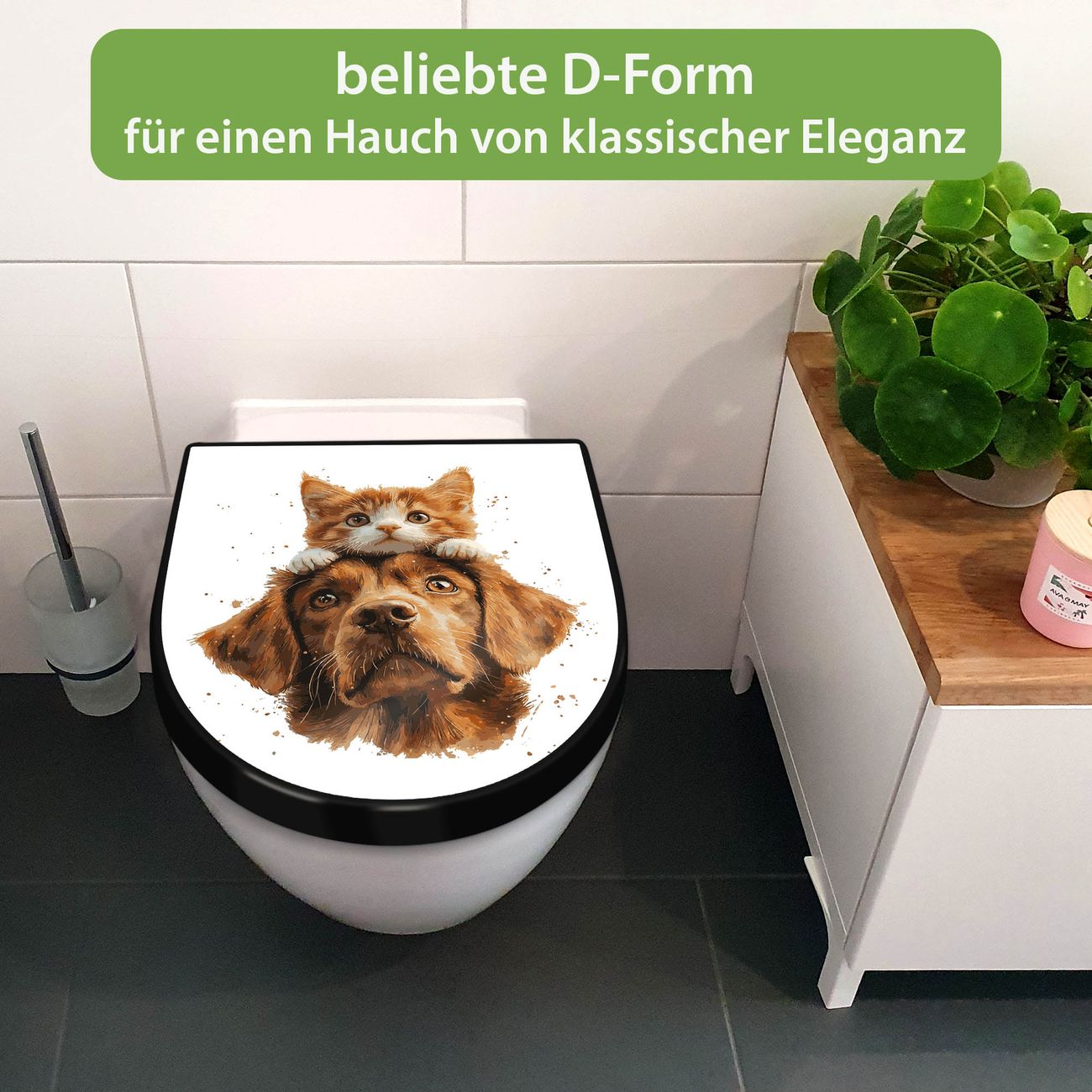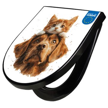 WC Sitz D-Form Schwarz mit Absenkautomatik Motiv Katzen- und Hundefreunde