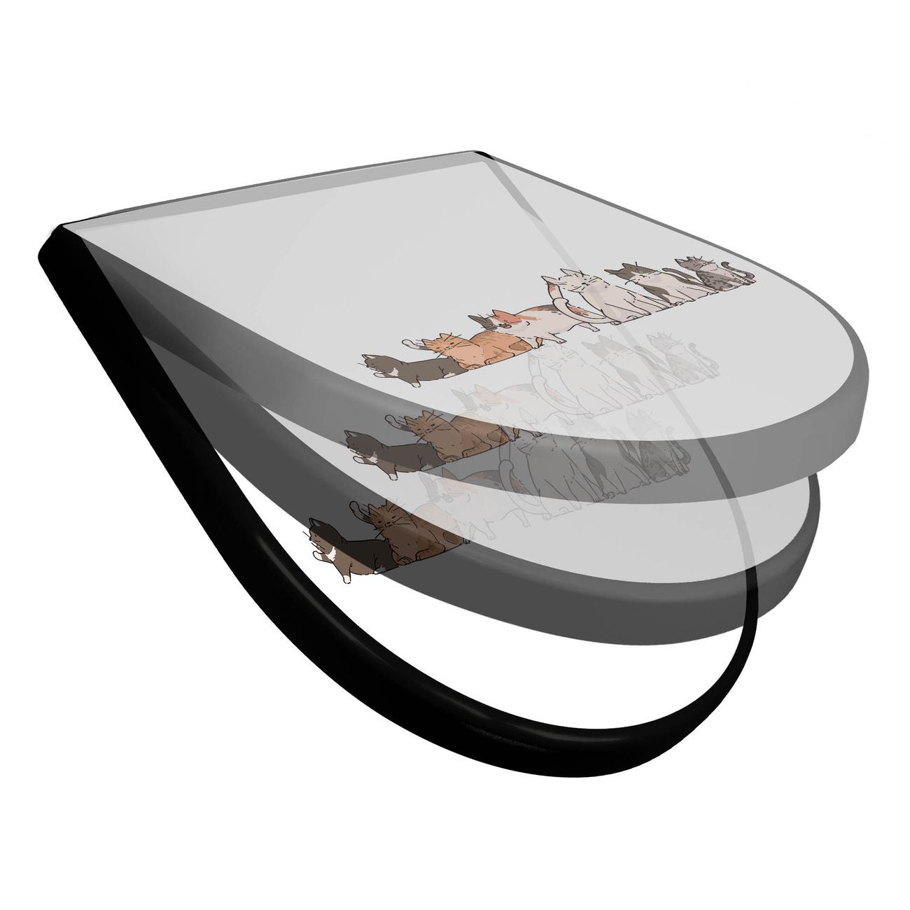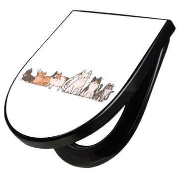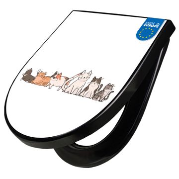 WC Sitz D-Form Schwarz mit Absenkautomatik Motiv Katzengang