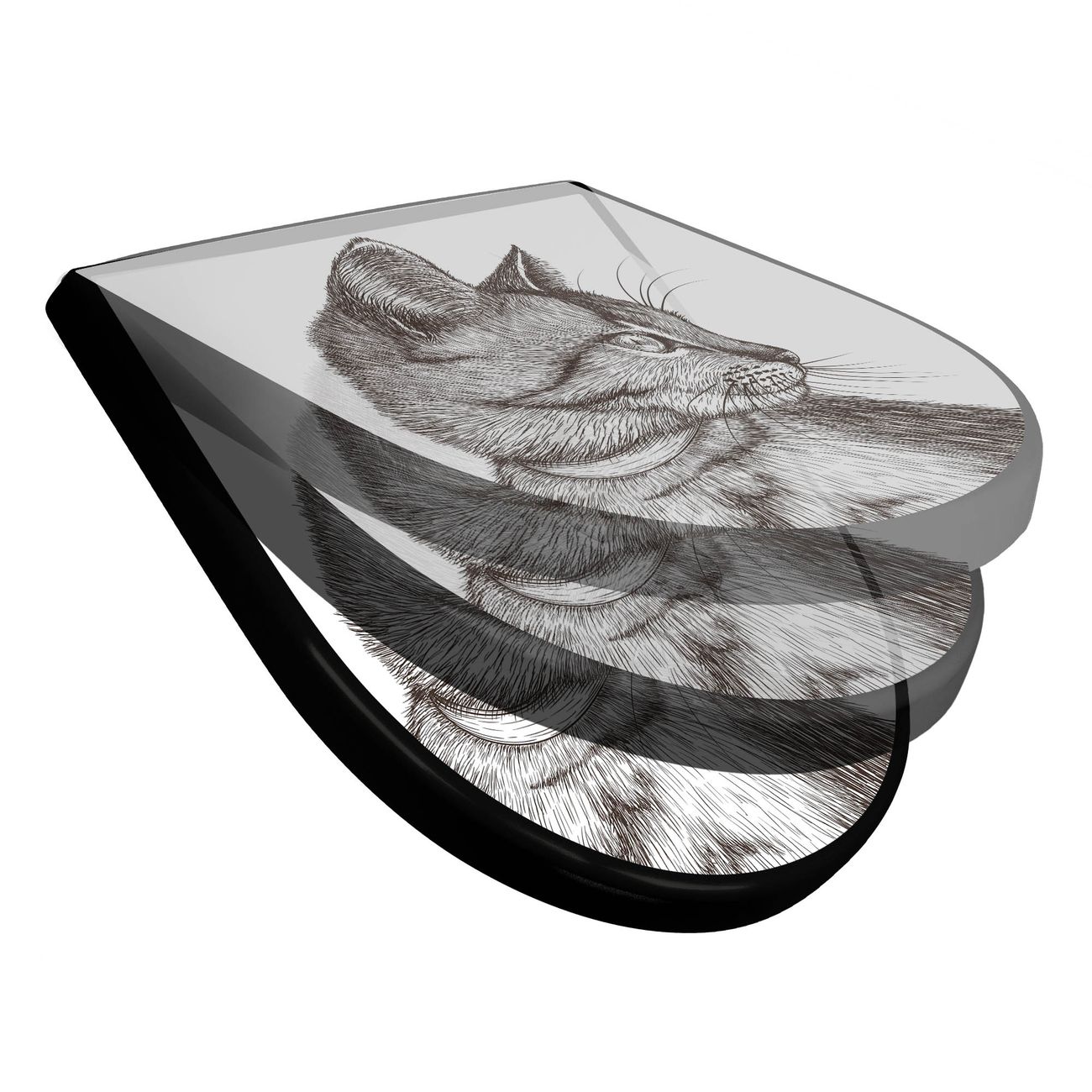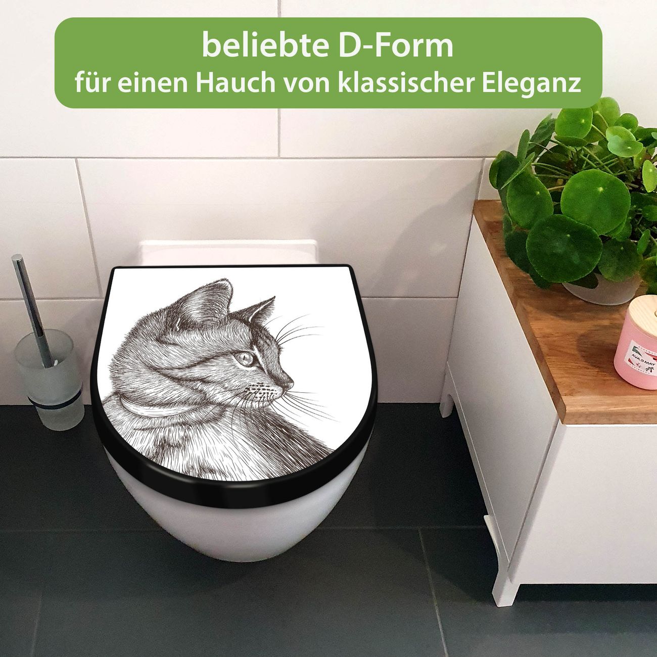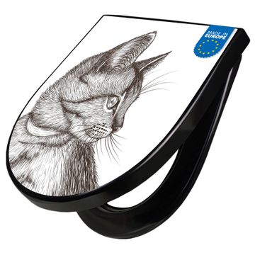 WC Sitz D-Form Schwarz mit Absenkautomatik Motiv Katzenillustration