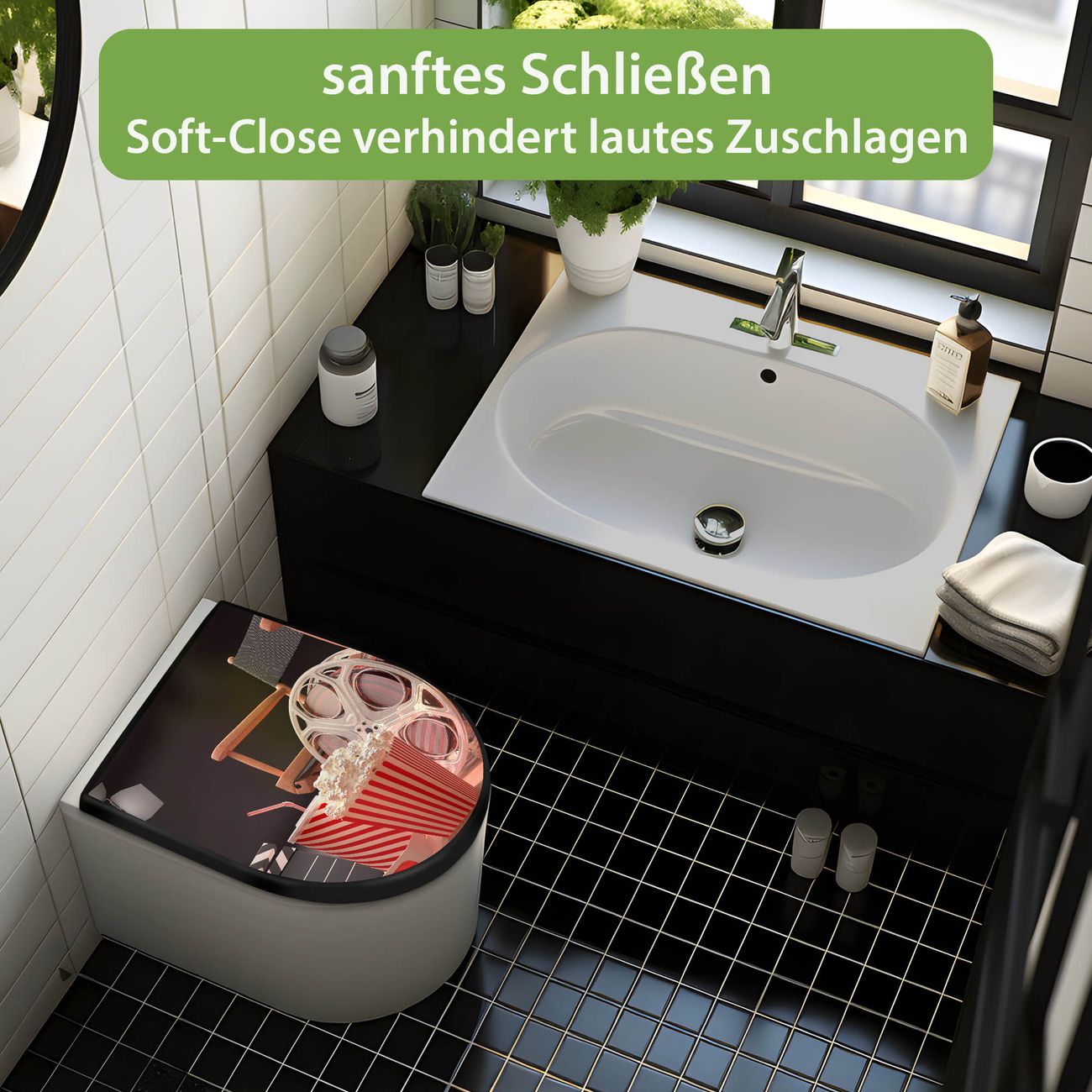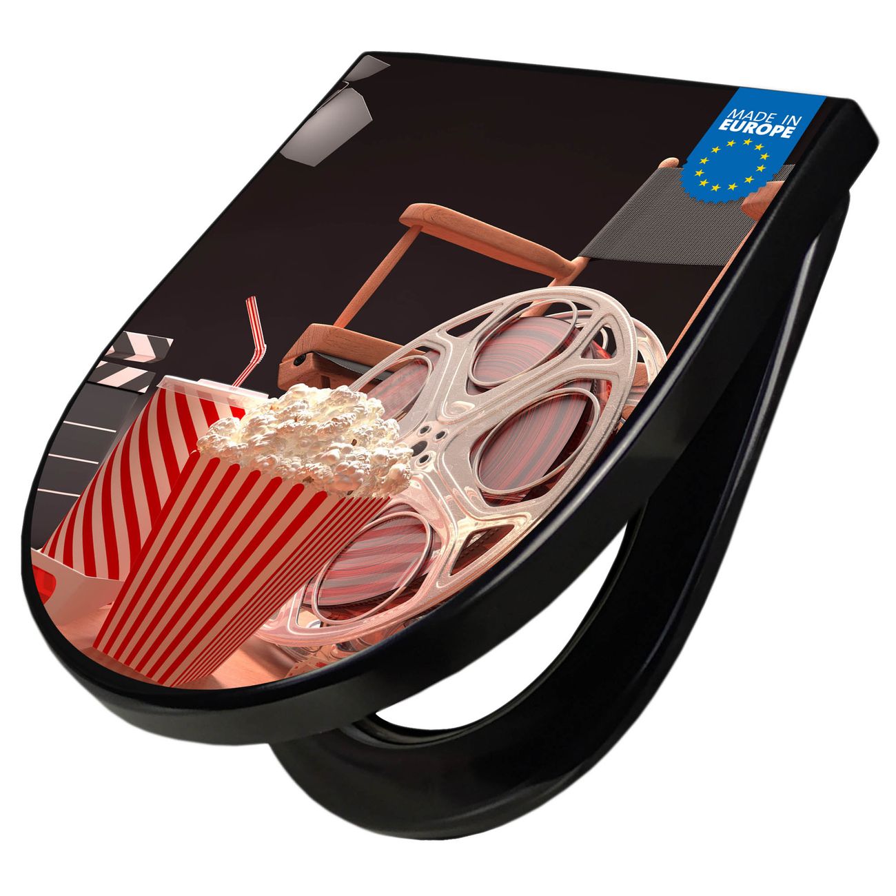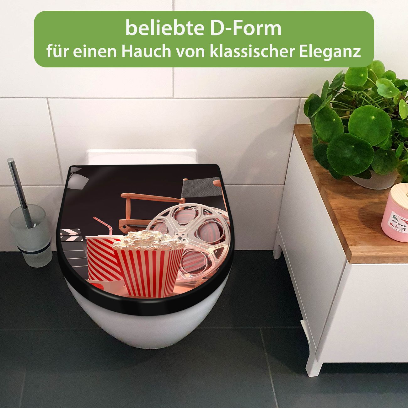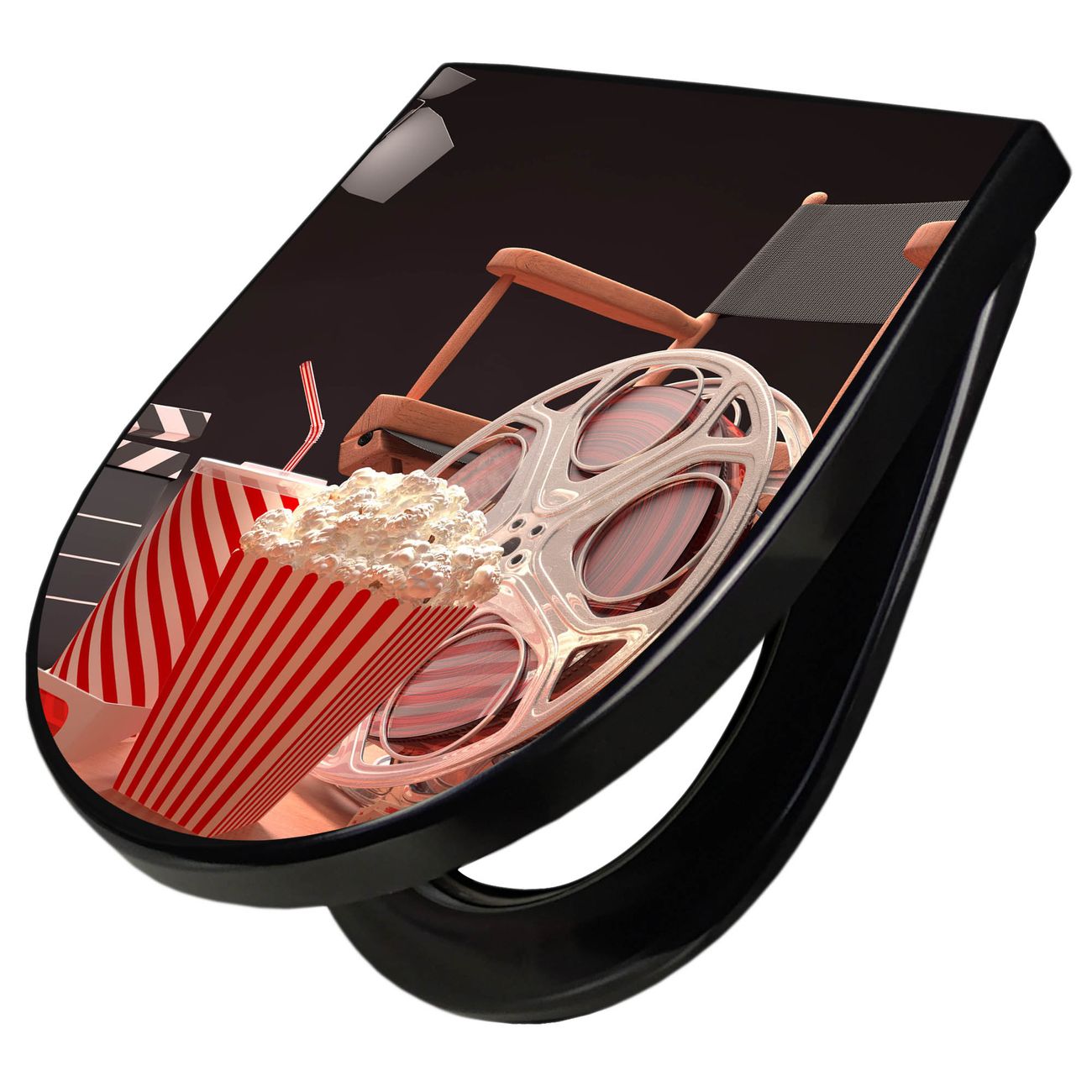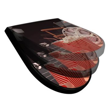WC Sitz D-Form Schwarz mit Absenkautomatik Motiv Kino
