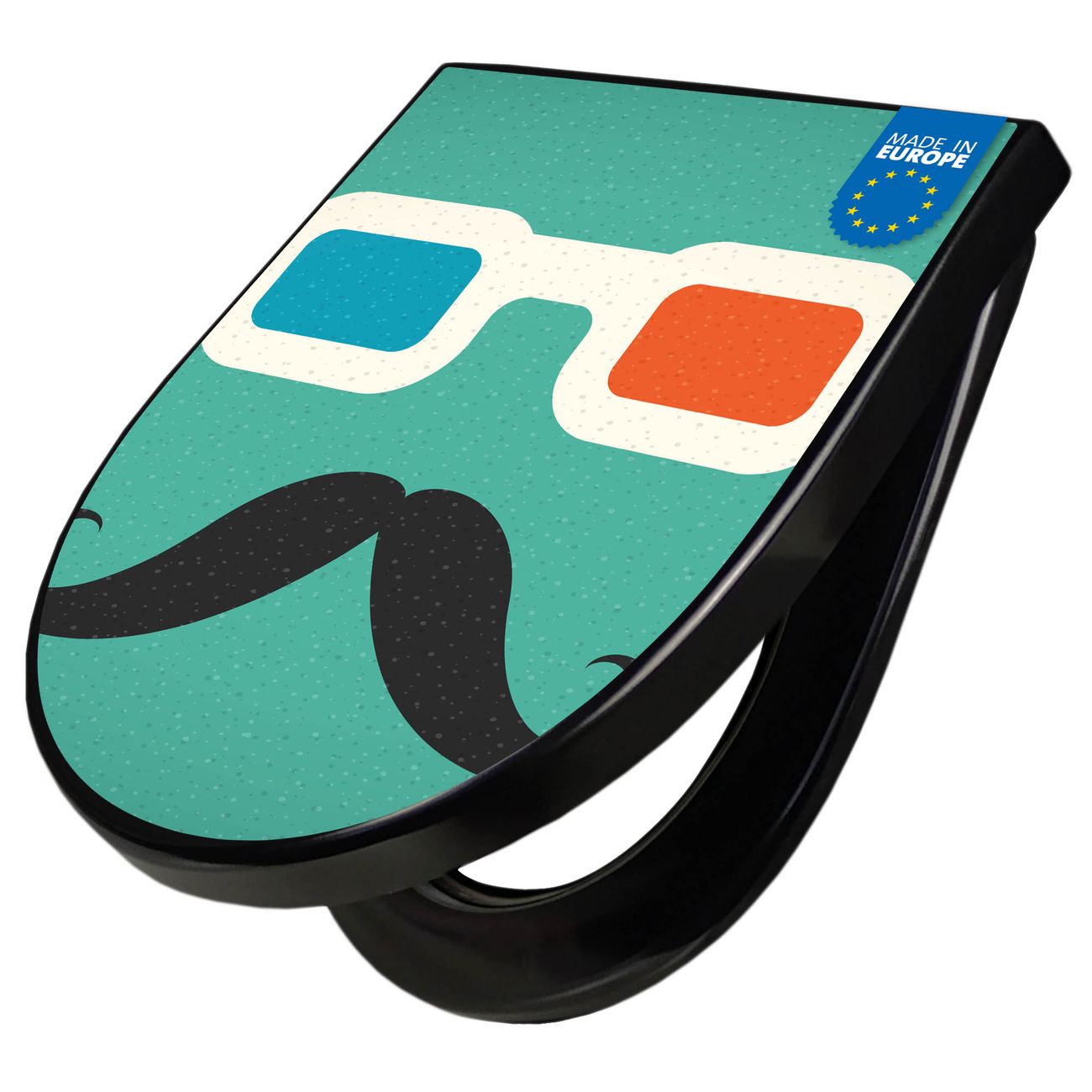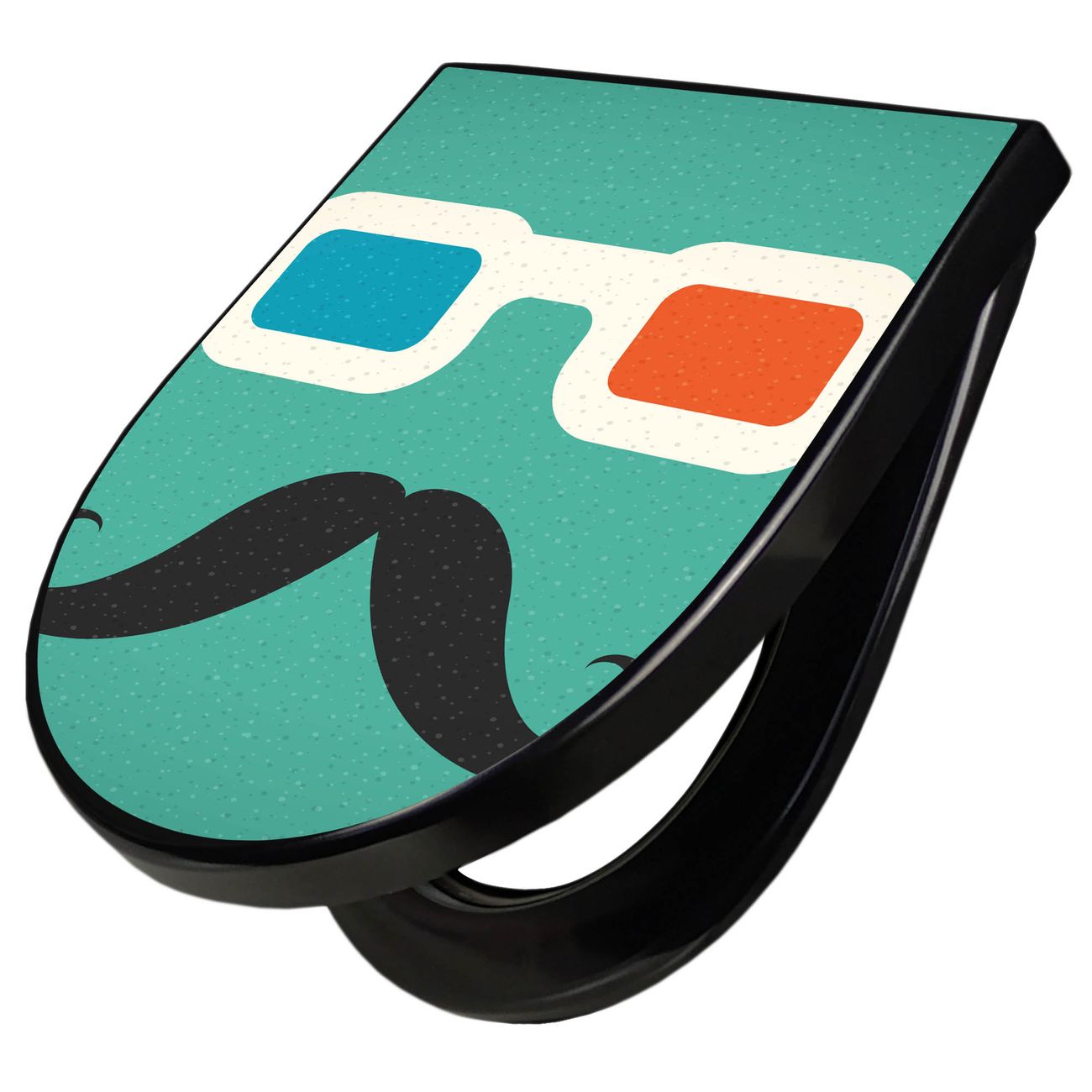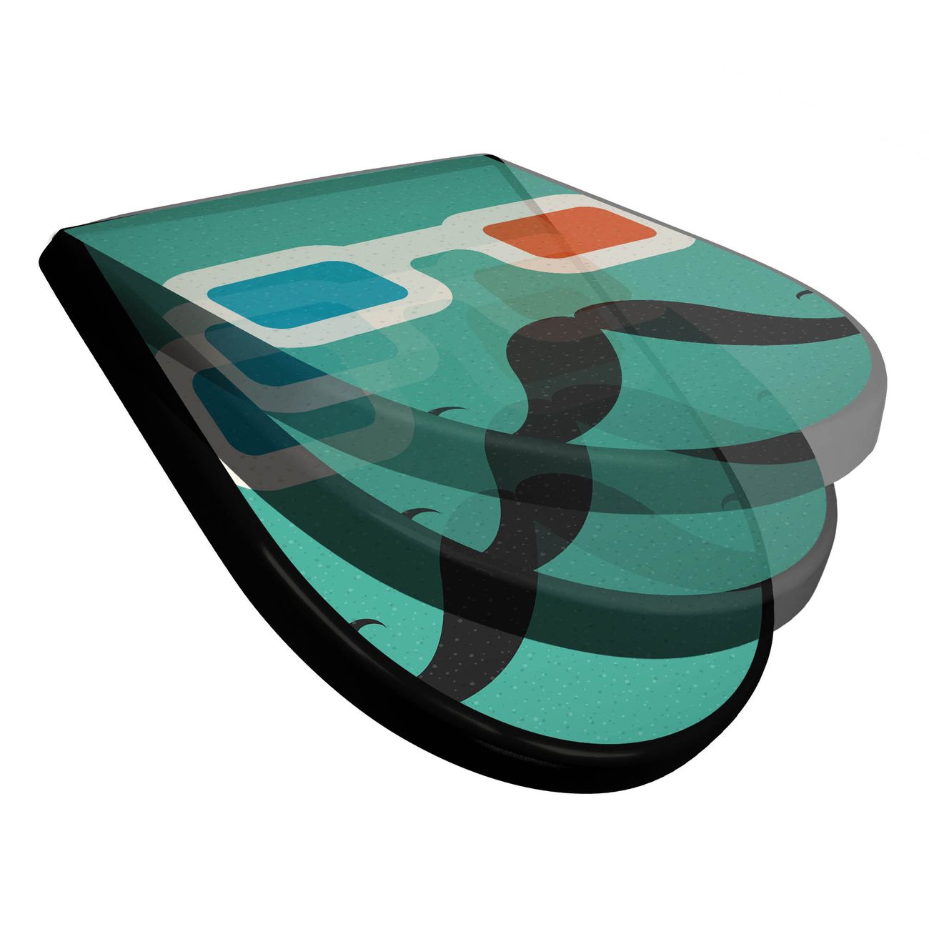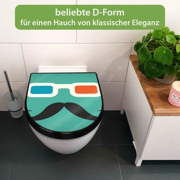 WC Sitz D-Form Schwarz mit Absenkautomatik Motiv Kinobrille